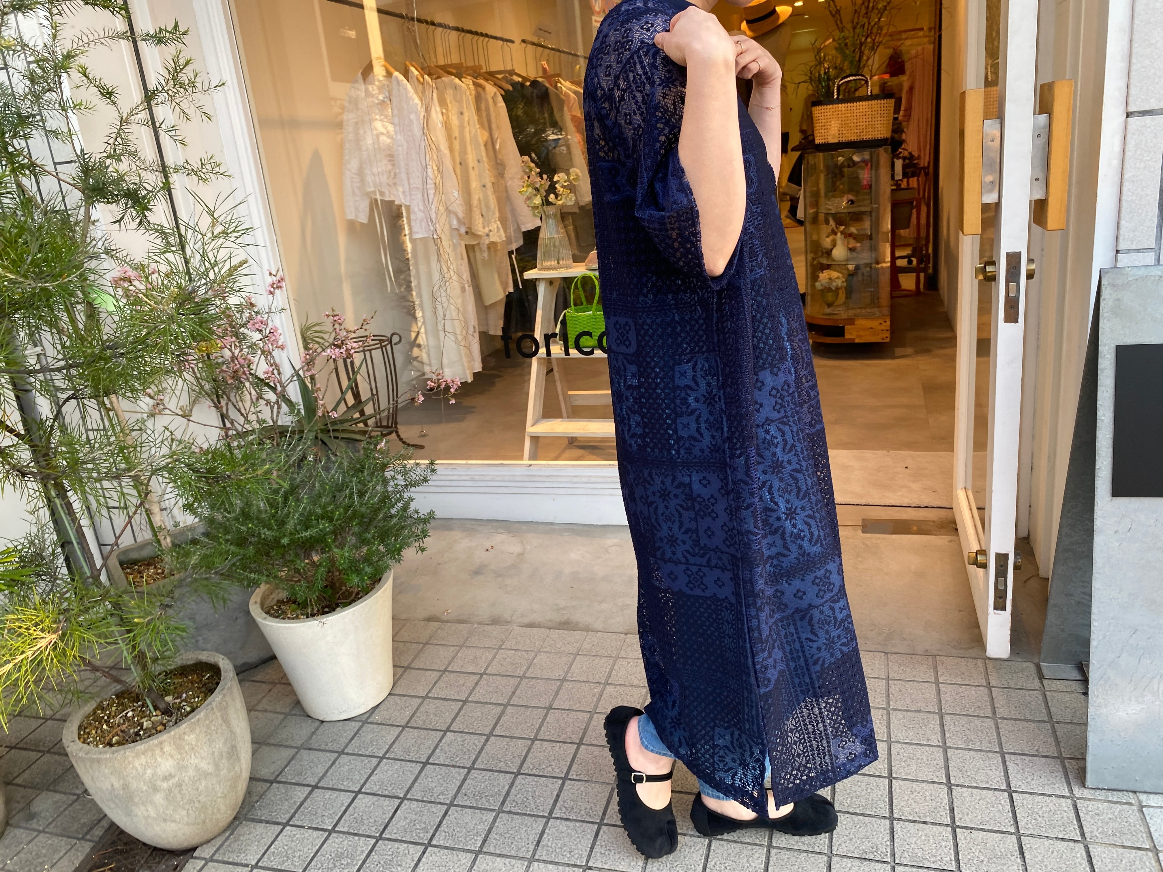 パッチワークレースのワンピース。