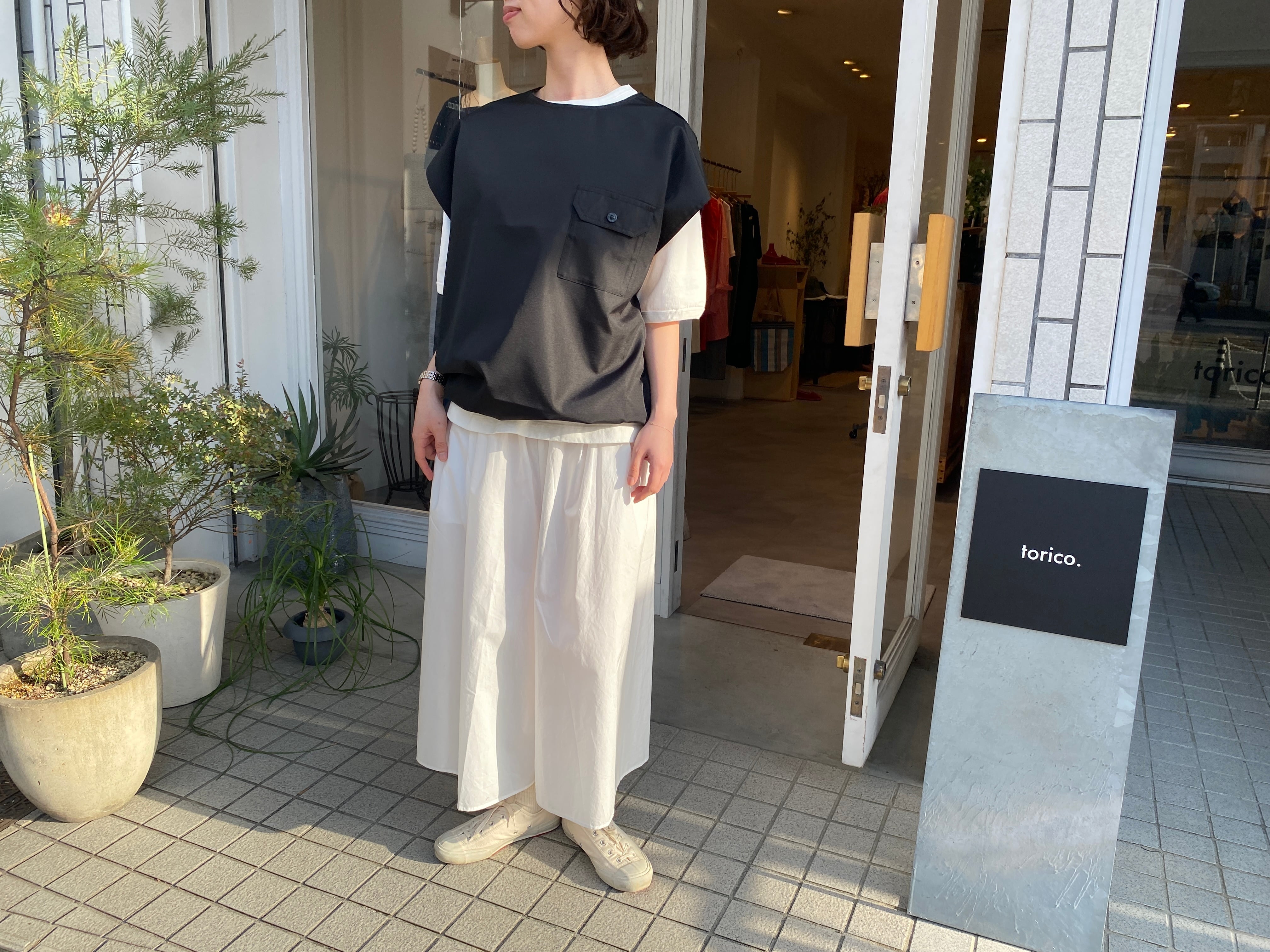 "左胸のフラップポケットがアクセント、ノースリーブカットソー"