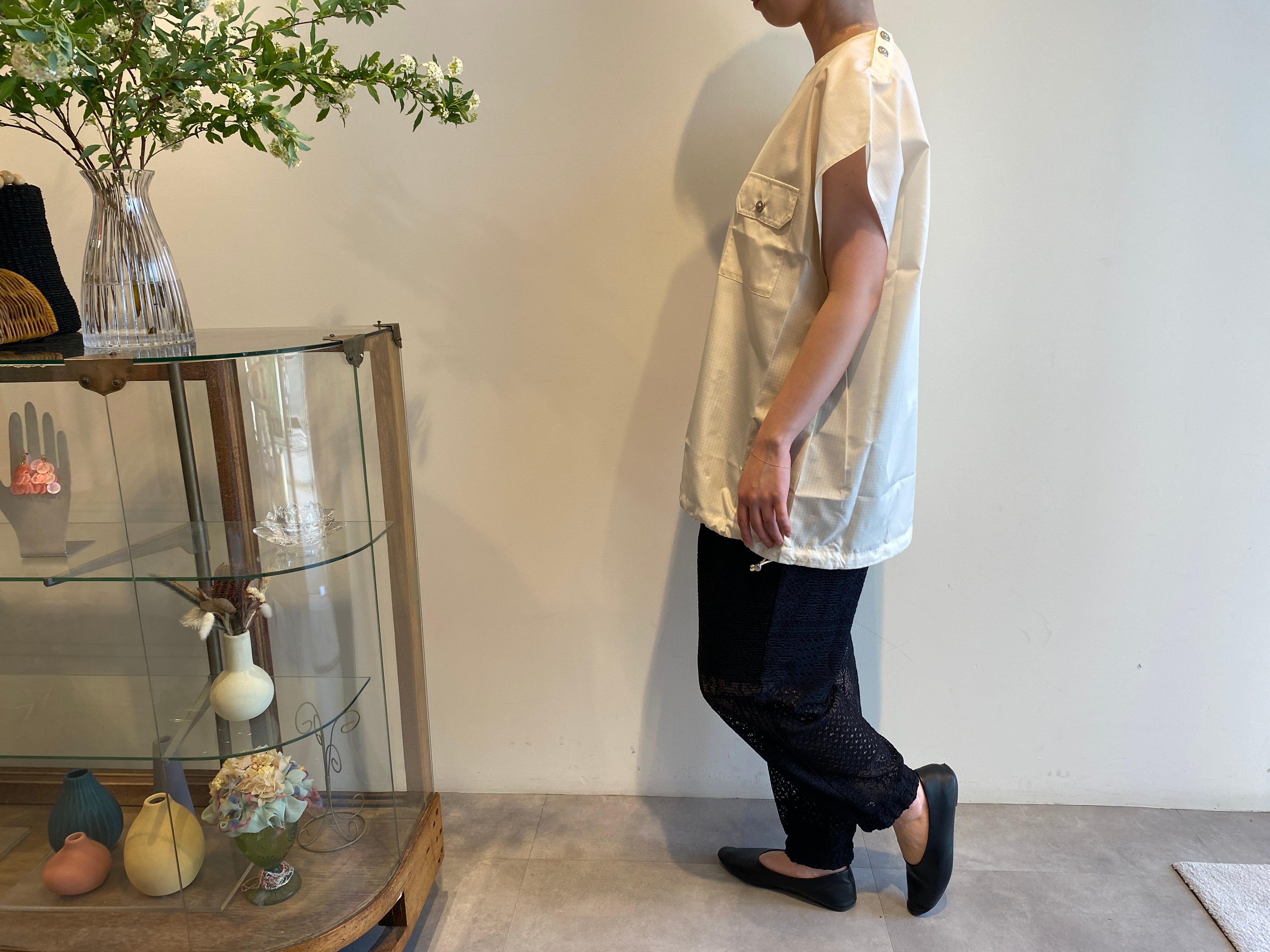 ダウン用のミリタリーライン生地を使用することで軽量で防汚性も担保した、ノースリーブカットソーです。(ダウンは入りません)