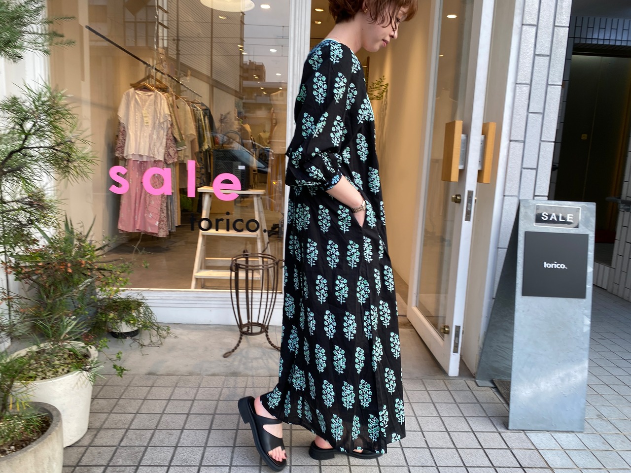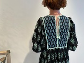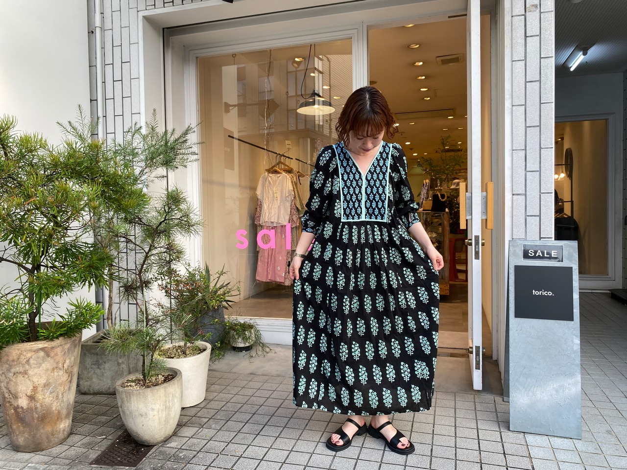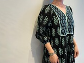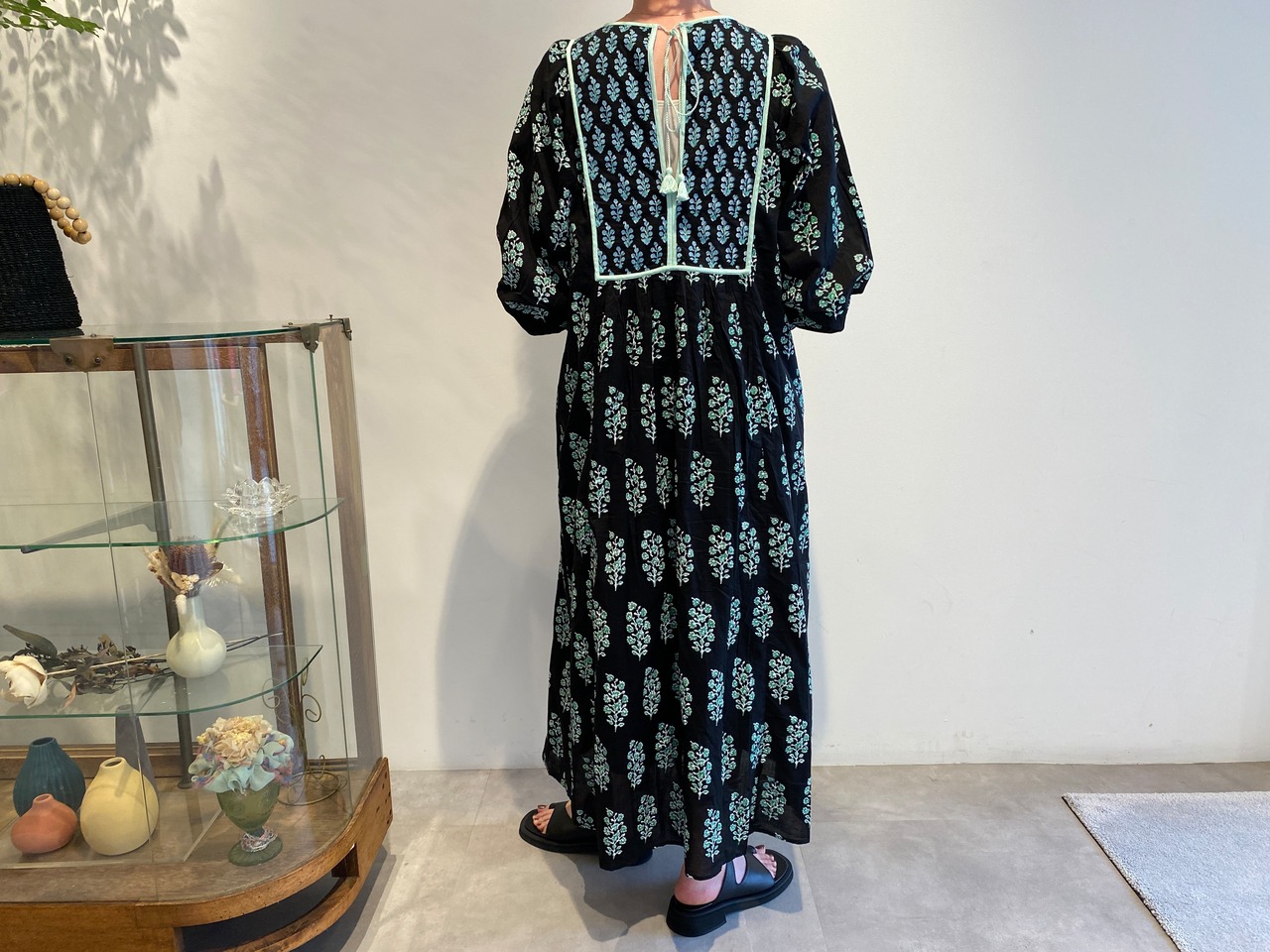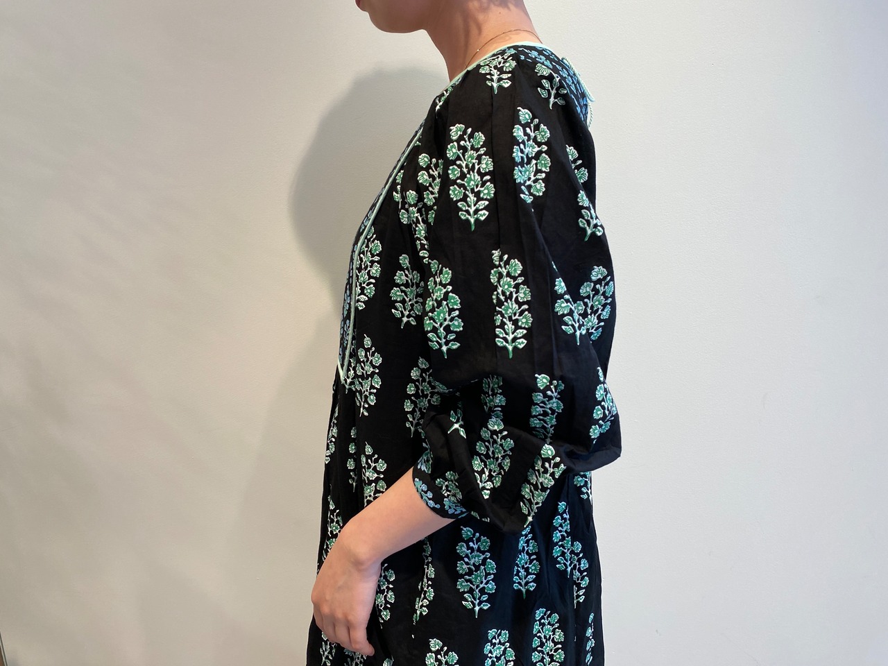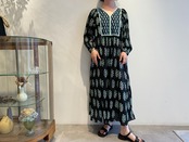 インド中央部の先住民族が描いたトライバルアート“ゴンド”にインスパイアされた色柄が目を引くエスニックドレス。