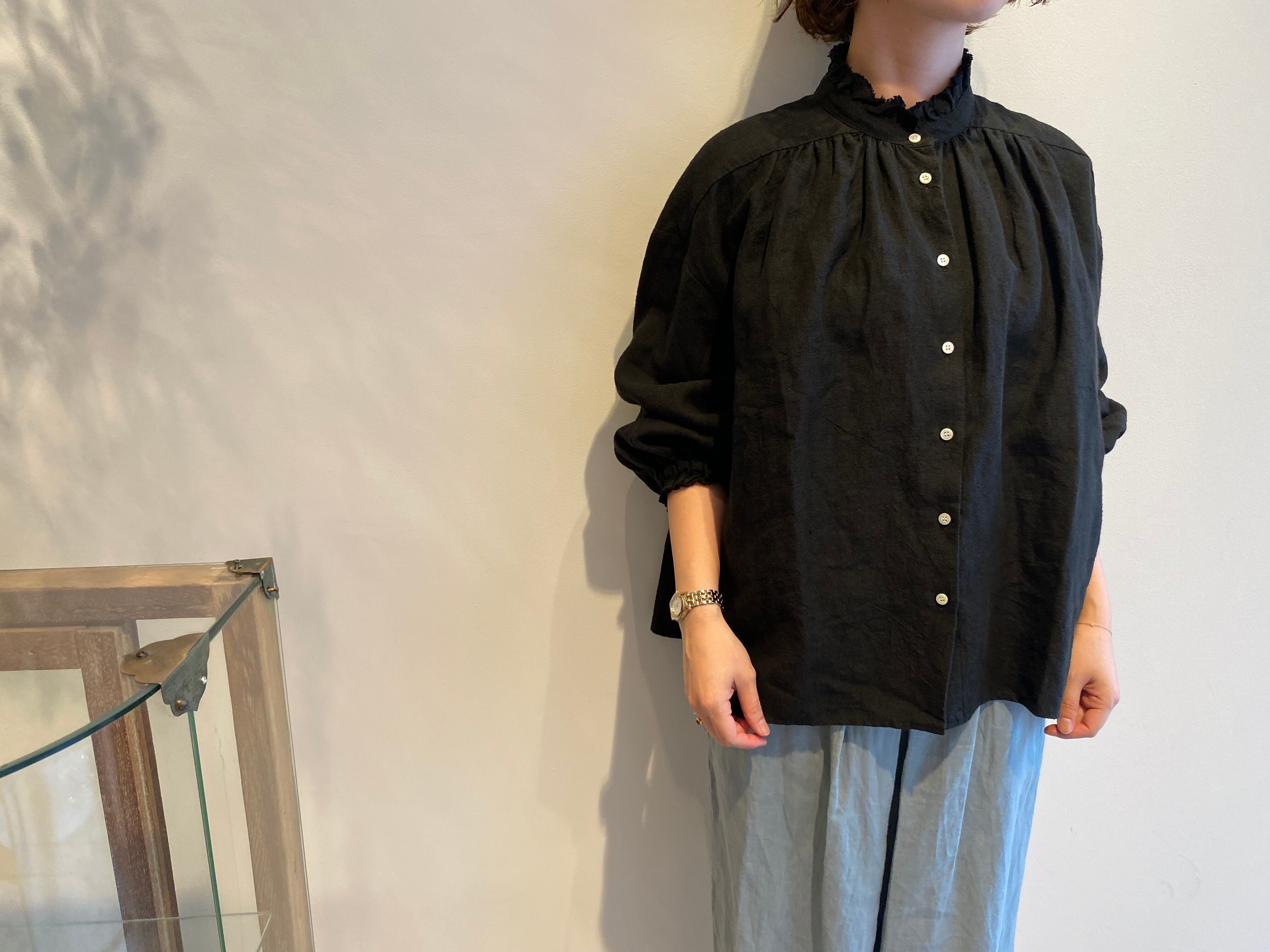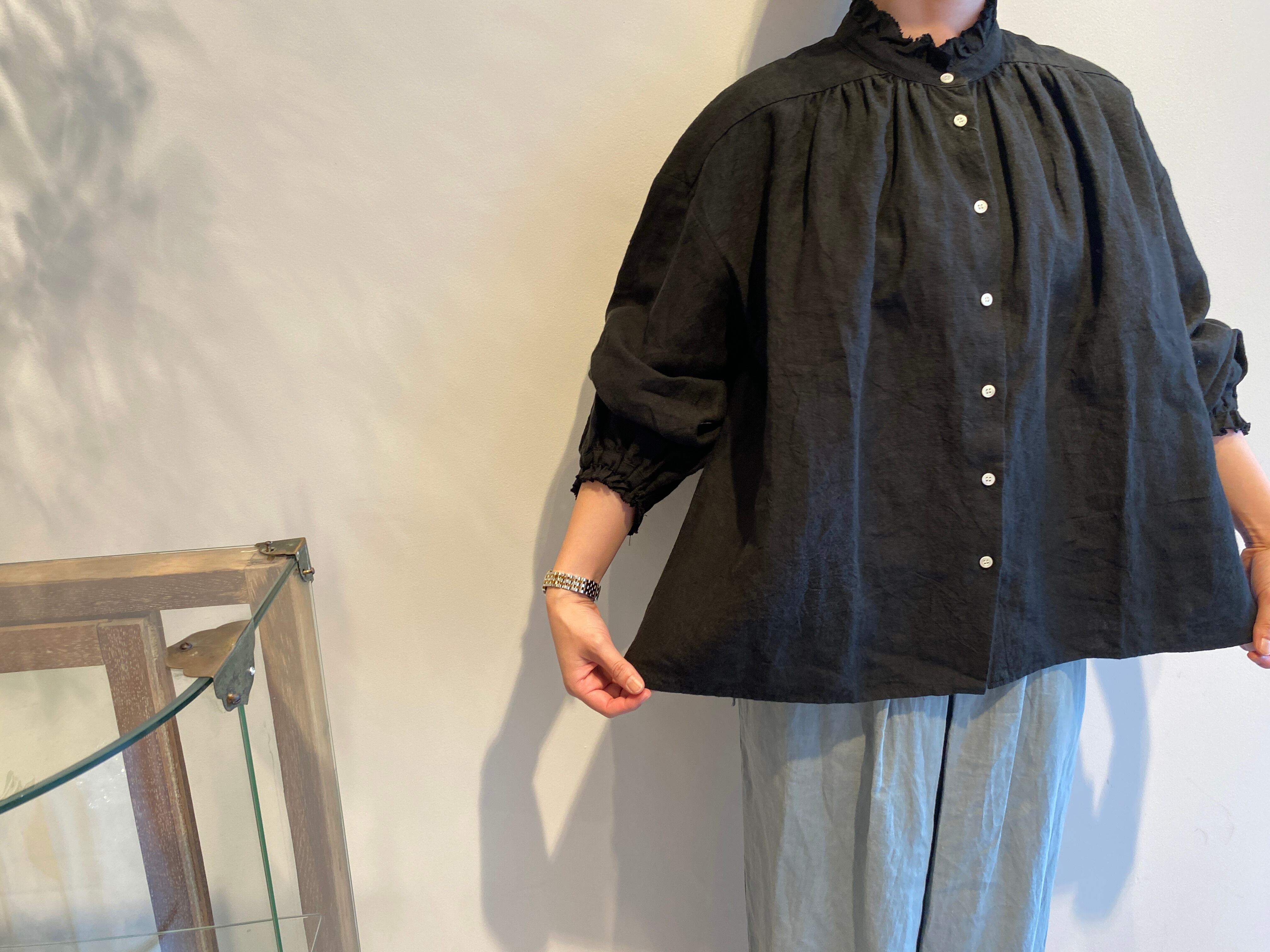 OUVERT/ アンティークリネンフリルカラーブラウス