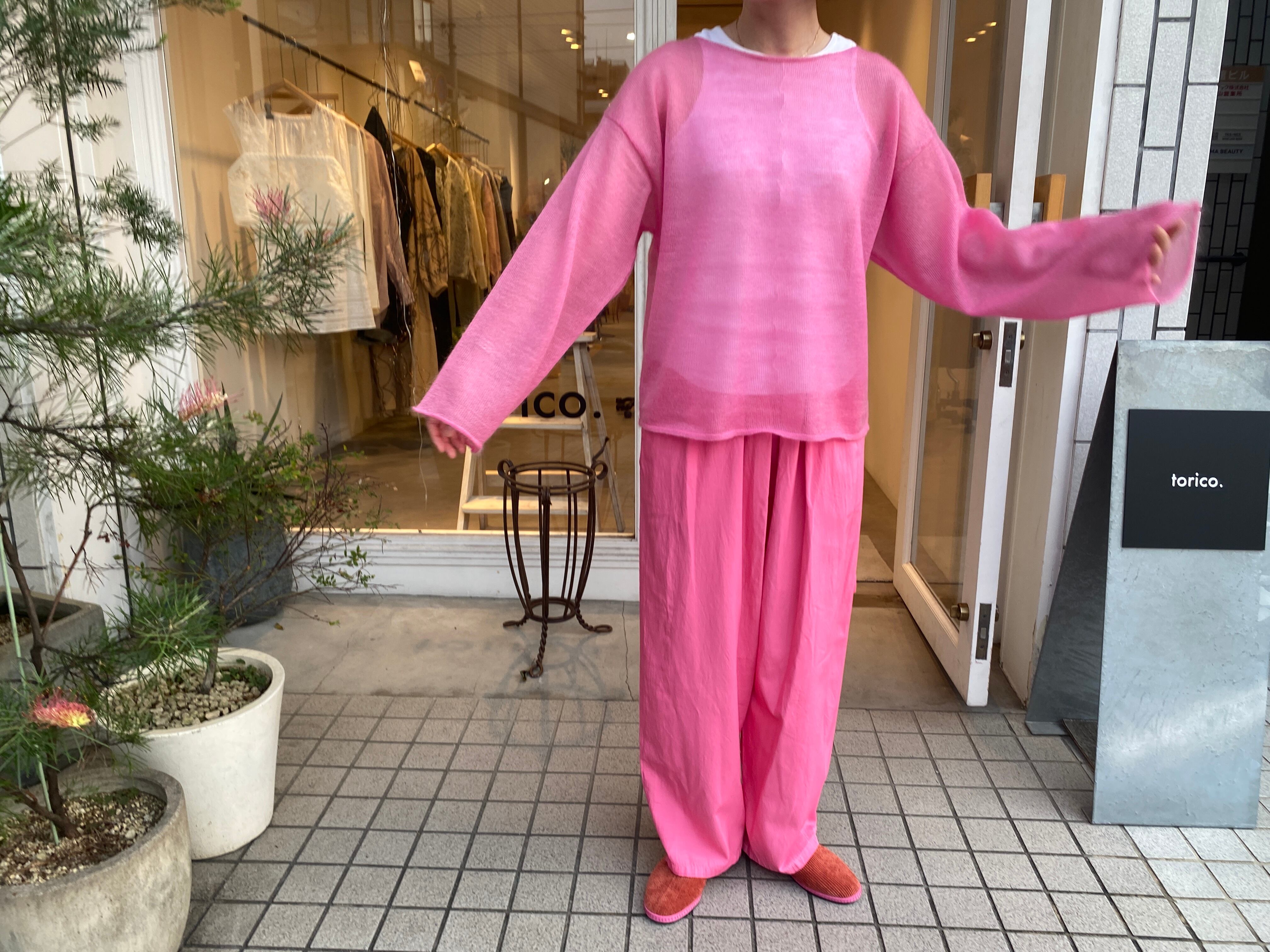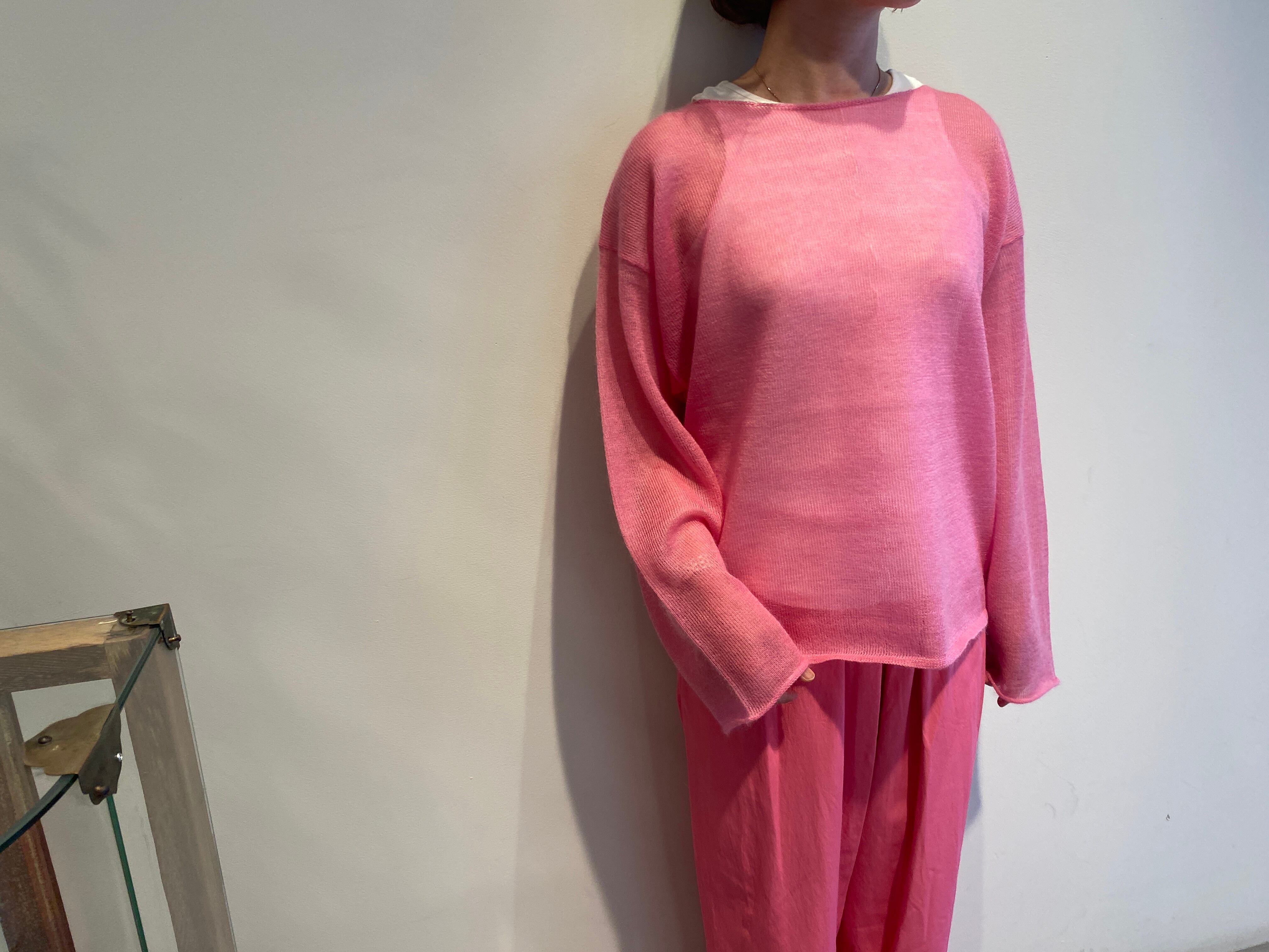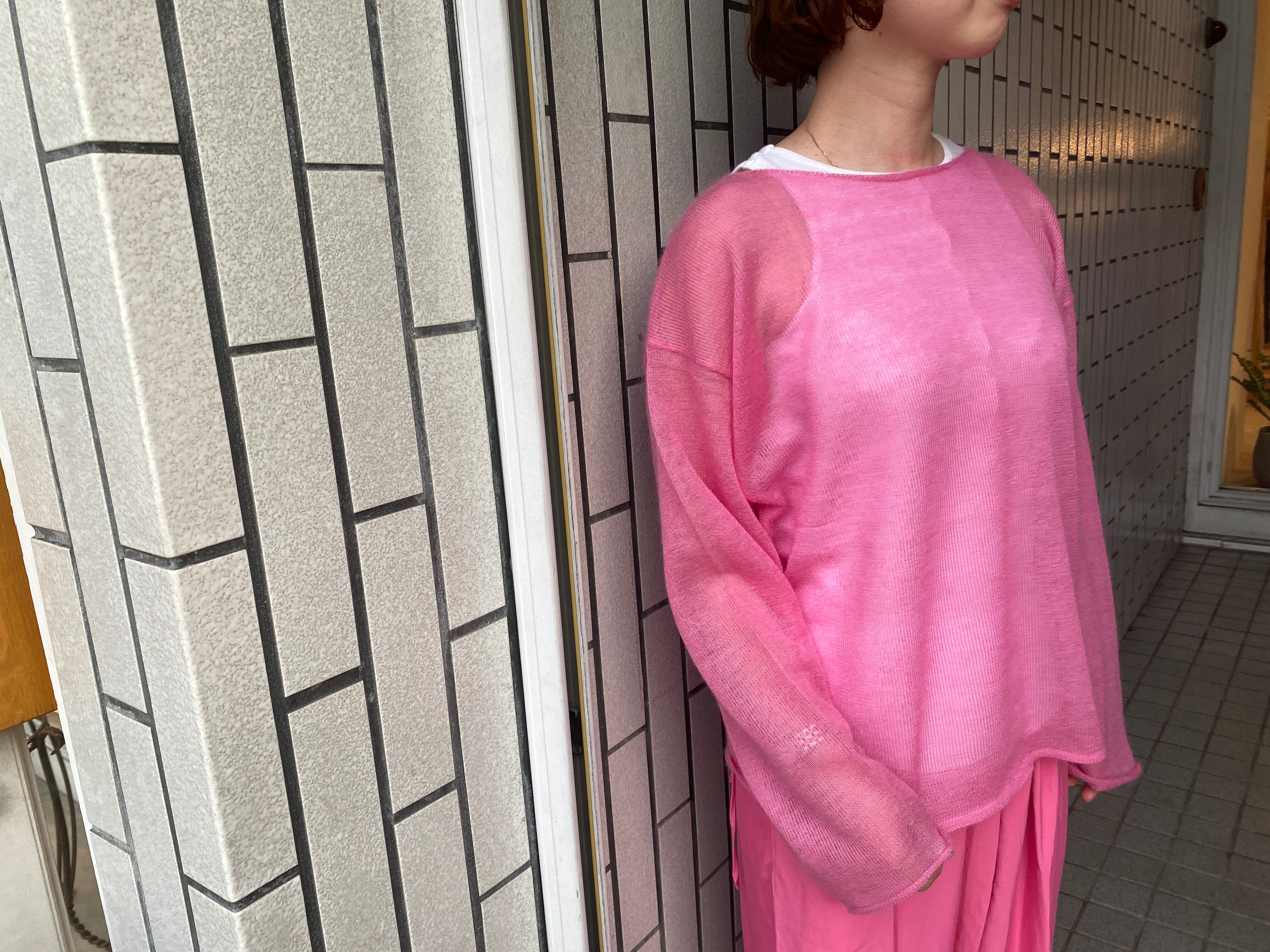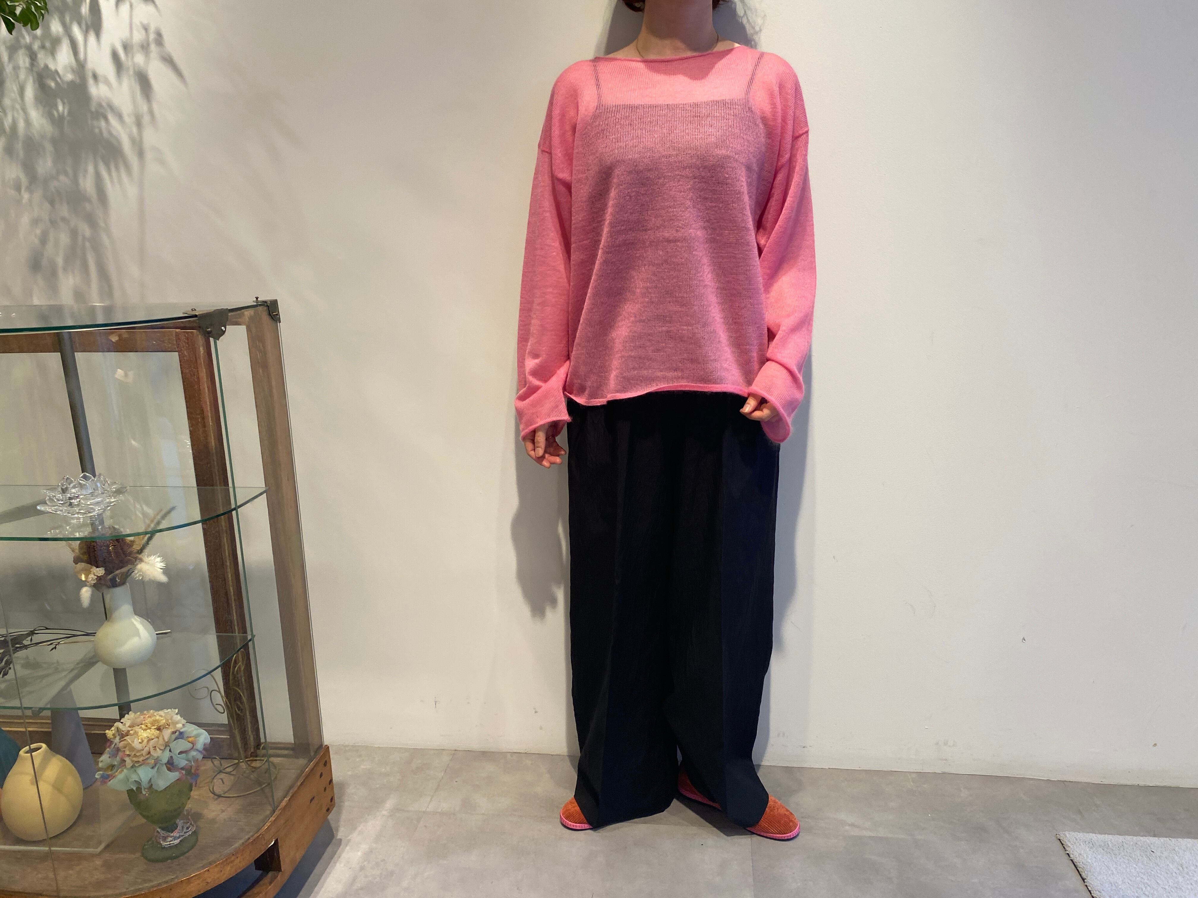 端始末を軽く仕上げ、カットソーのような軽さのあるデザインのニットプルオーバー。