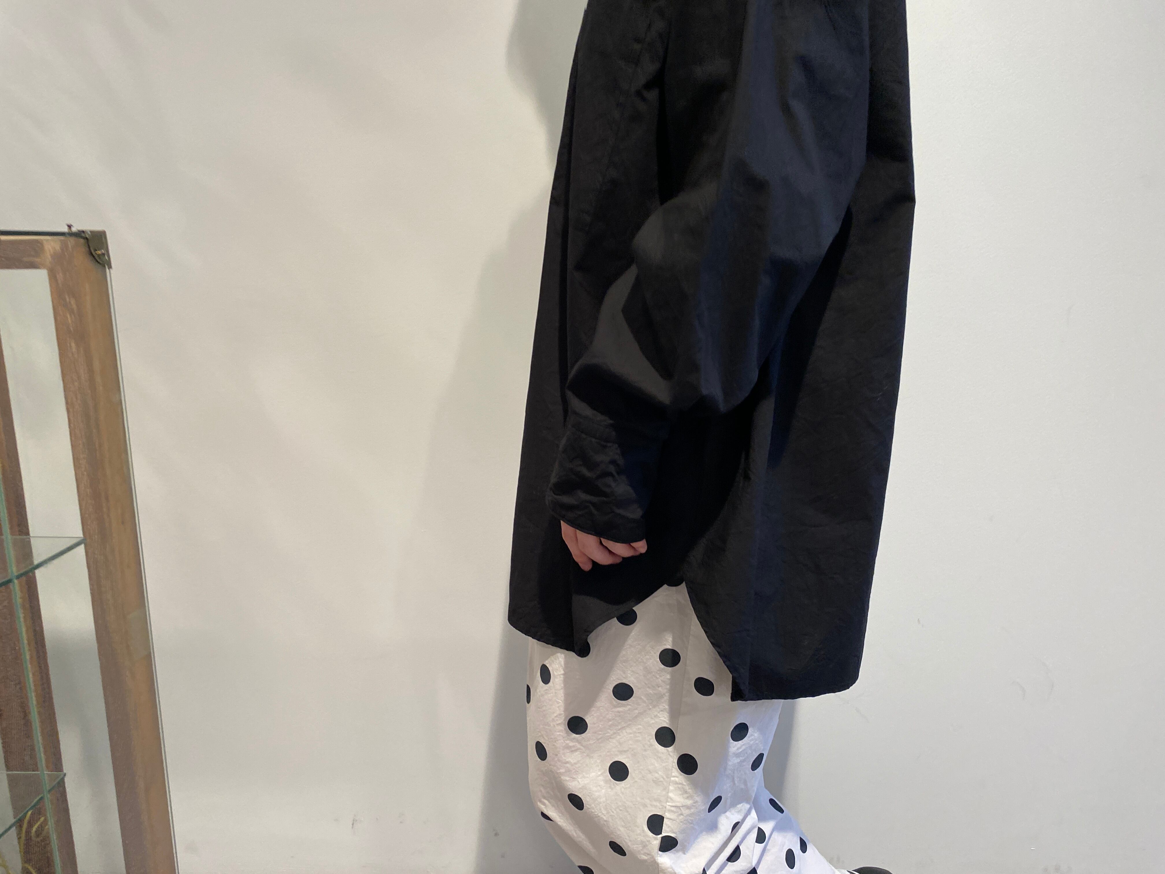 袖はゆったり、ちょっと長めで、メンズシャツを借りてきたみたいな抜け感も。