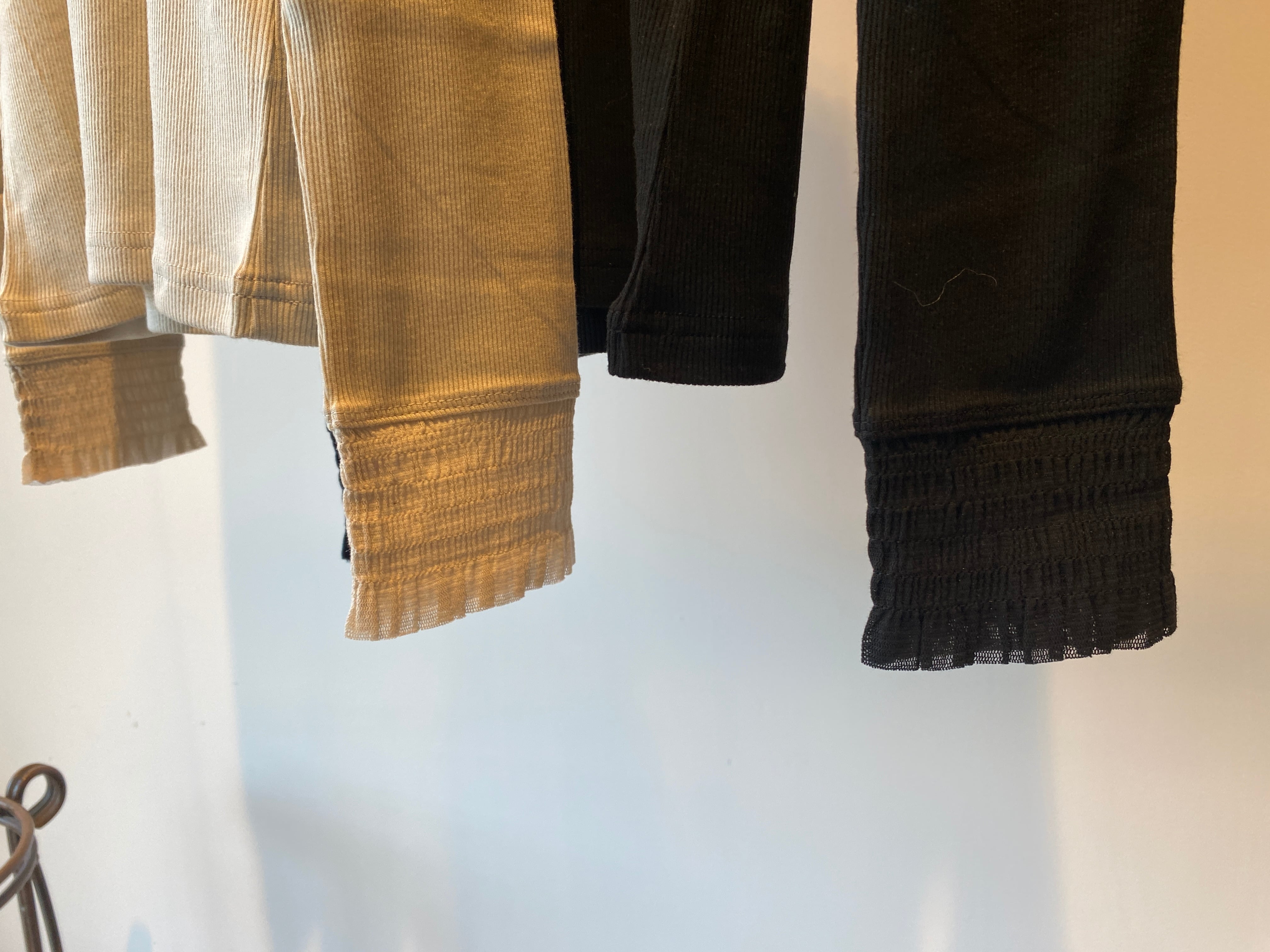 衿はタック、袖口はシャーリングで華やかさをプラス