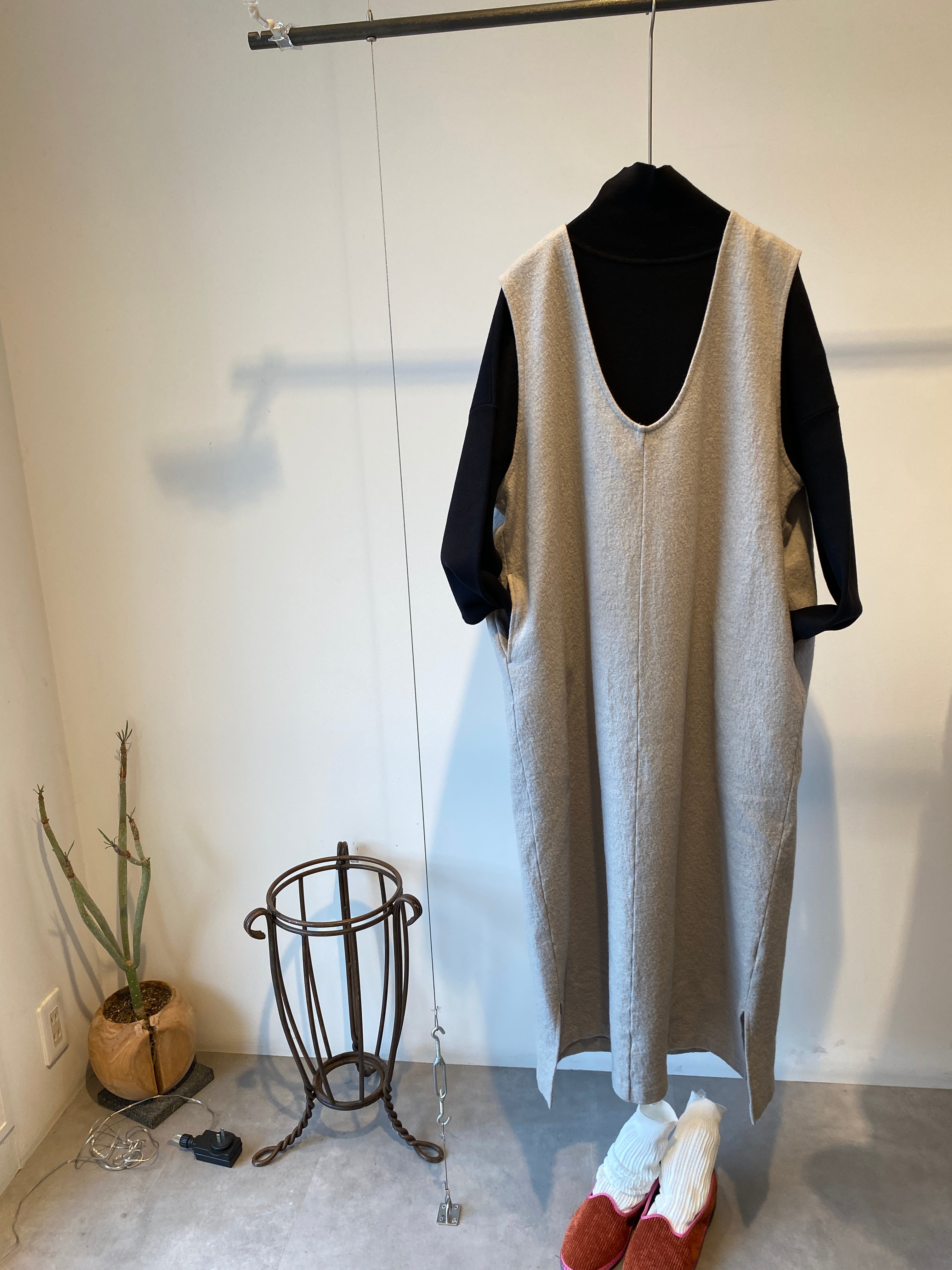 UNIVERSAL TISSU/ ウール圧縮天竺 ジャンパードレス