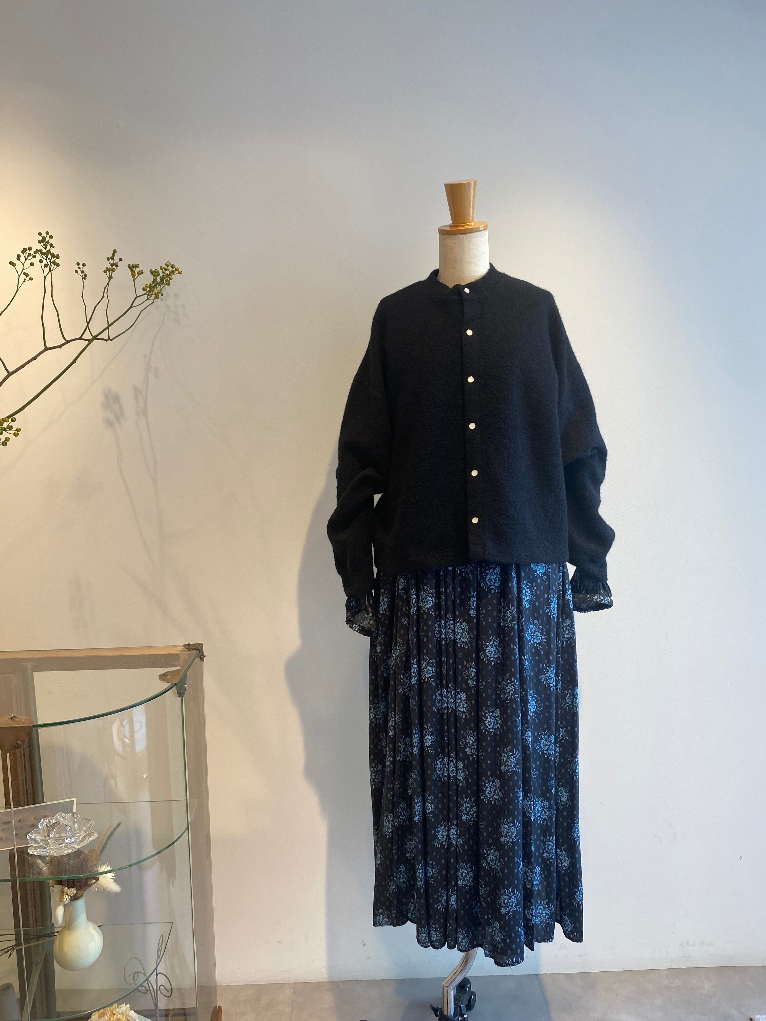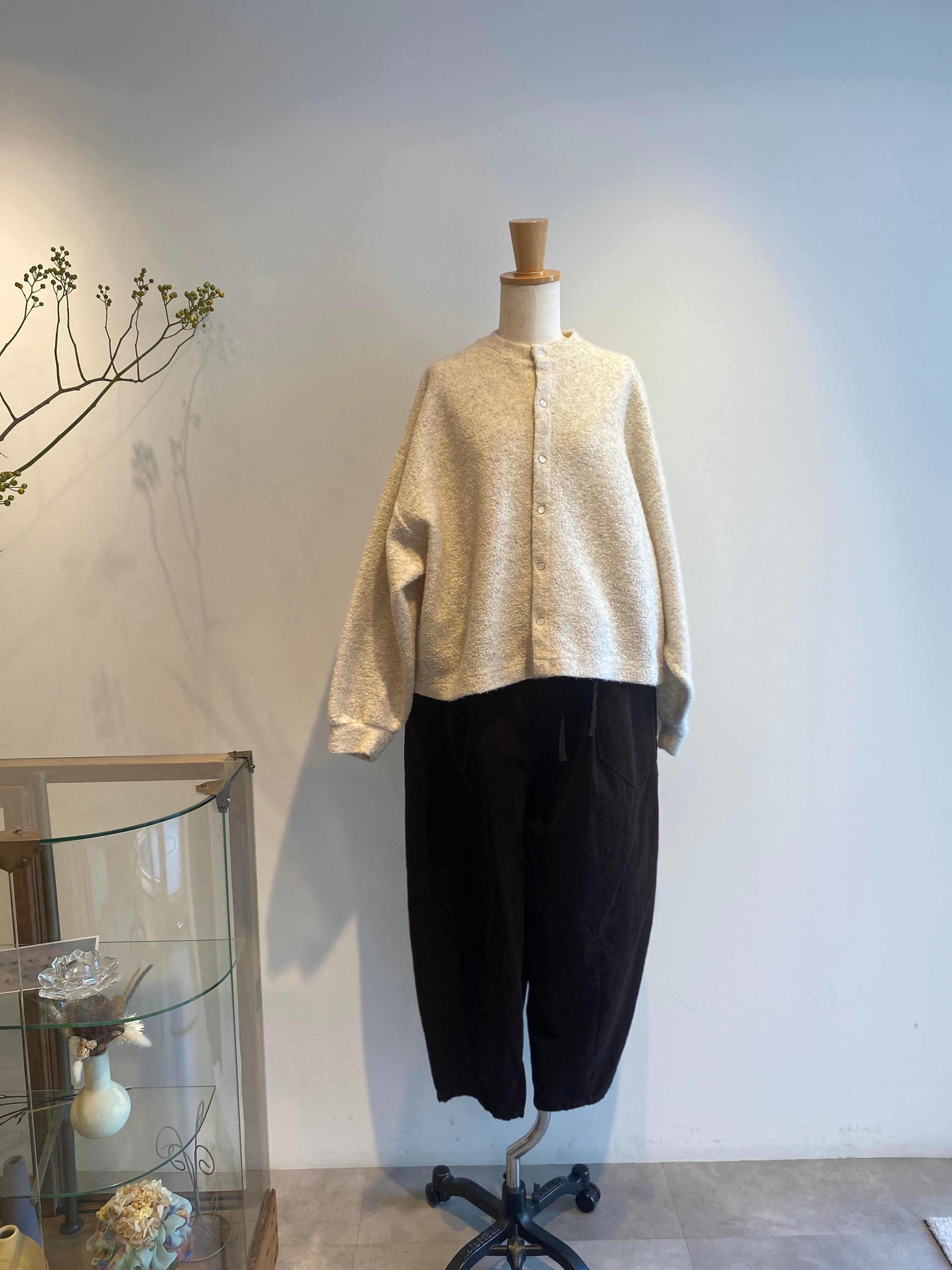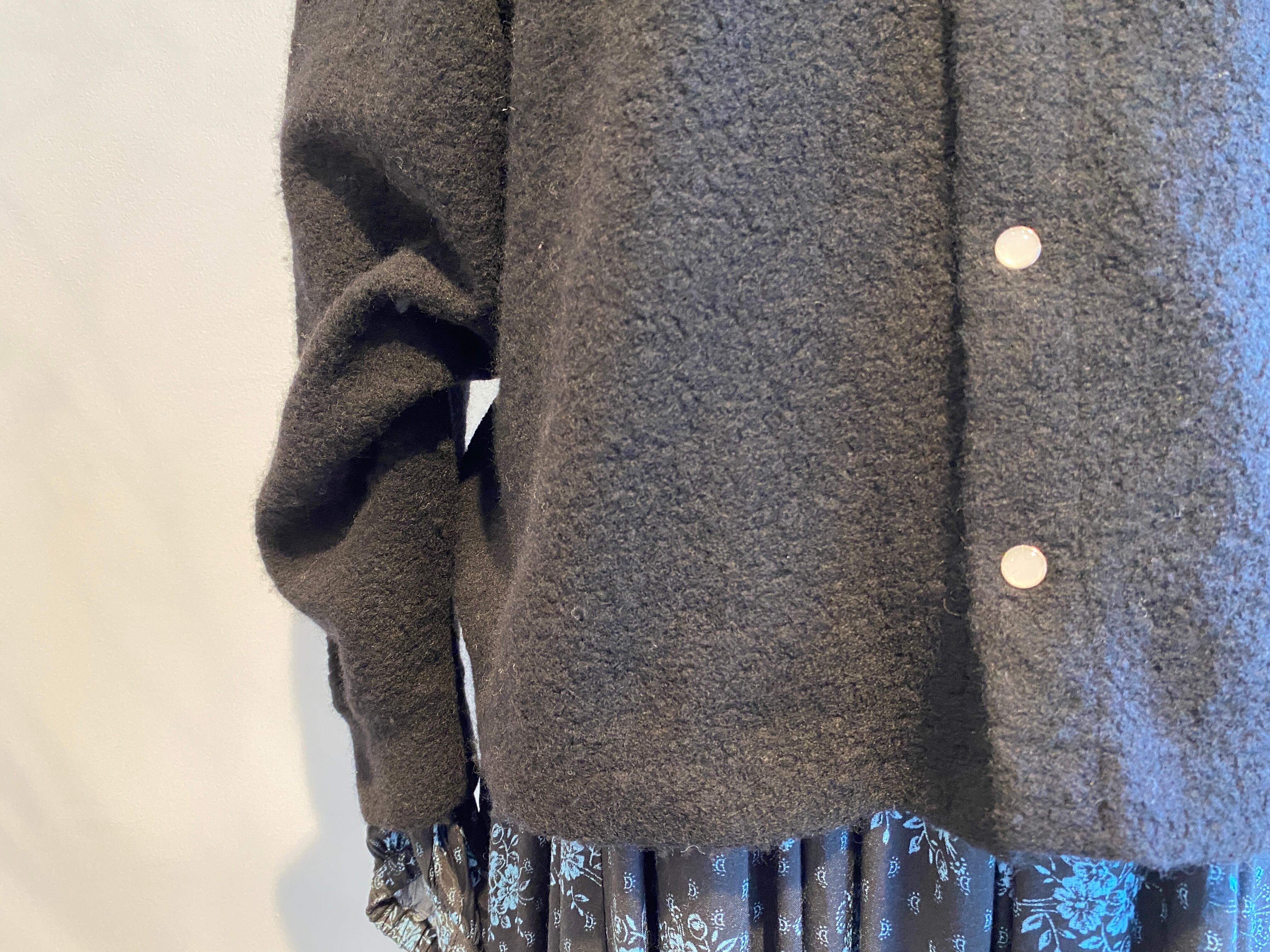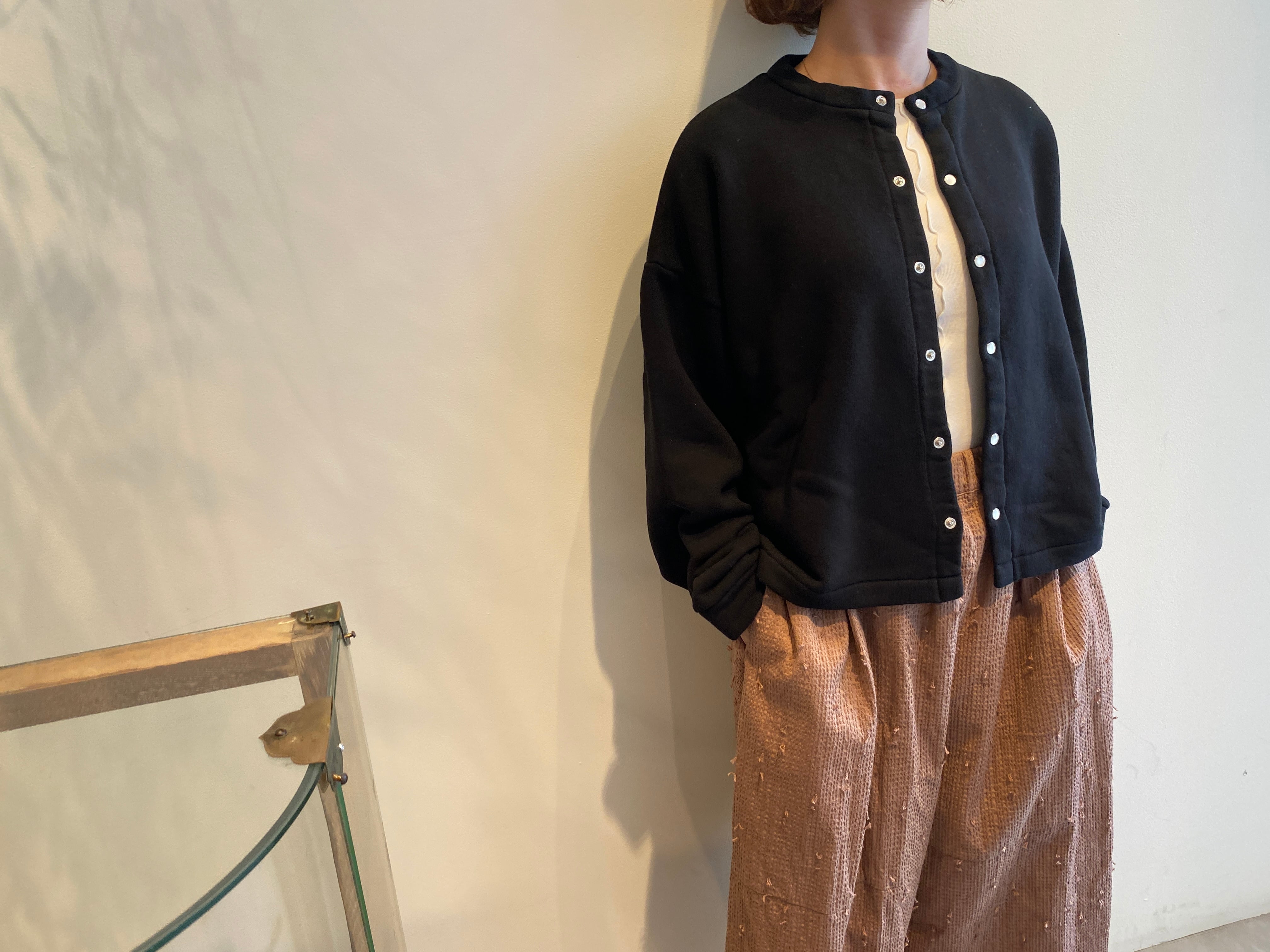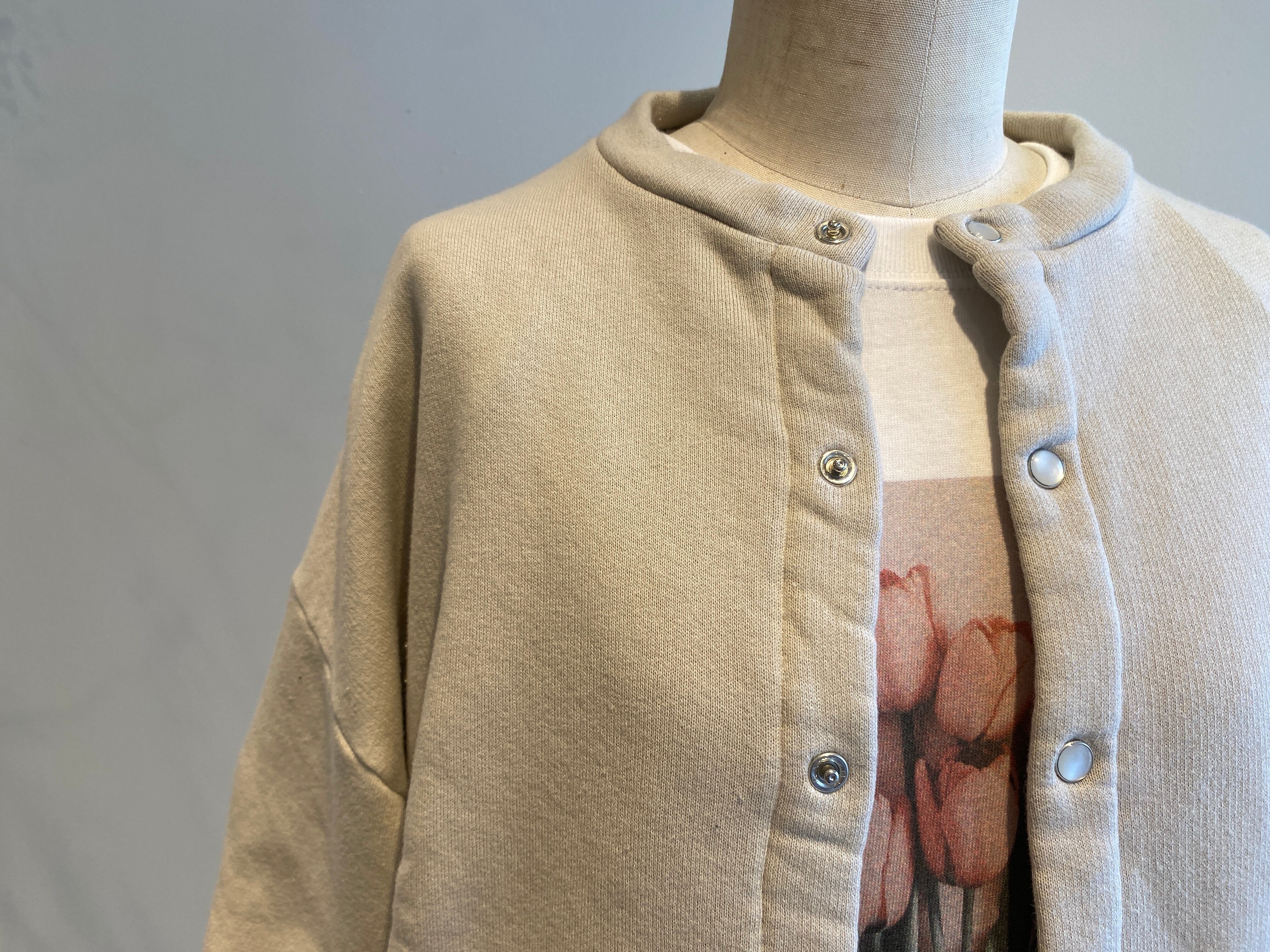 UNIVERSAL TISSU/リサイクルウールパイル/リヨセルコットン裏毛スナップカーディガン