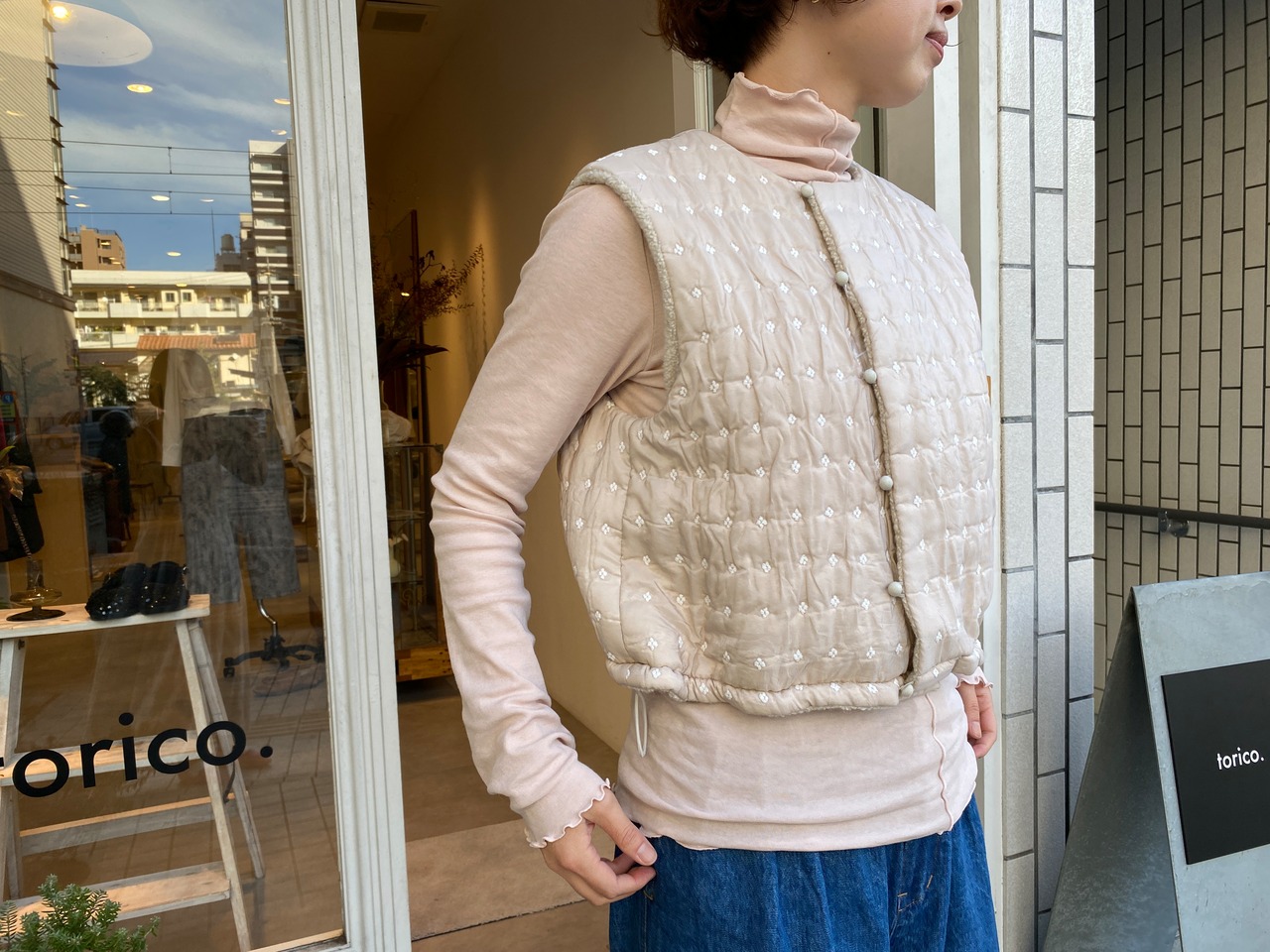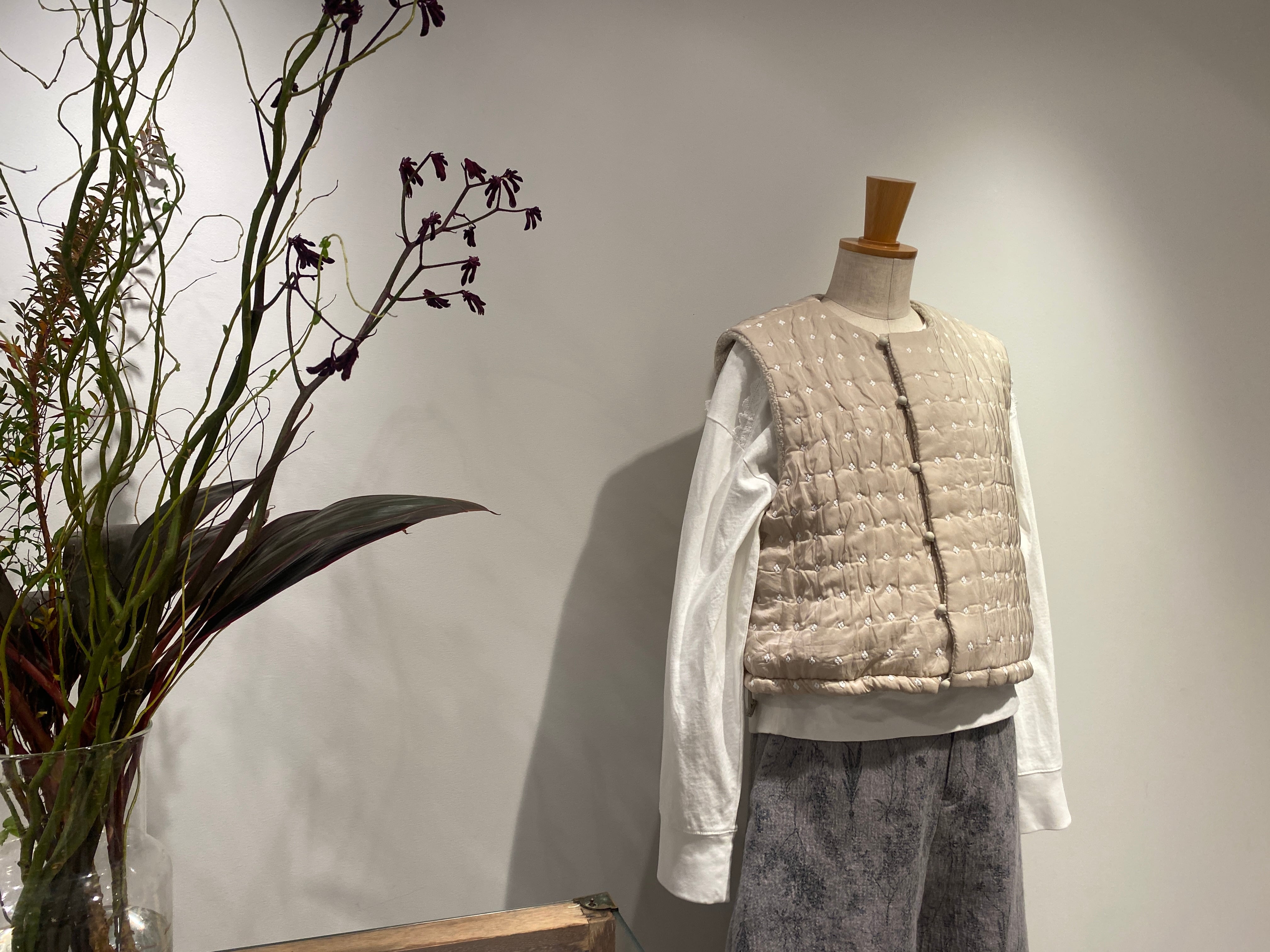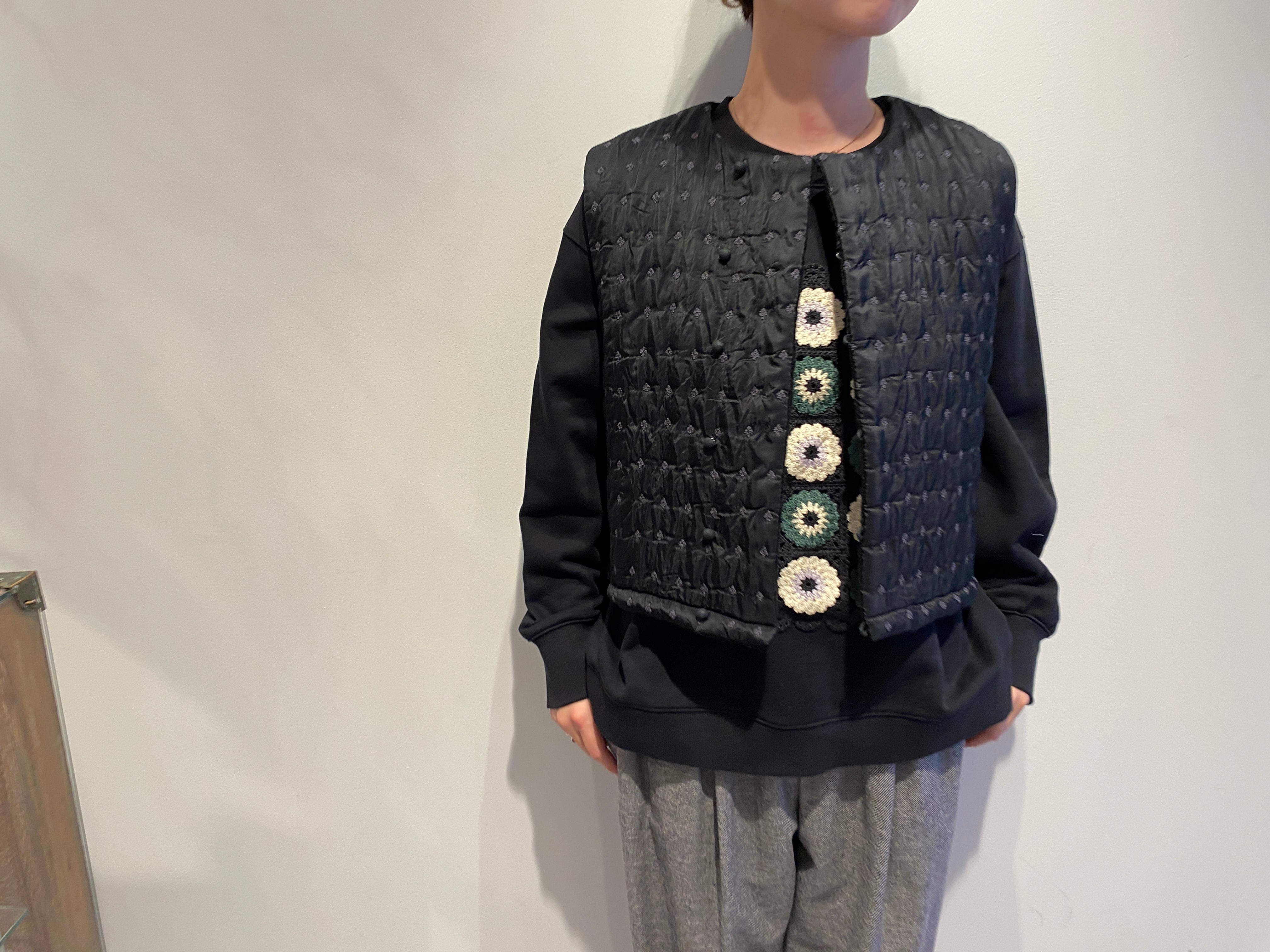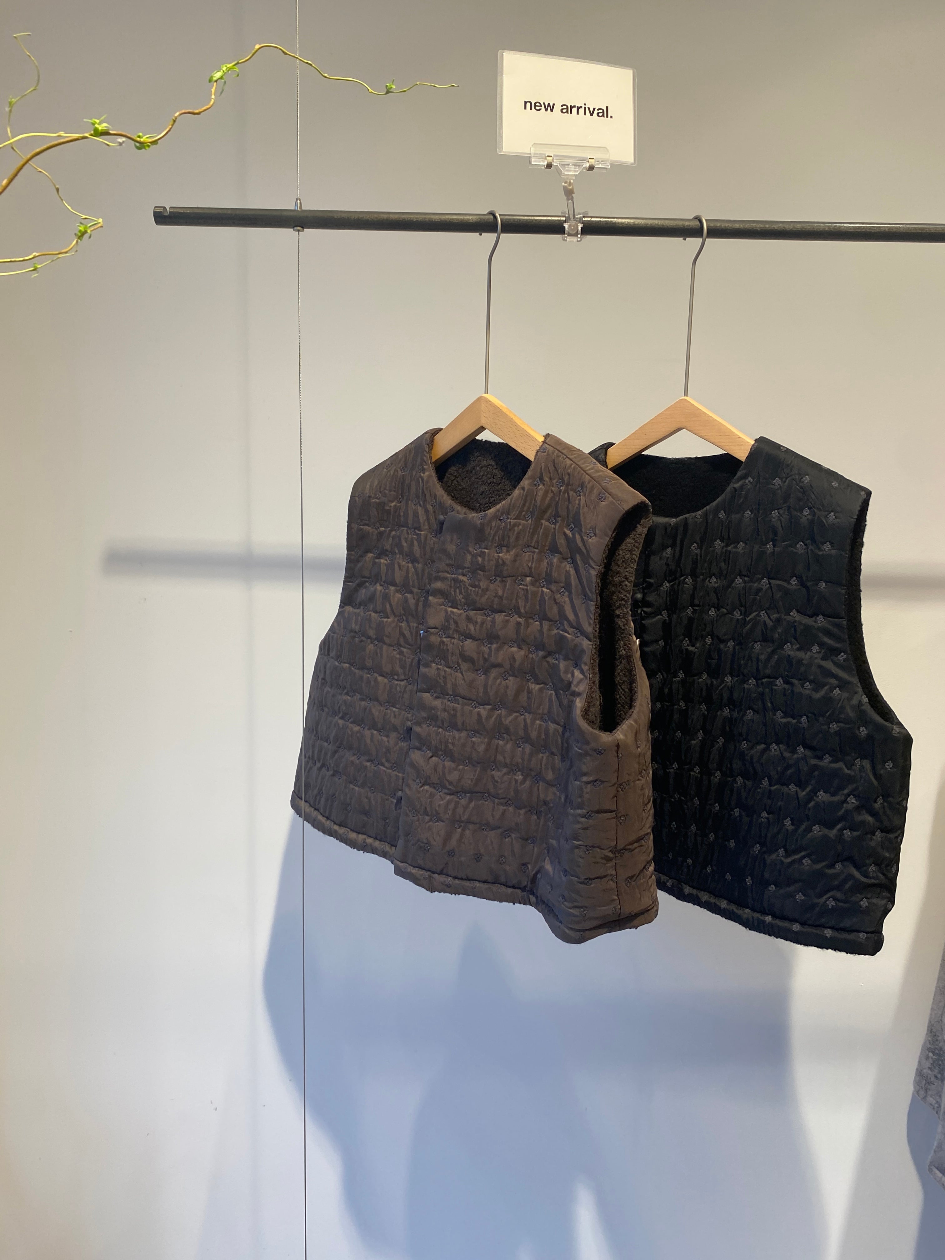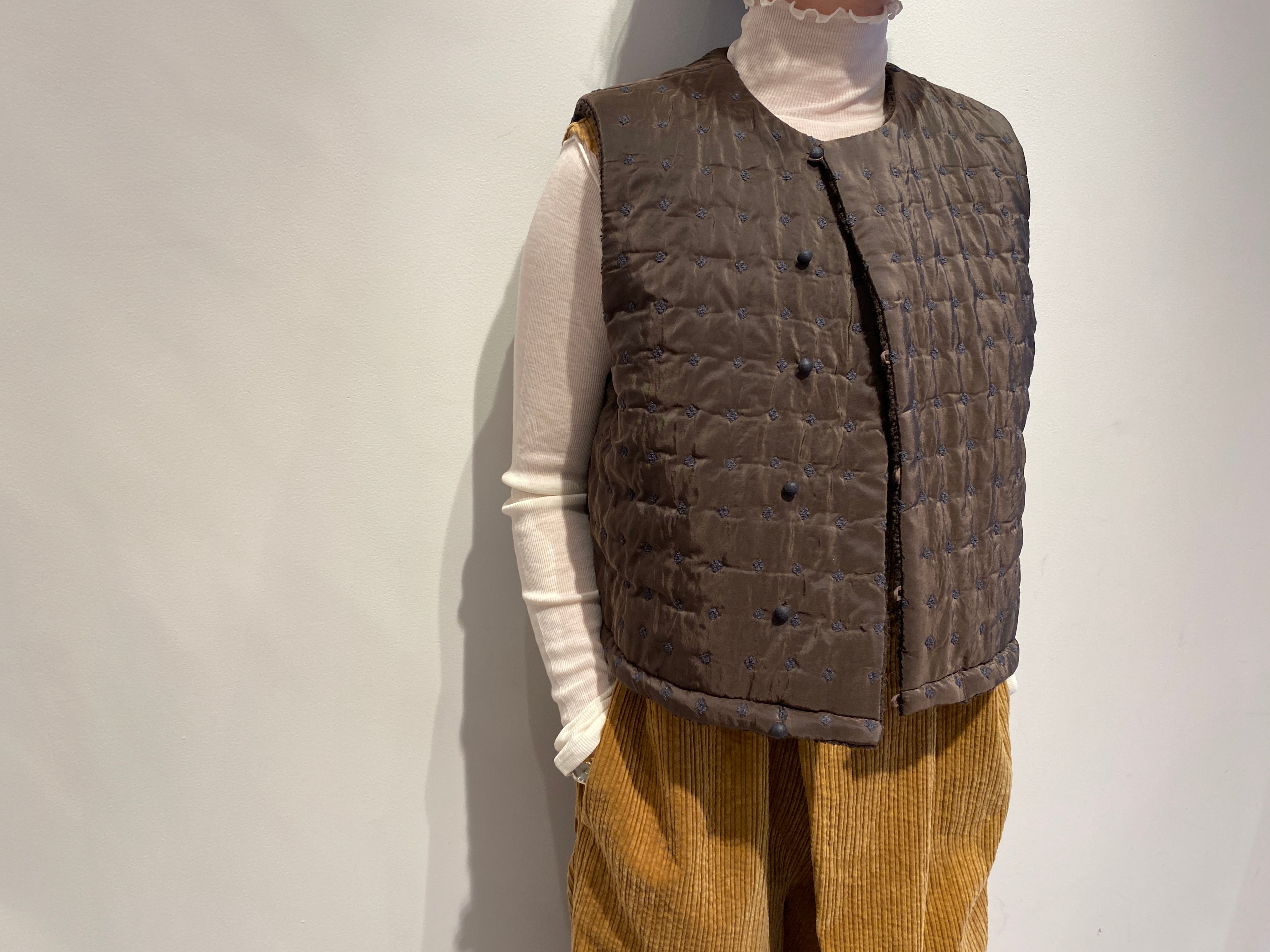 qiri/flower dot quilt jacquard ショートリバーシブルベスト