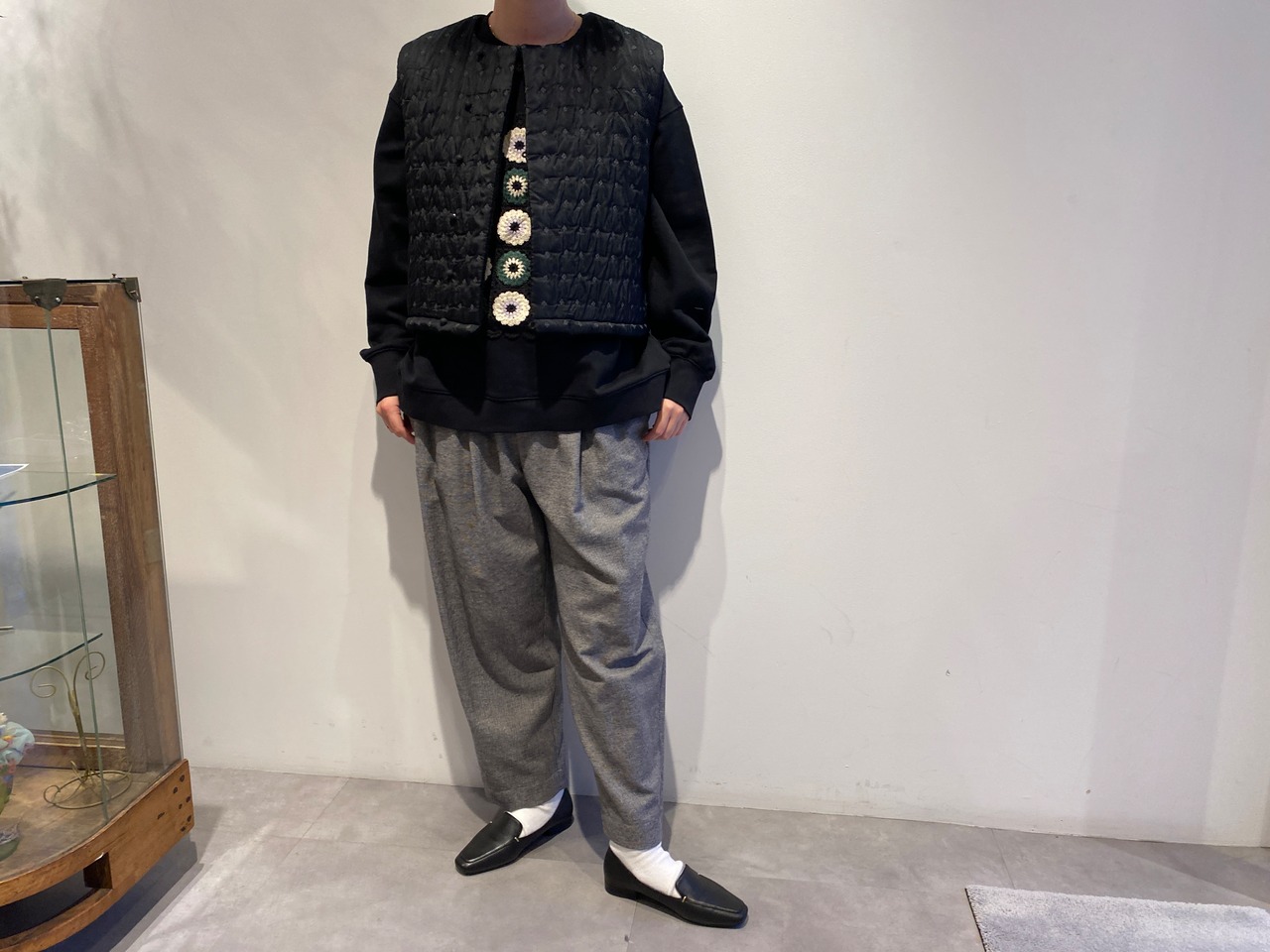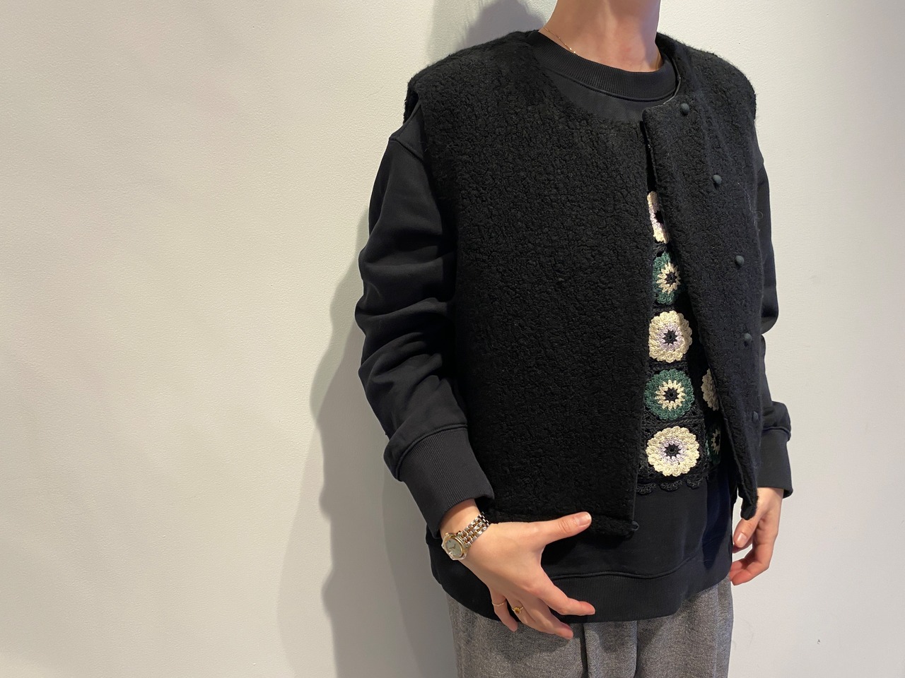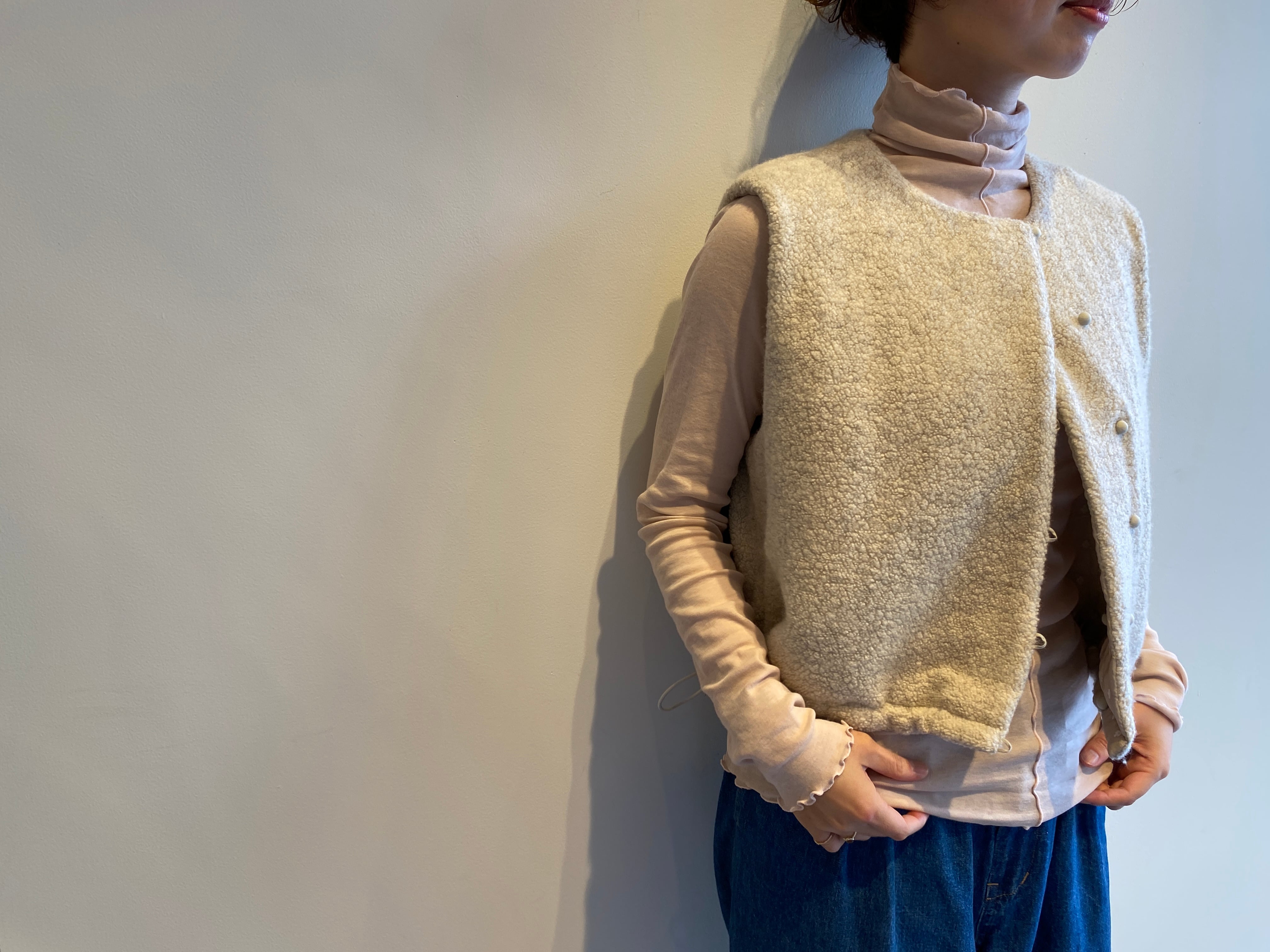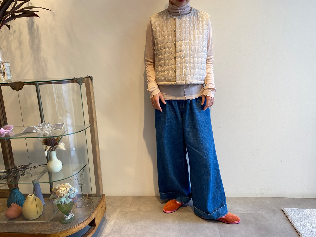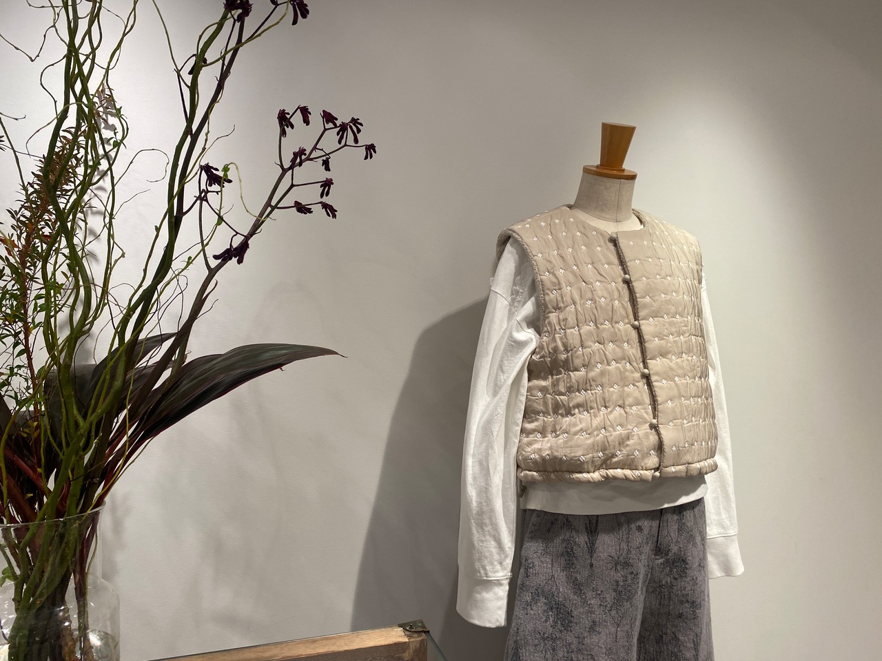 qiri/flower dot quilt jacquard ショートリバーシブルベスト