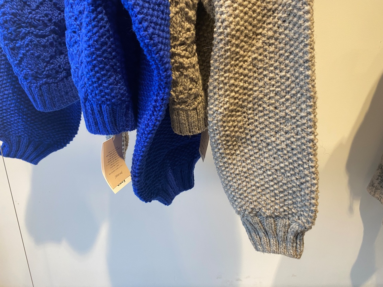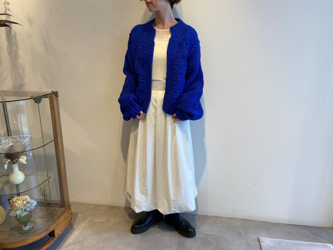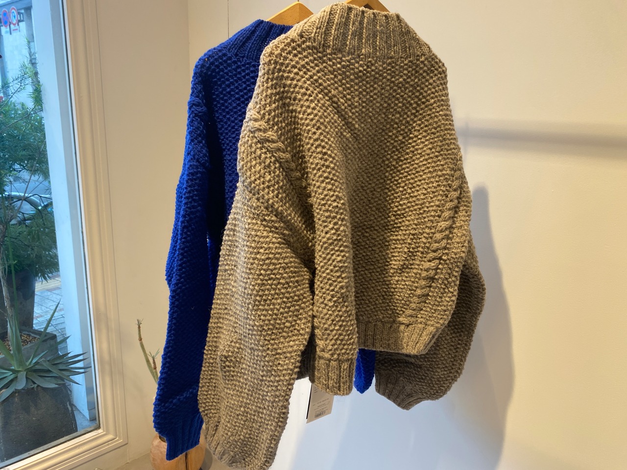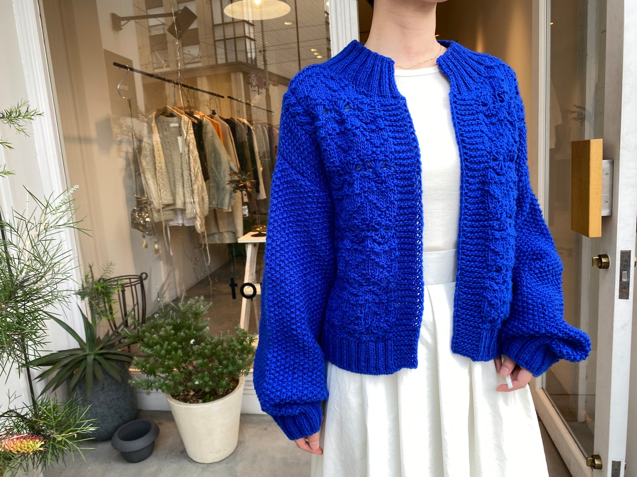 ローゲージながら、ふんわり軽く編まれたハンドニット。
