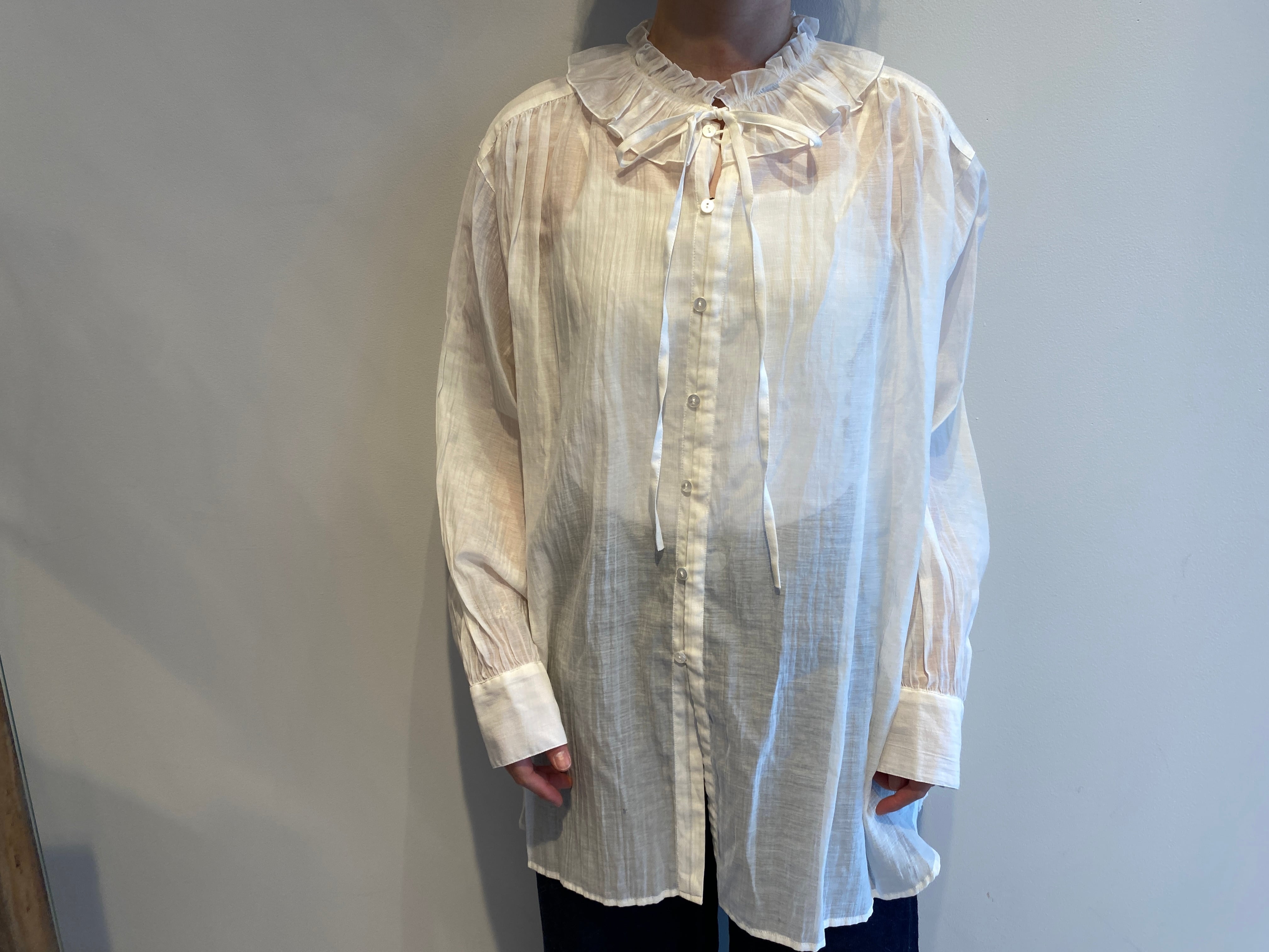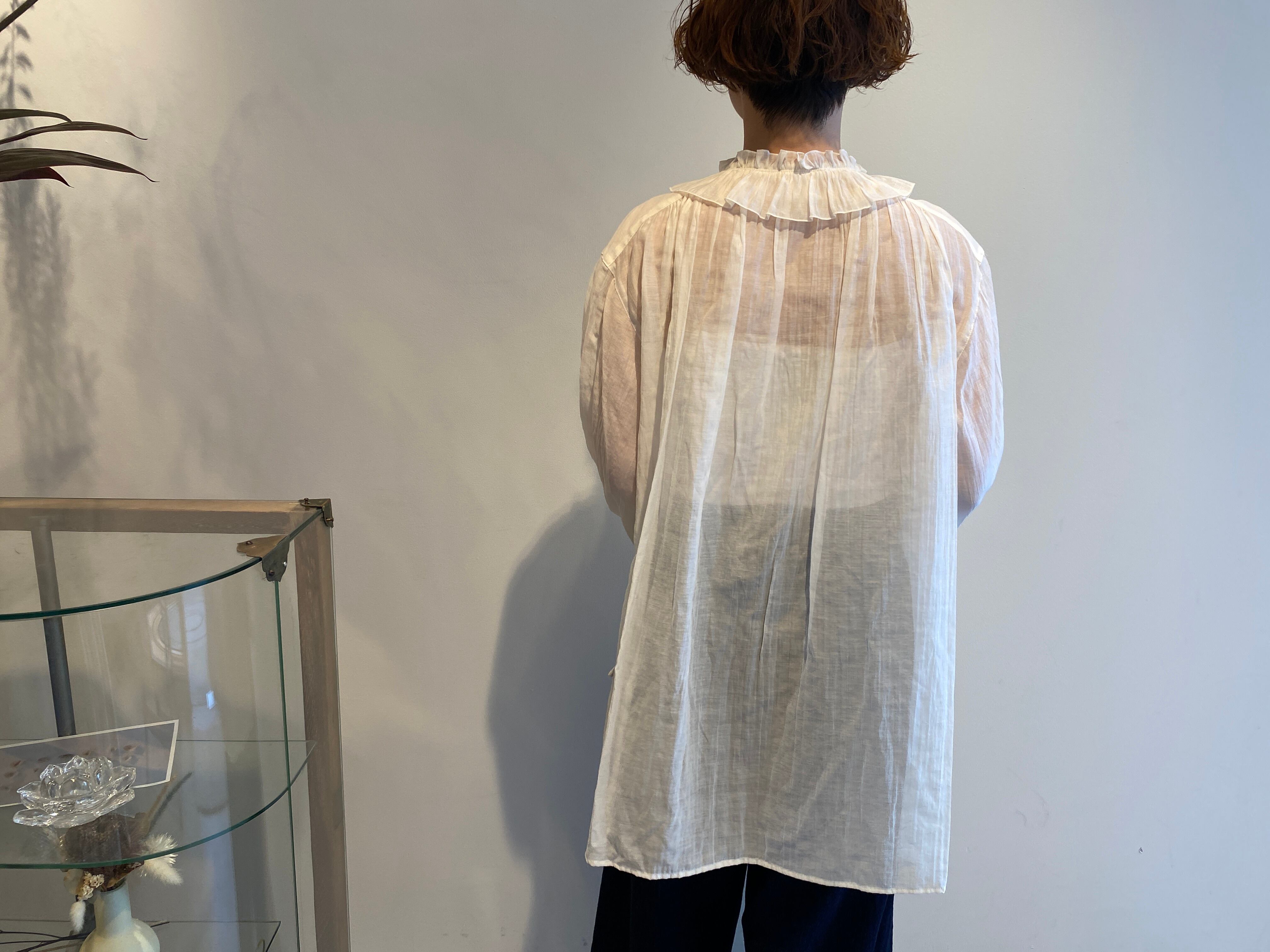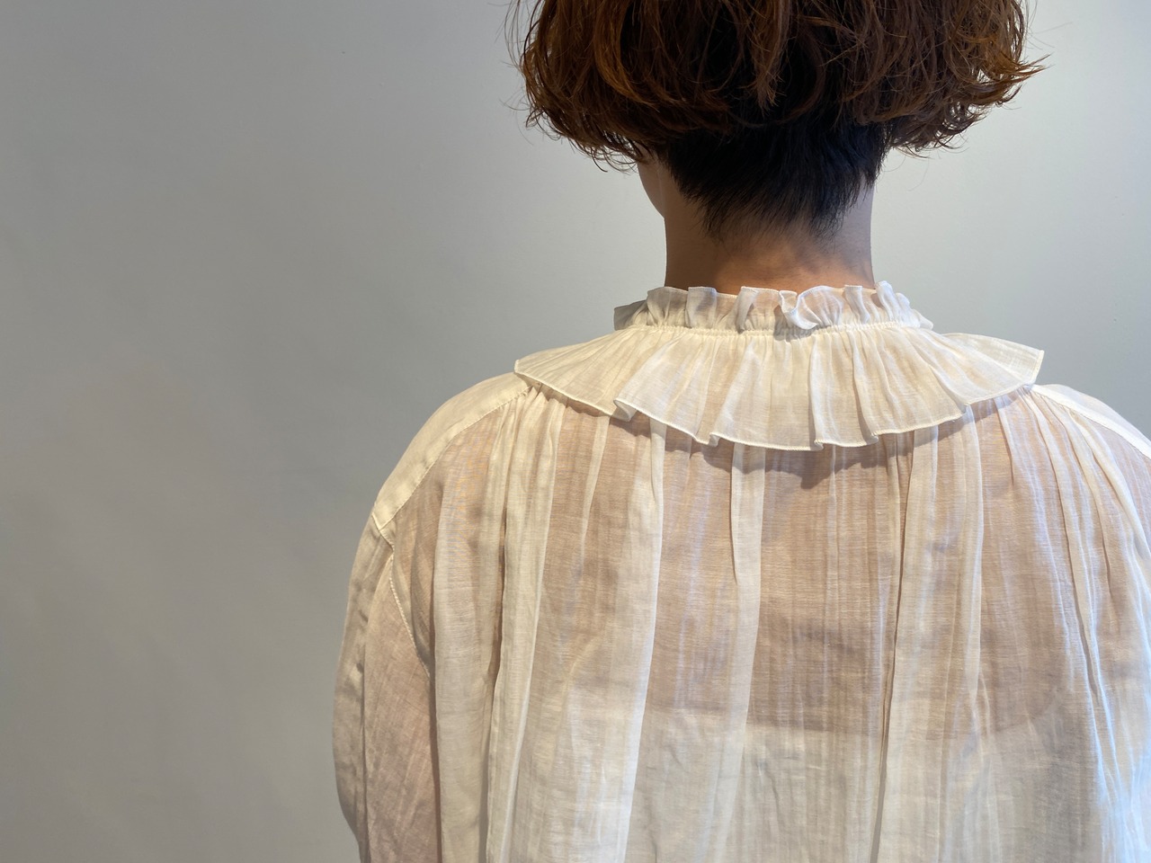 ふんだんなギャザーを用いていますが、繊細な透け感と細かなディテールによる儚い印象が特徴的のアイテムです。