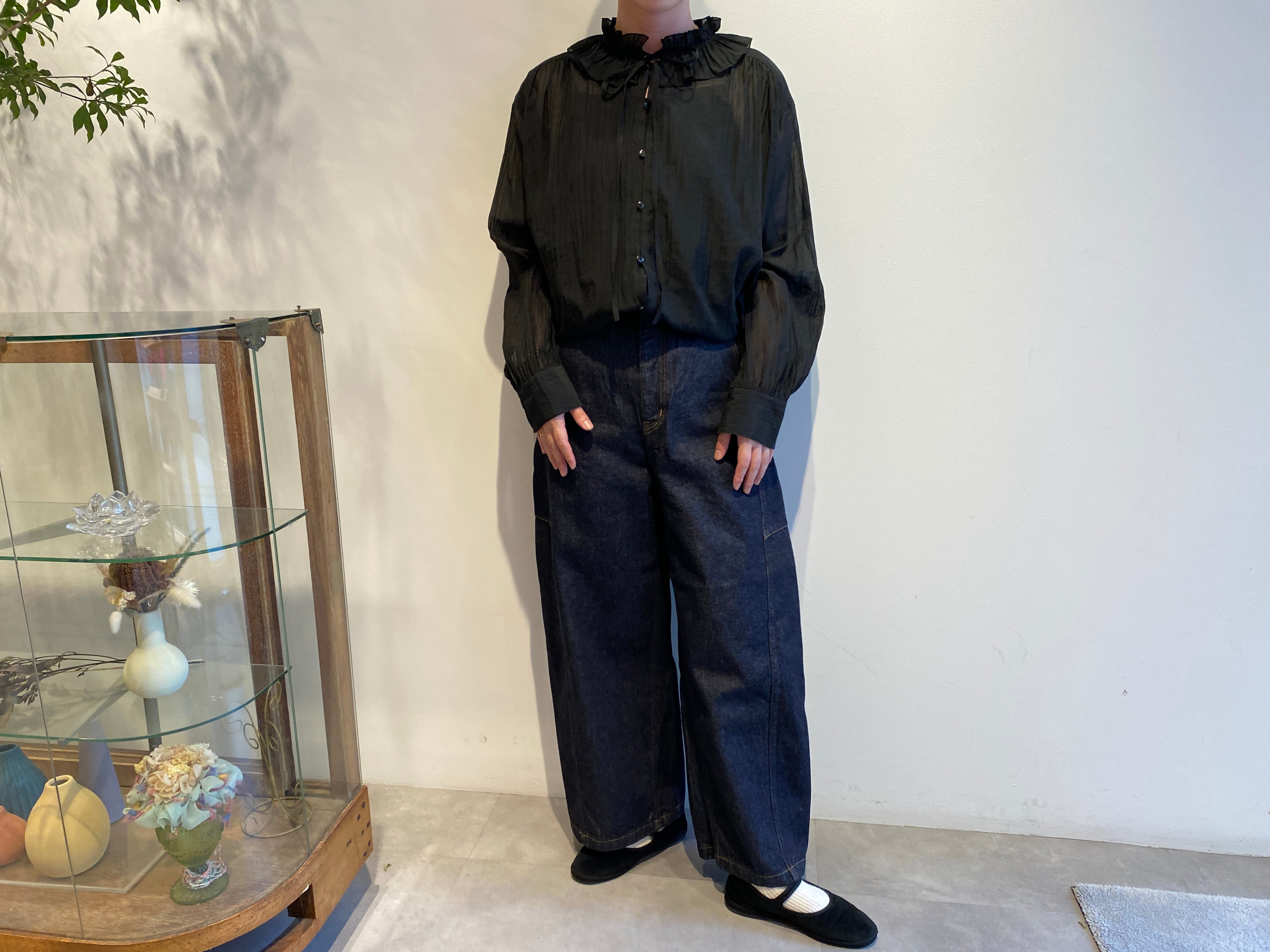 iki/ 綿ナイロンギャザーカラーブラウス