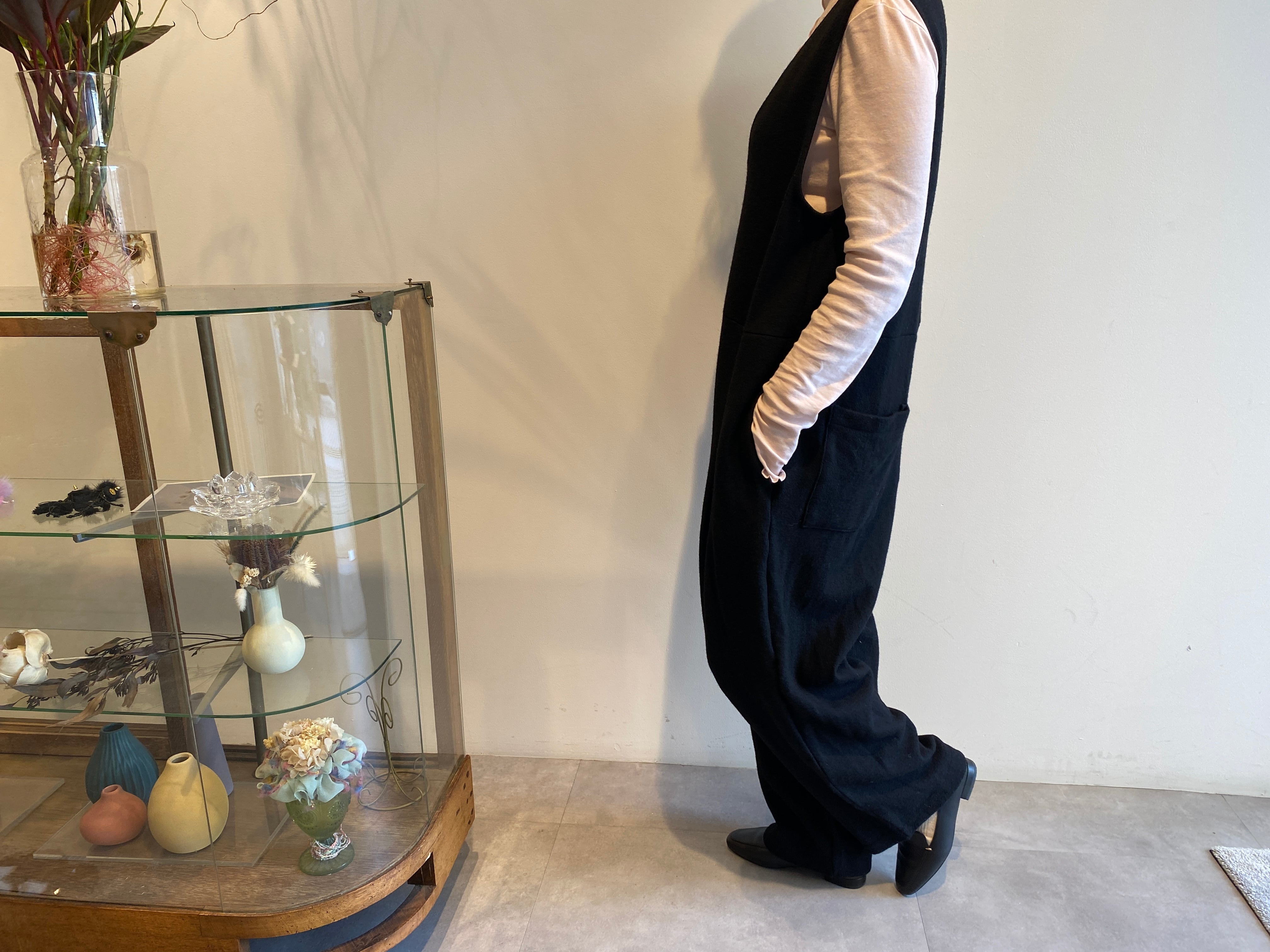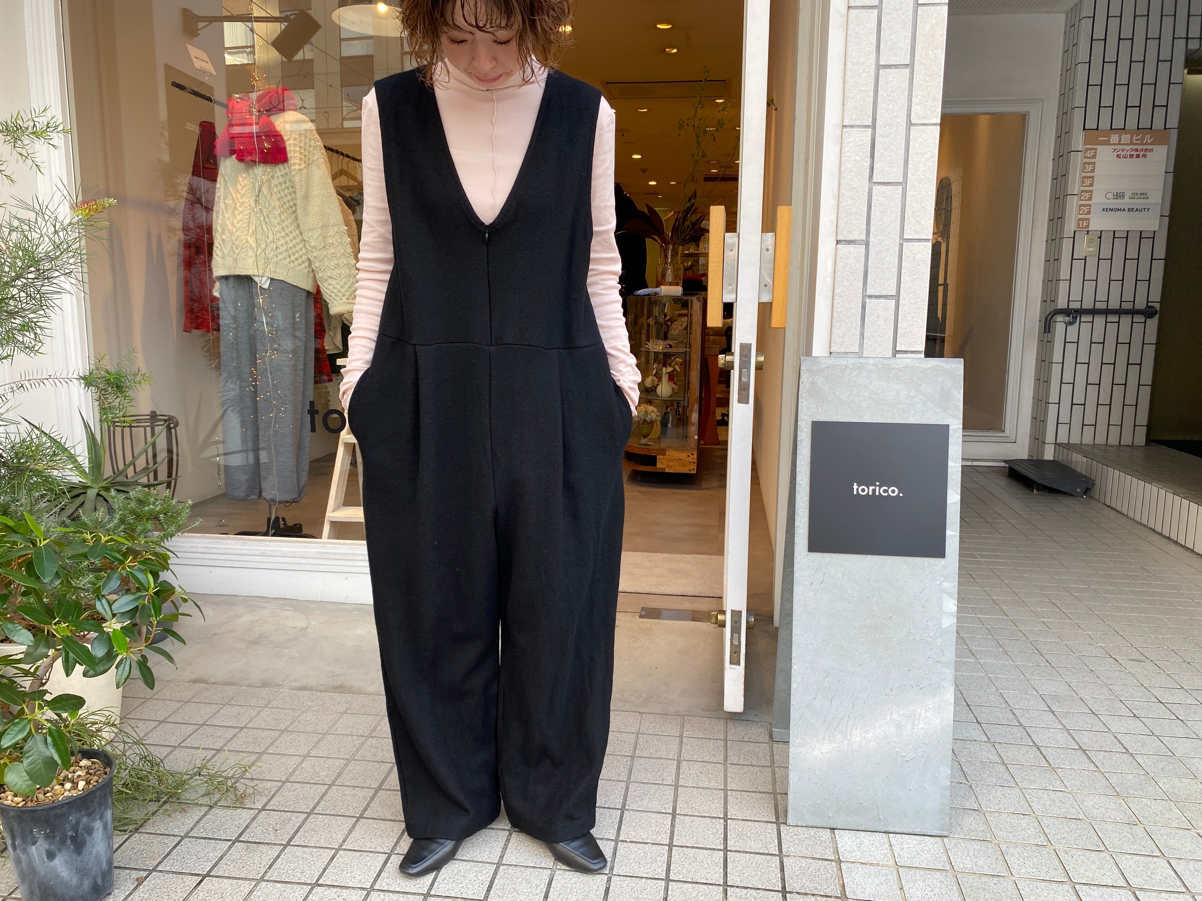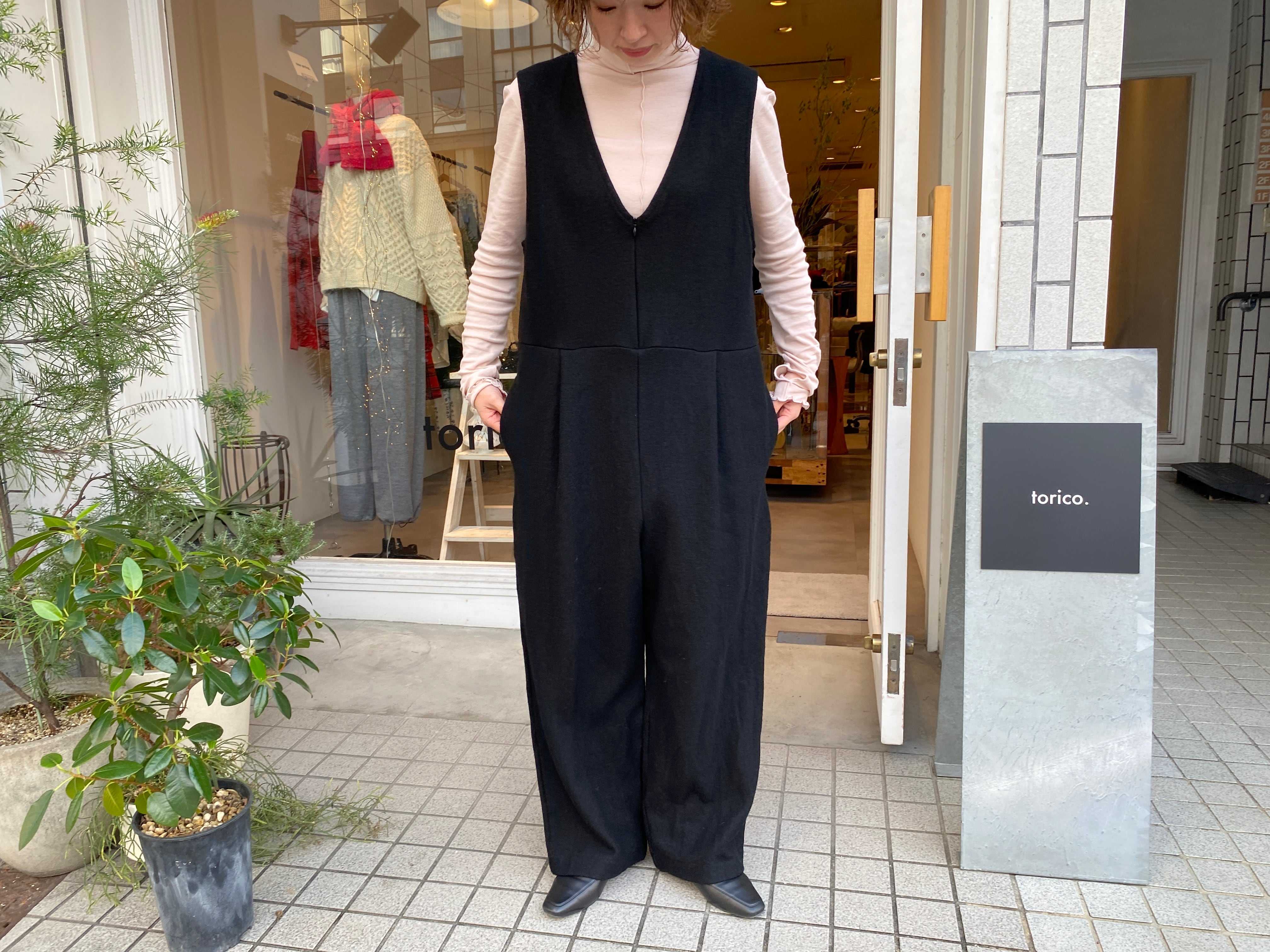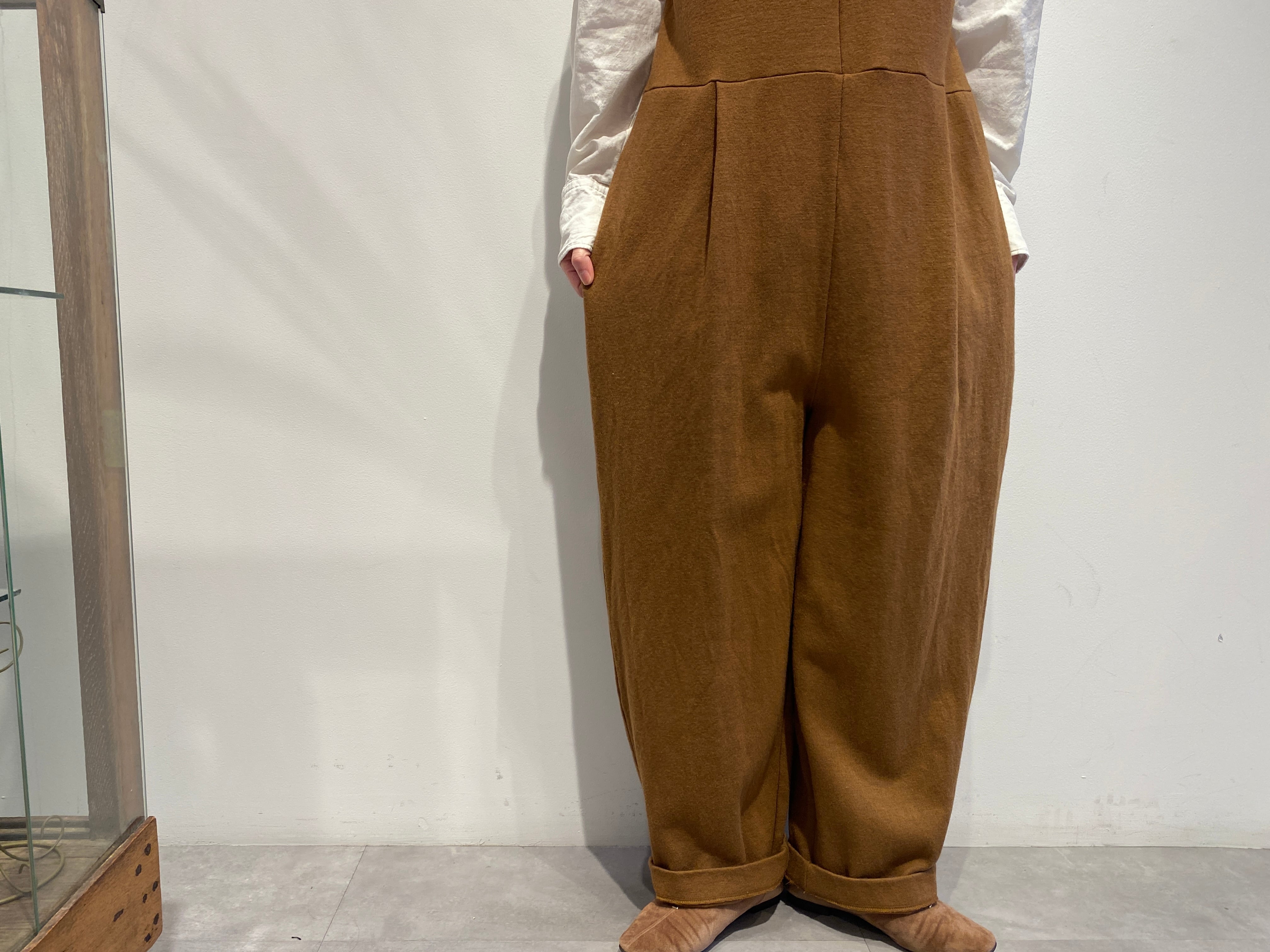 UNIVERSAL TISSU/圧縮ウール Vネックサロペットパンツ