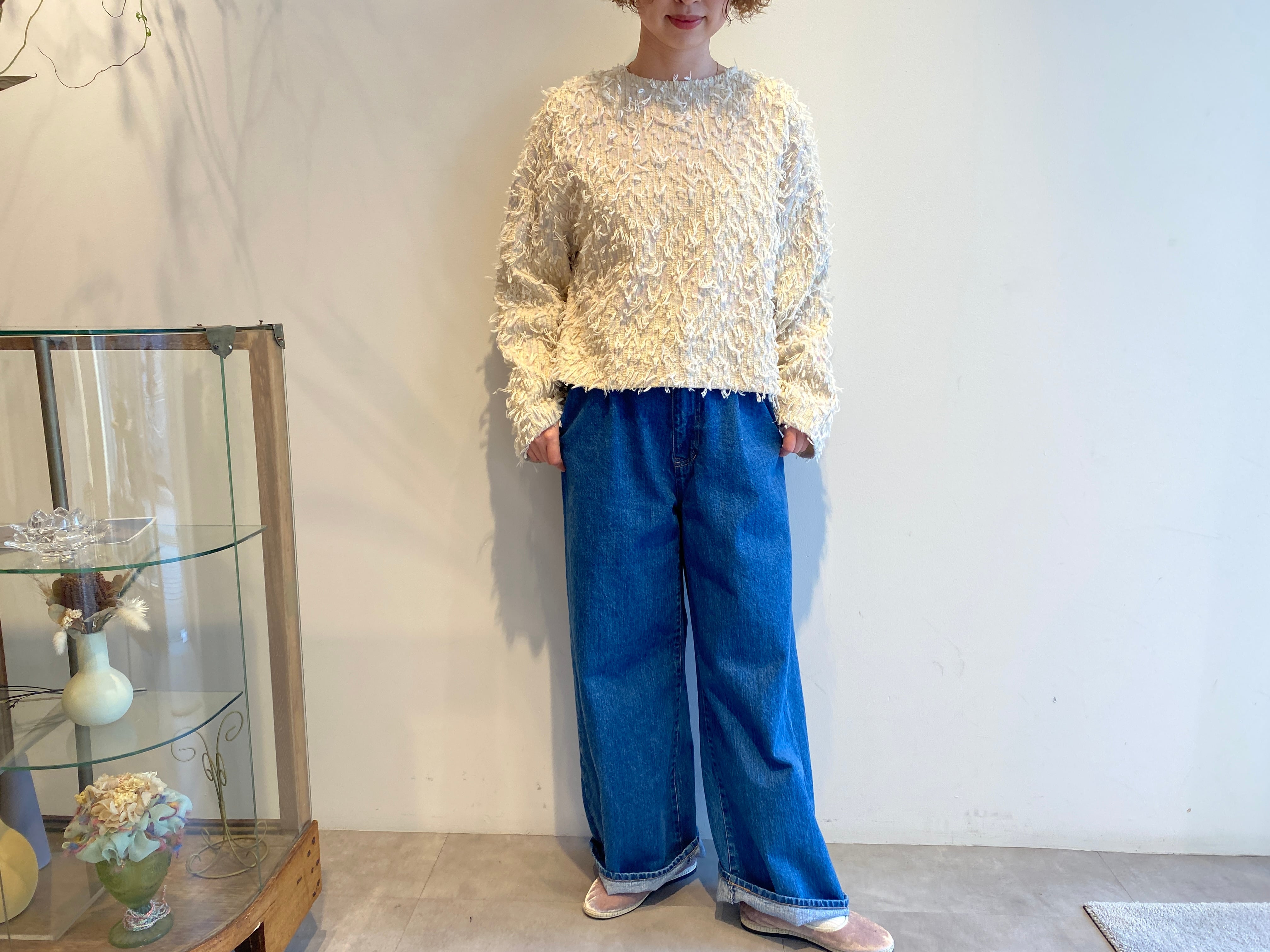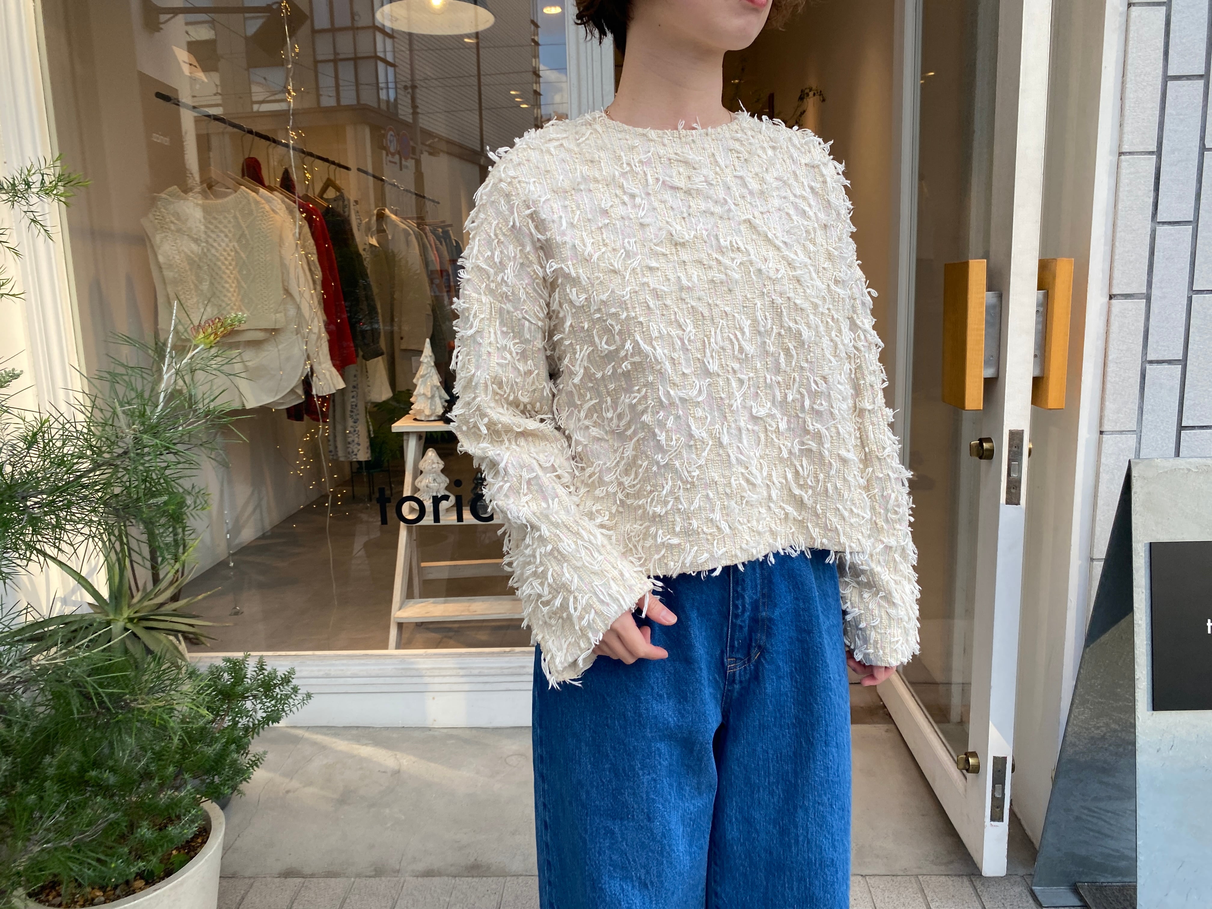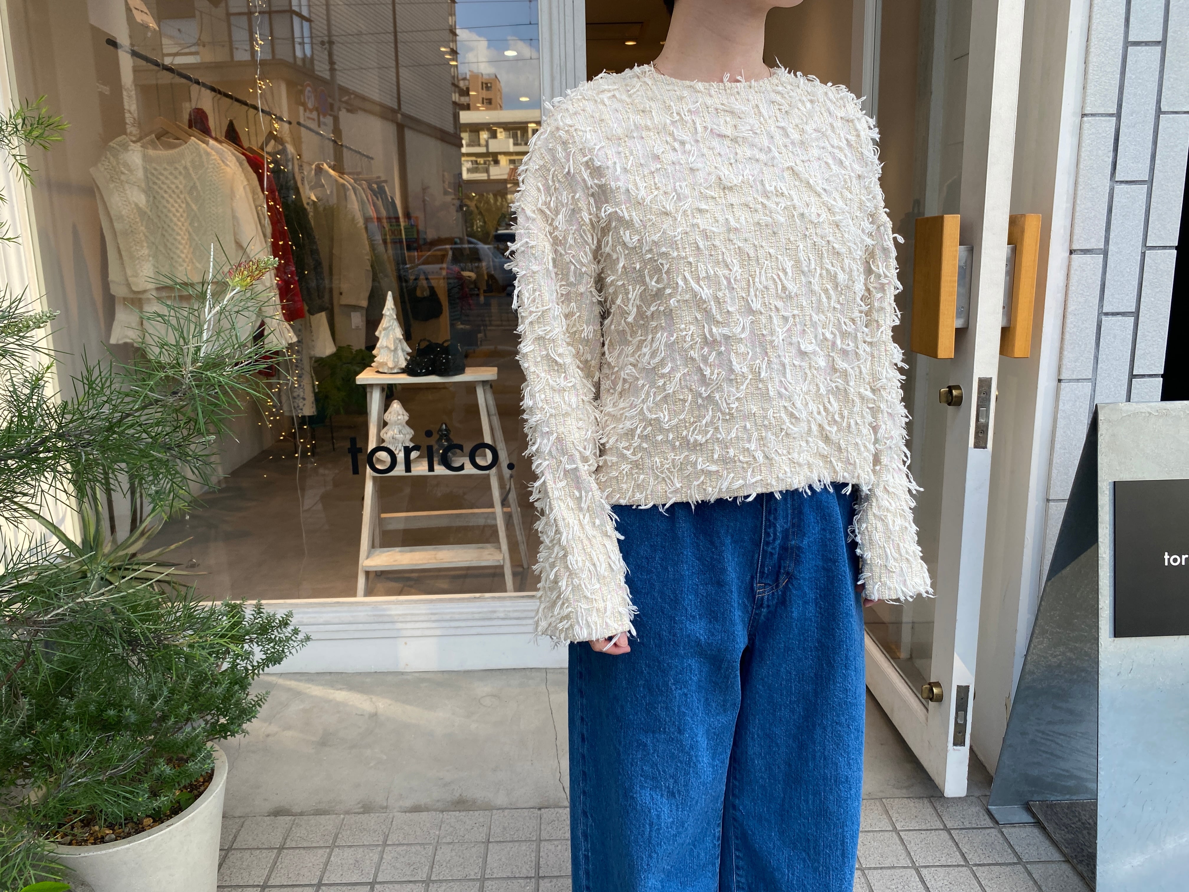 珍しい番手の綿糸を使用したカット糸は、あえて長めに不揃いにカットしているので、