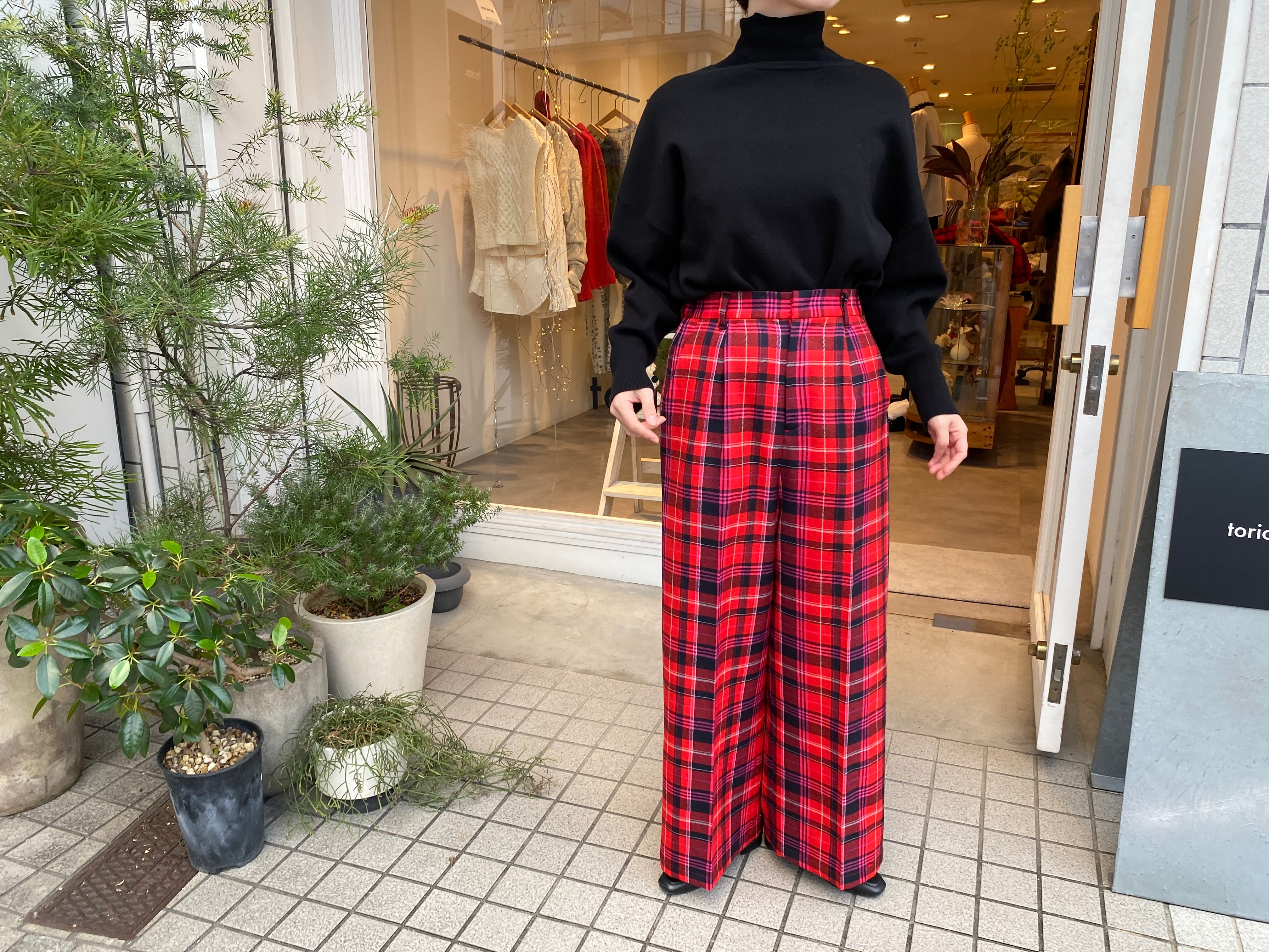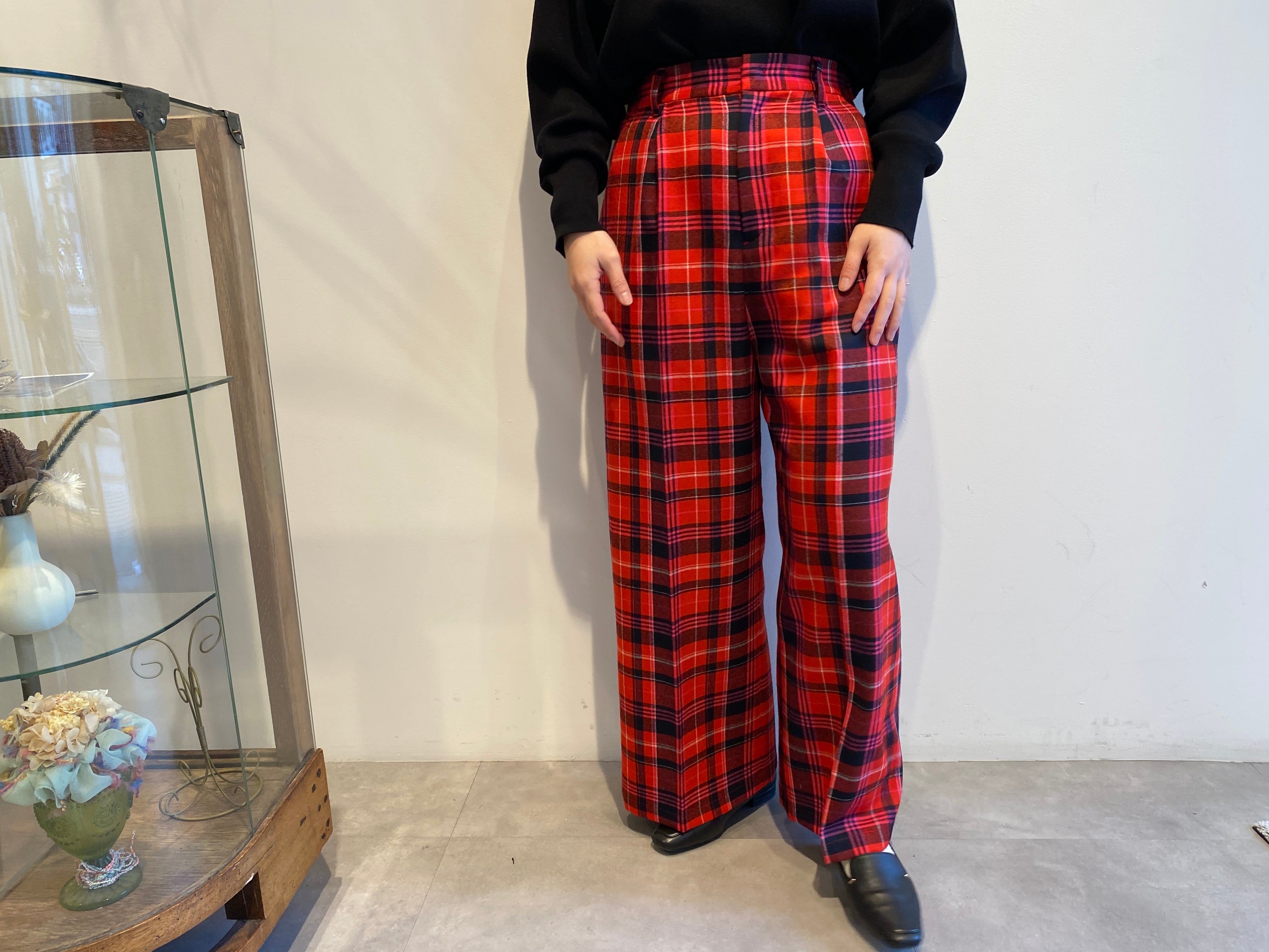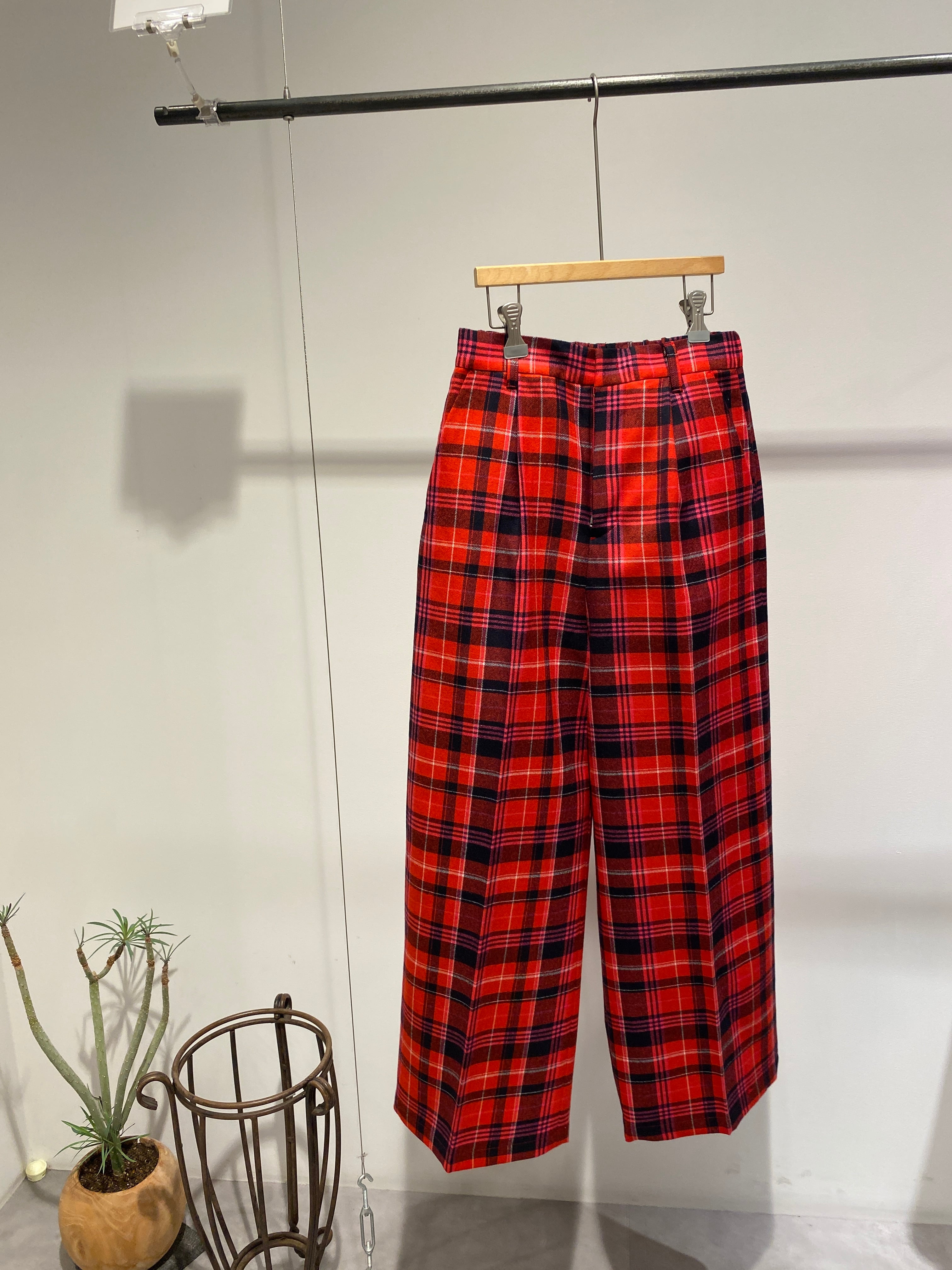 iki/先染めチェックワイドパンツ