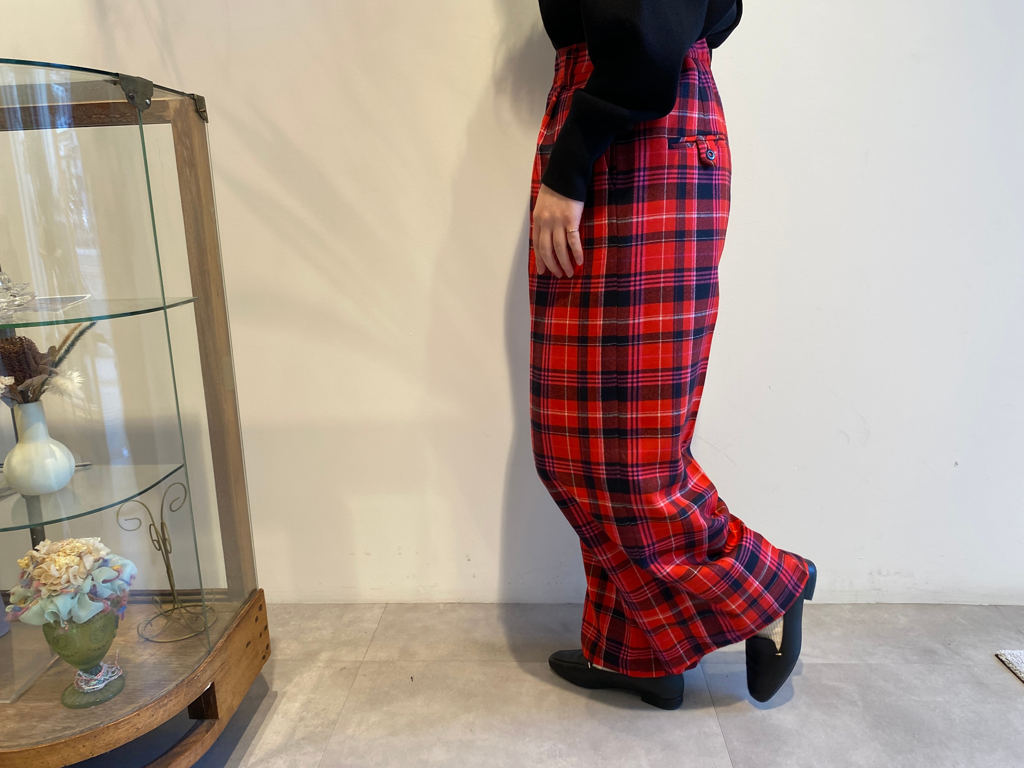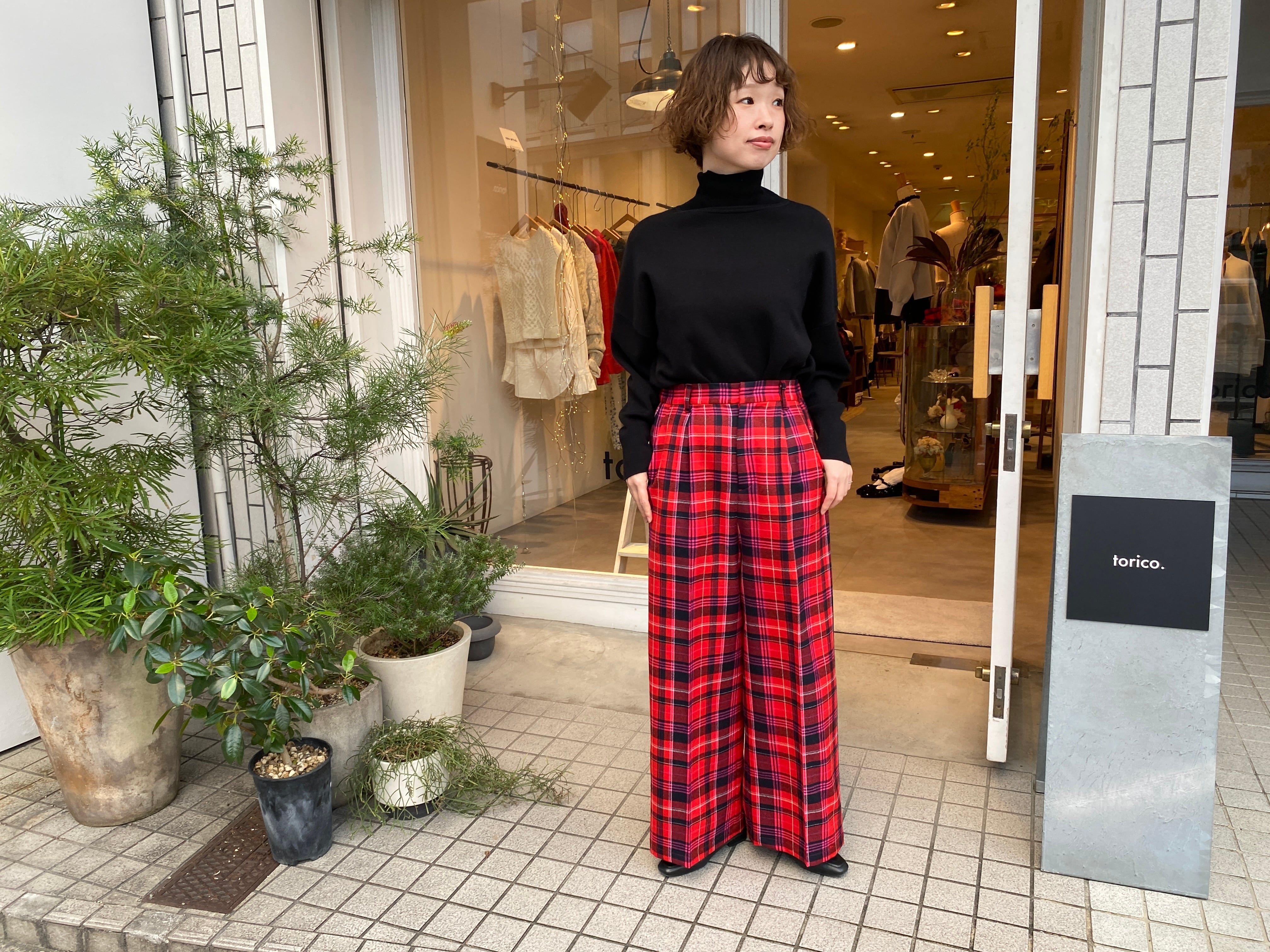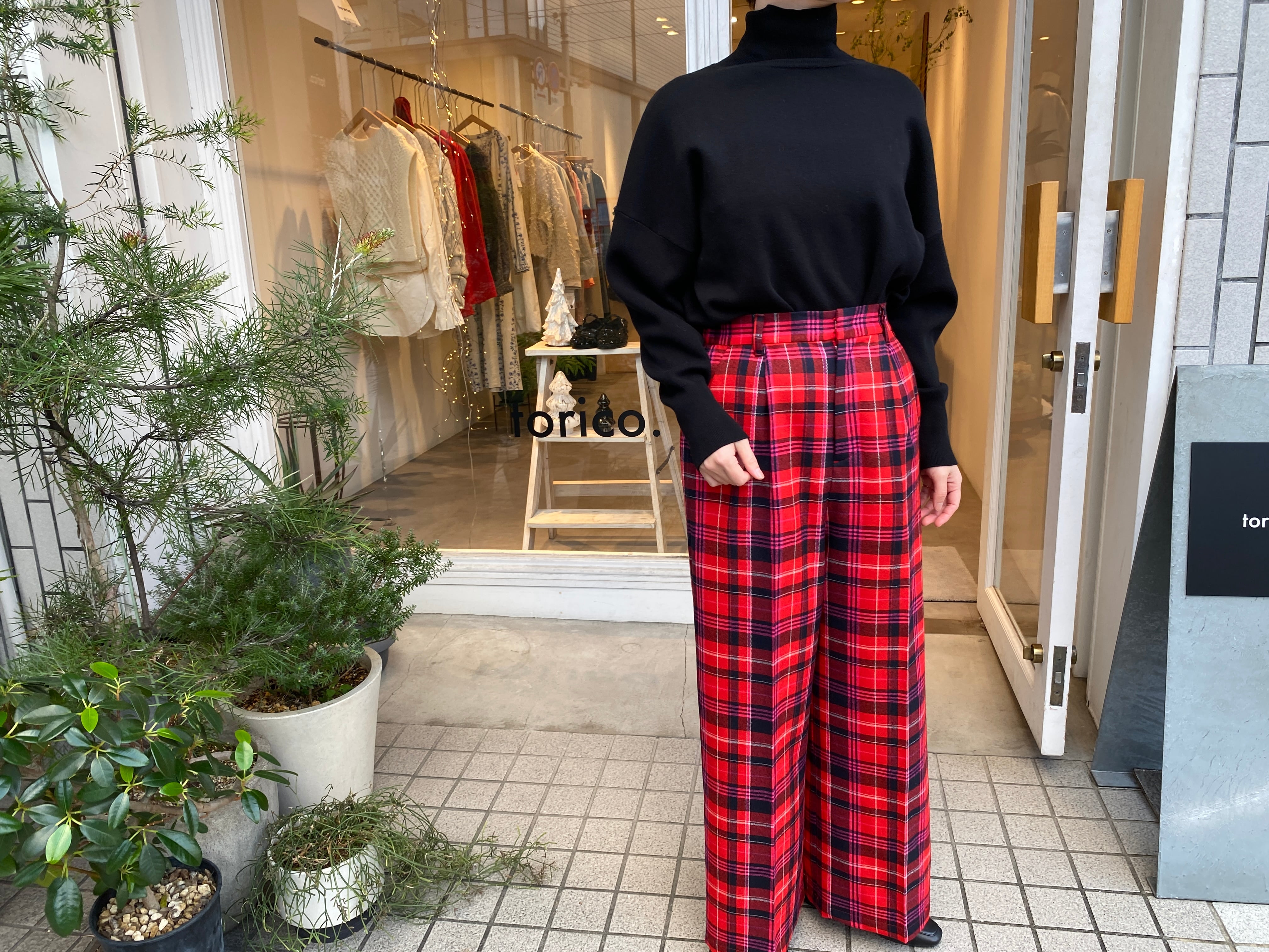 iki/先染めチェックワイドパンツ