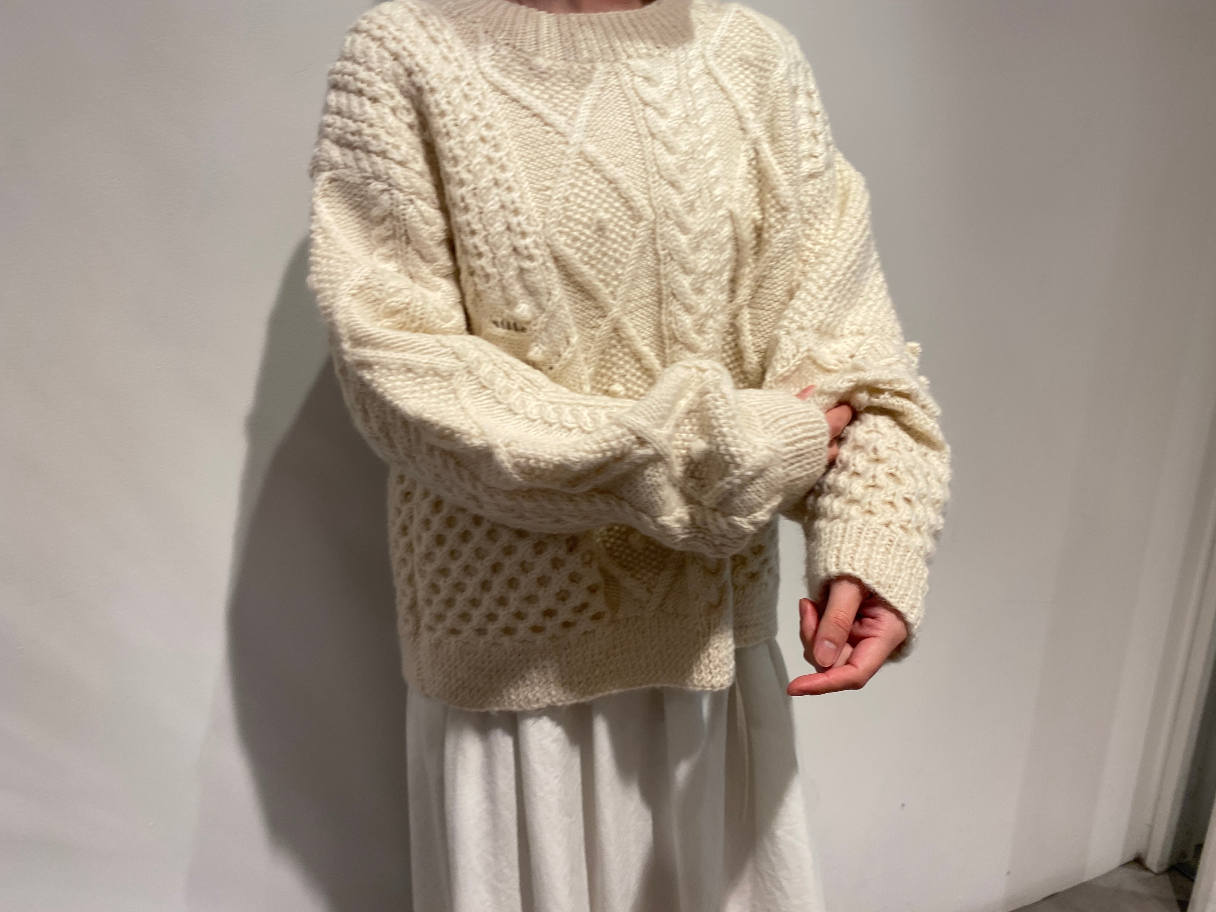 ネパールのニッターさんが、ひと目ずつていねいに編んでくれたハンドニット。