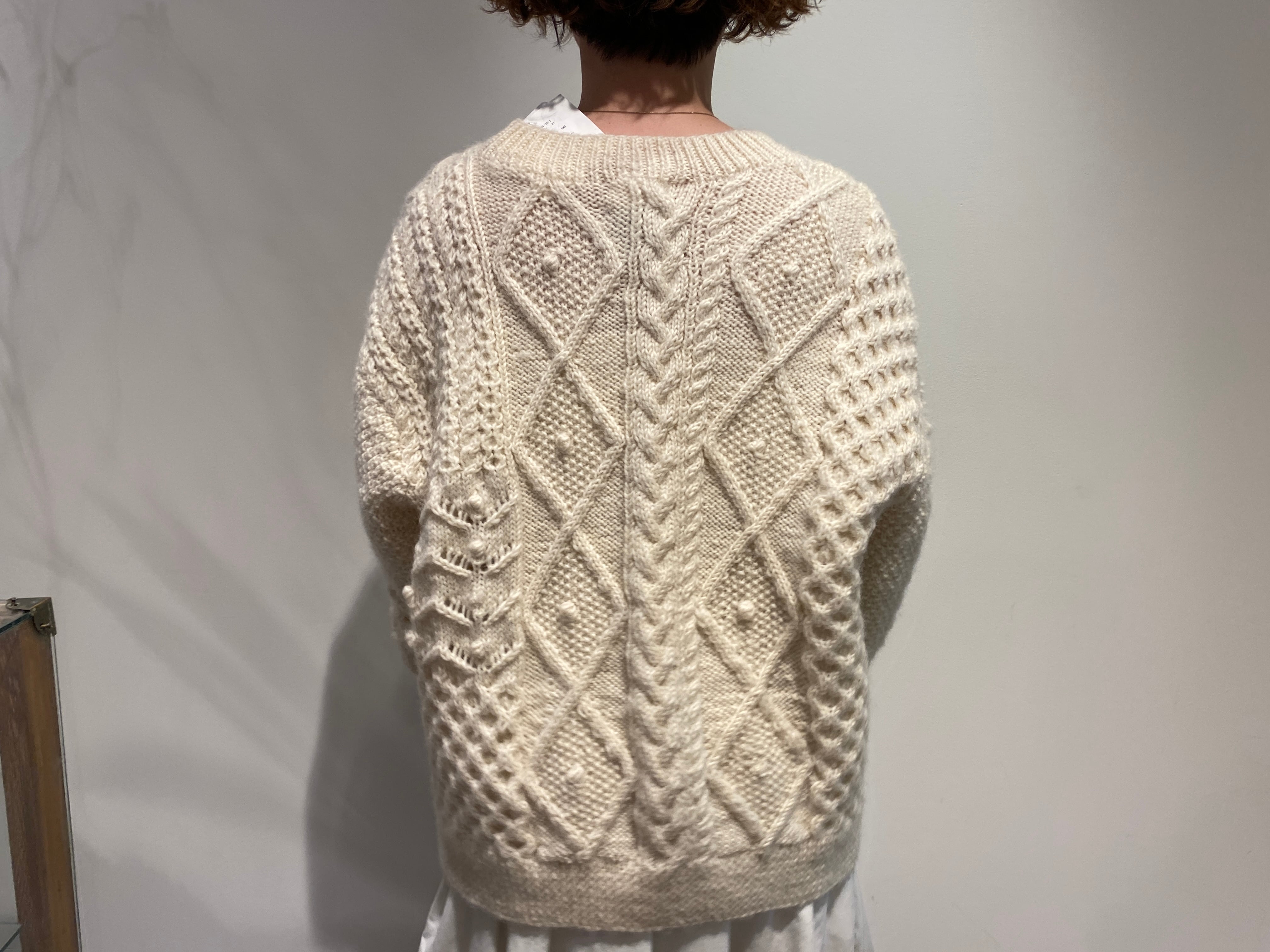 左右で編み柄がちがう、ちょっと遊び心のあるデザイン。