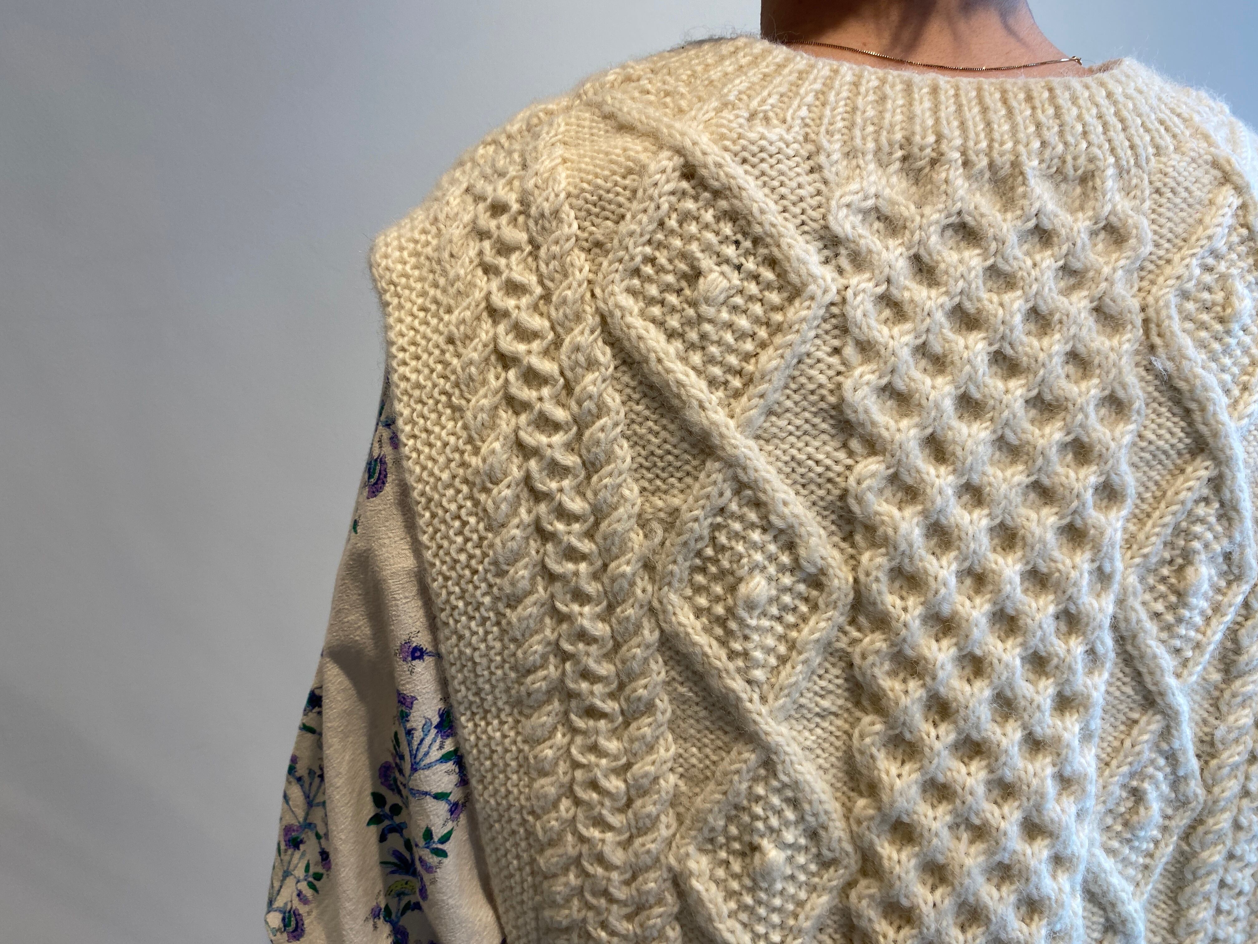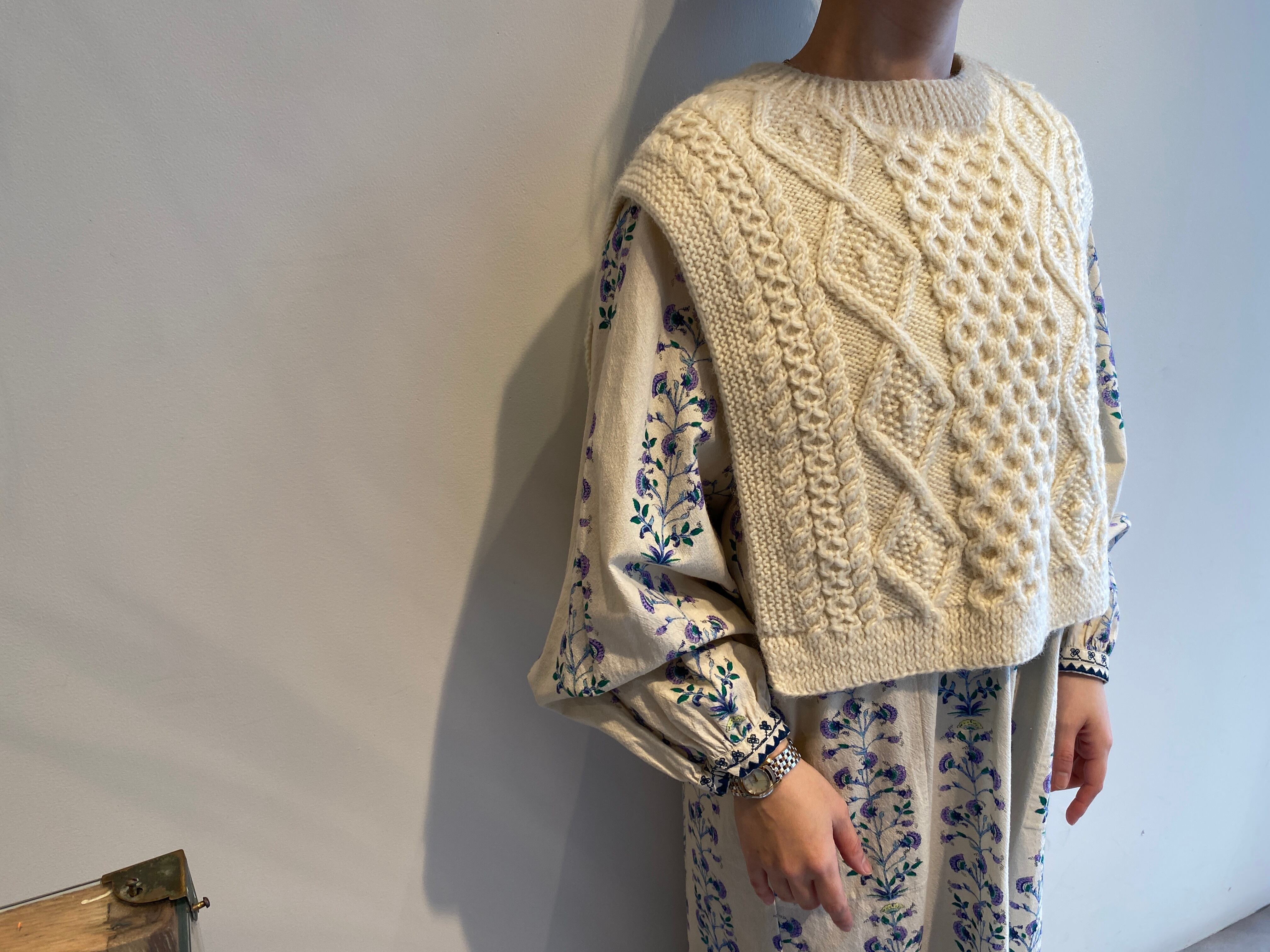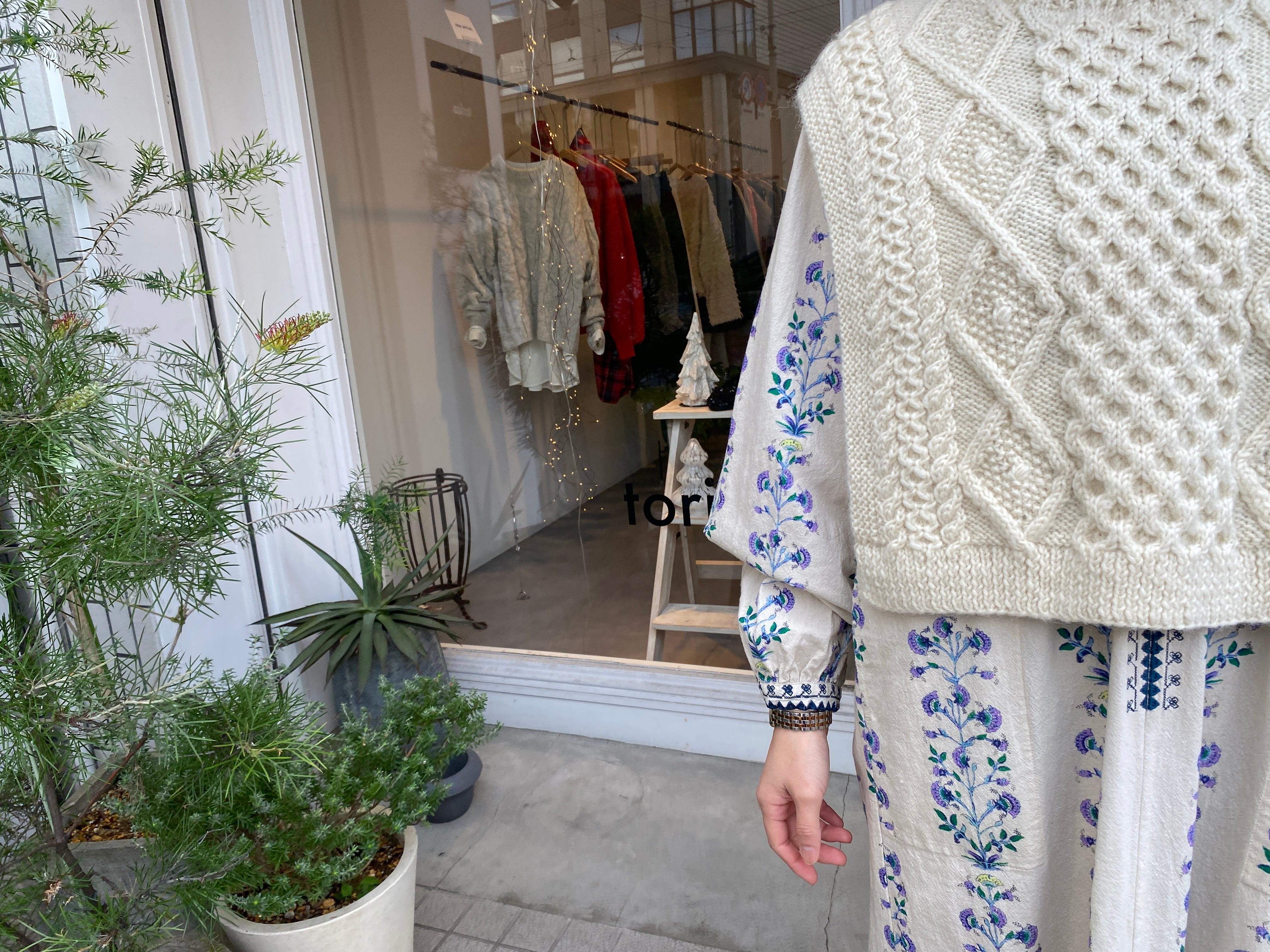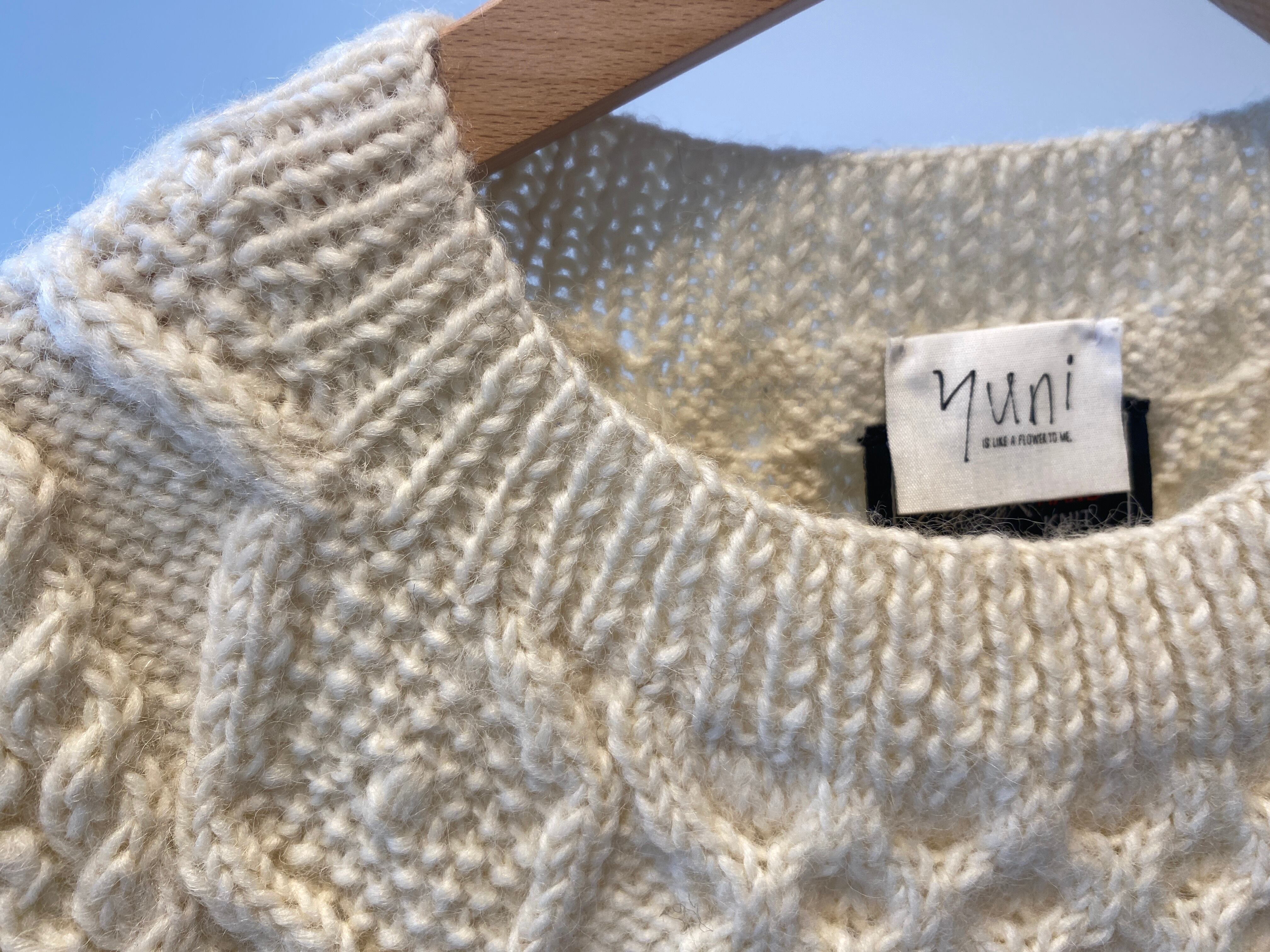 ネパールのニッターさんが、ひと目ずつていねいに編んでくれたハンドニット。