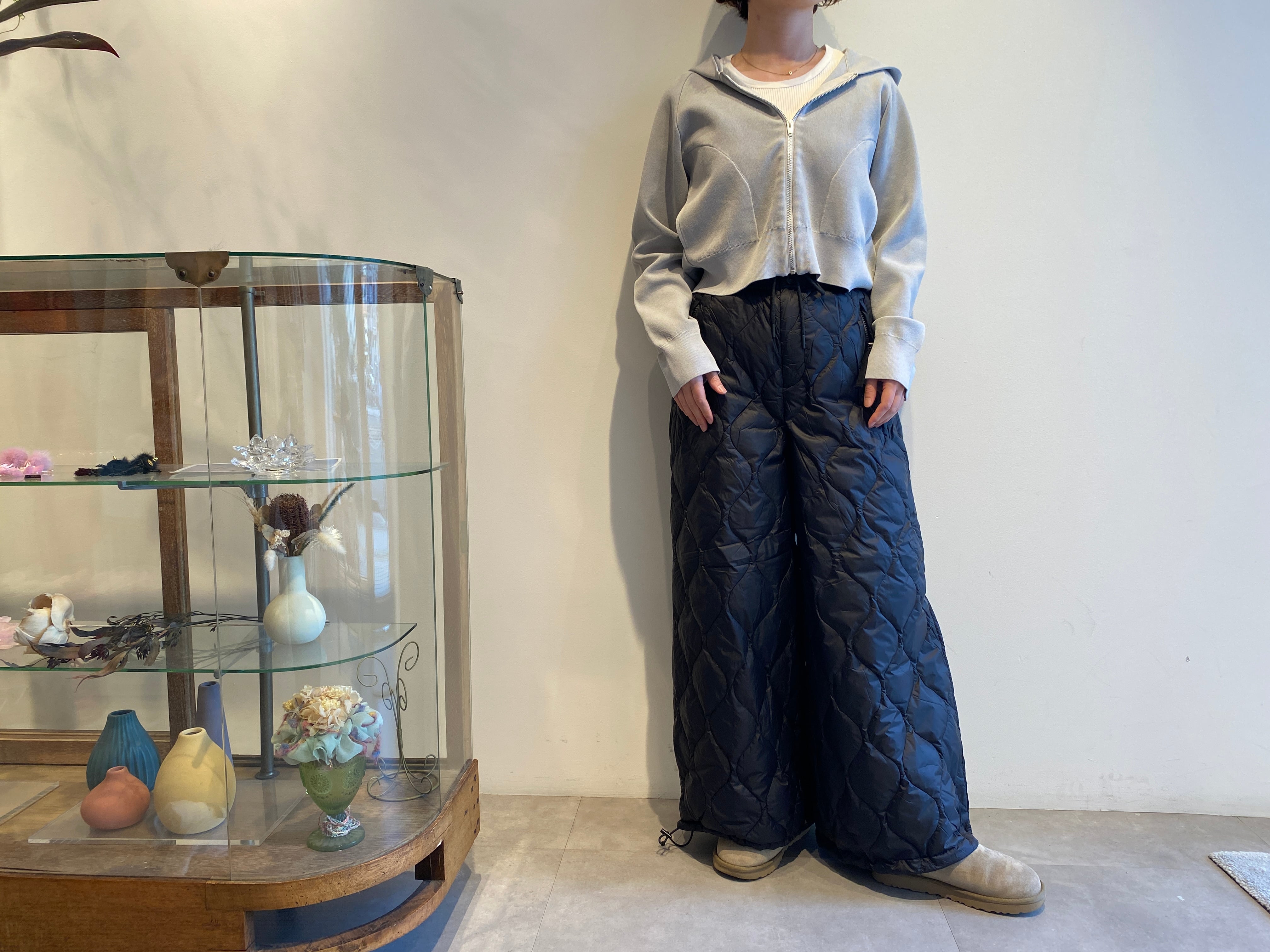スカートのようにふんわりとしたボリューム感、裾は広めのデザインですが、アジャスターで絞ることでシルエットを変えることができ、9分丈でバランスよく履きこなせます。