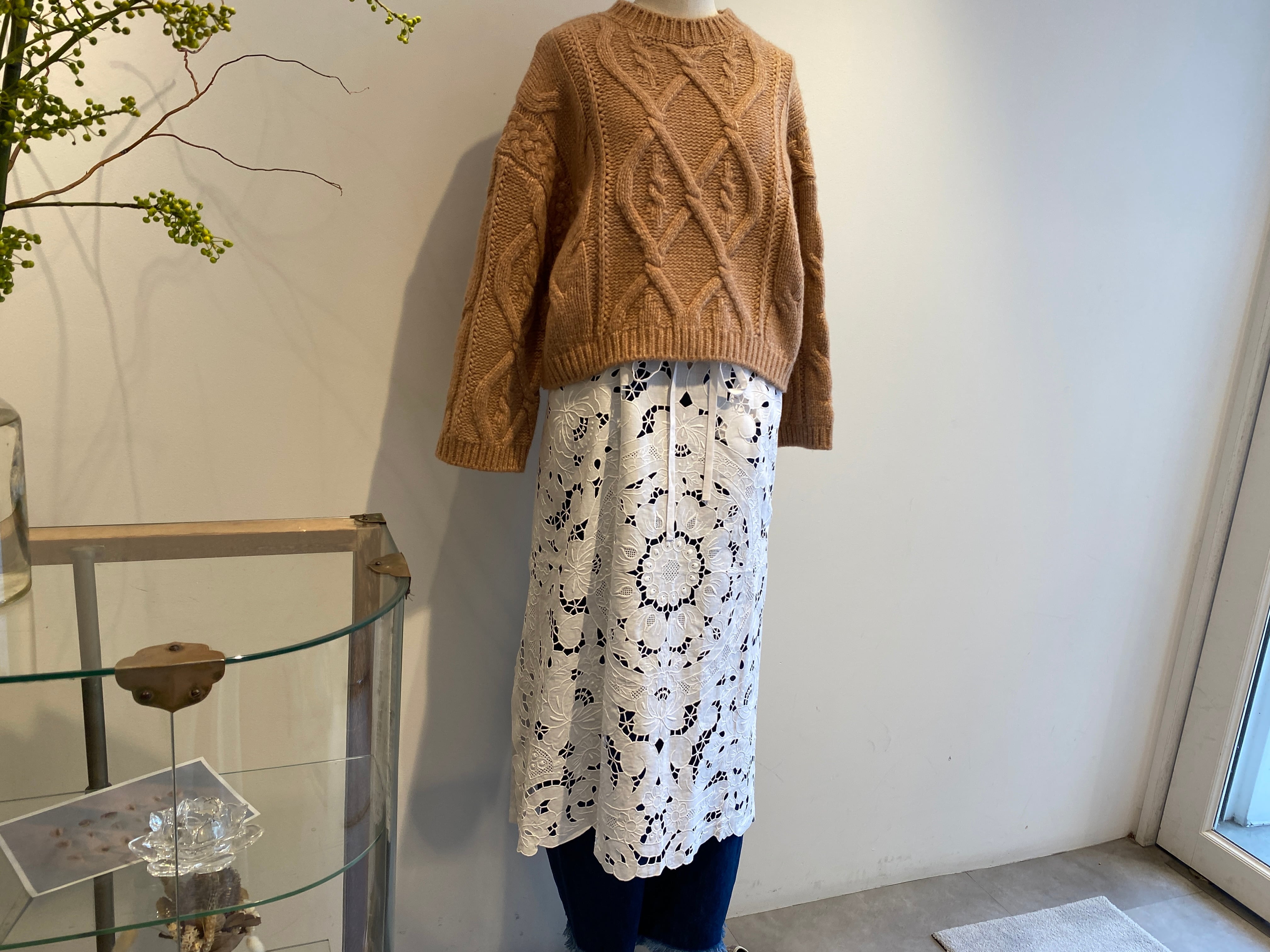 デッドストックのカットワーク刺繍の