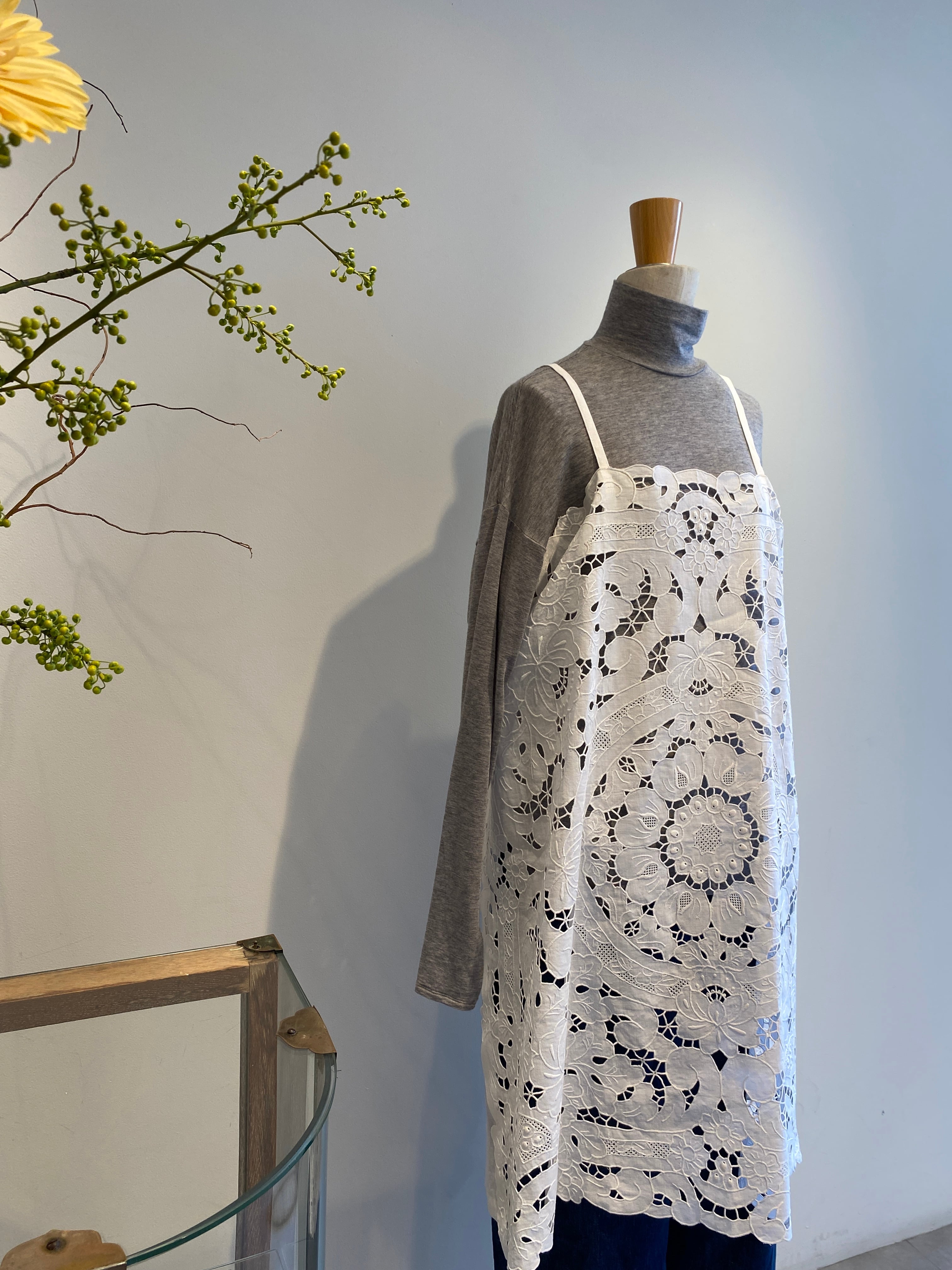 カットワーク刺繍は全てハンド刺繍で作られています。