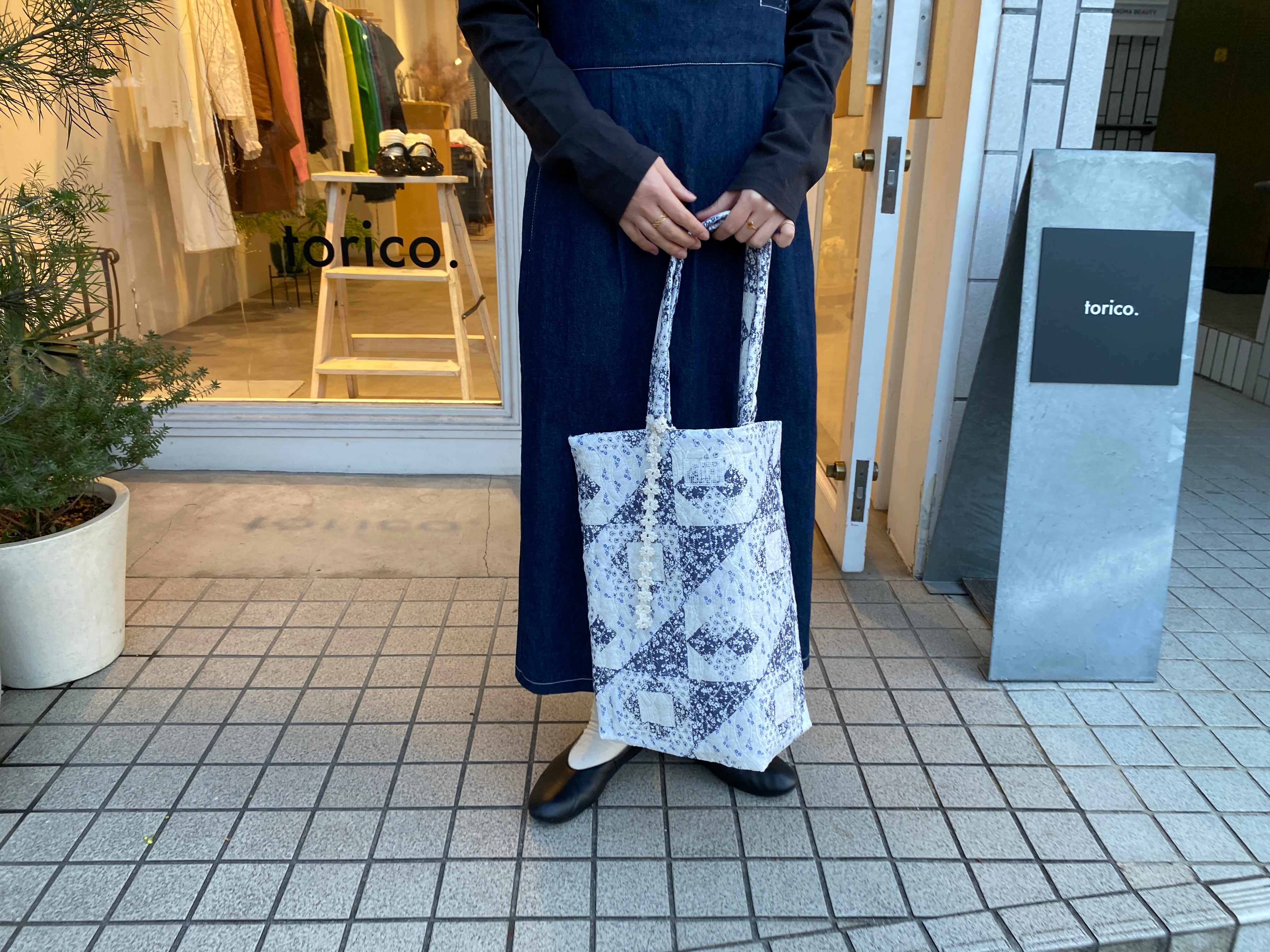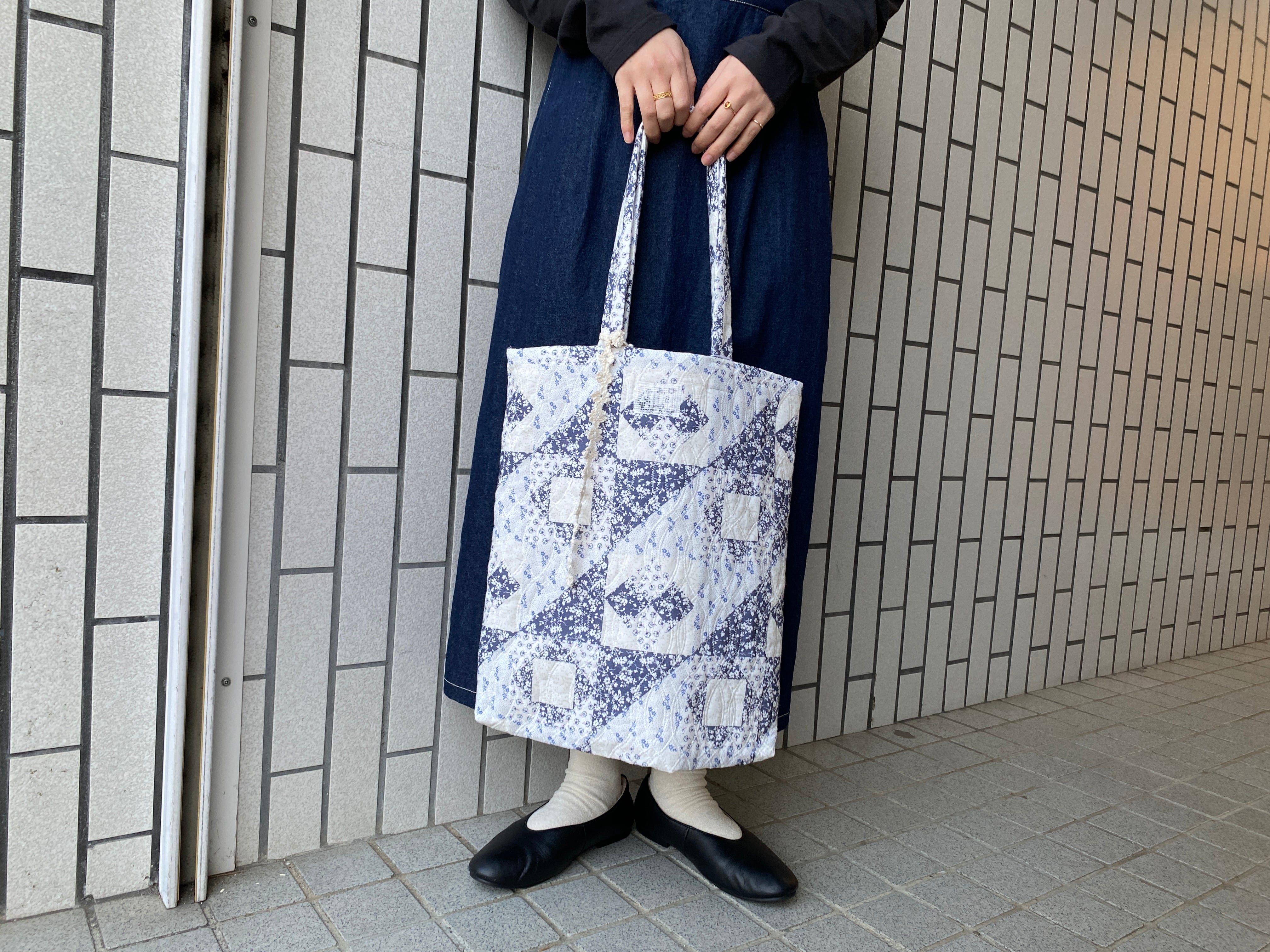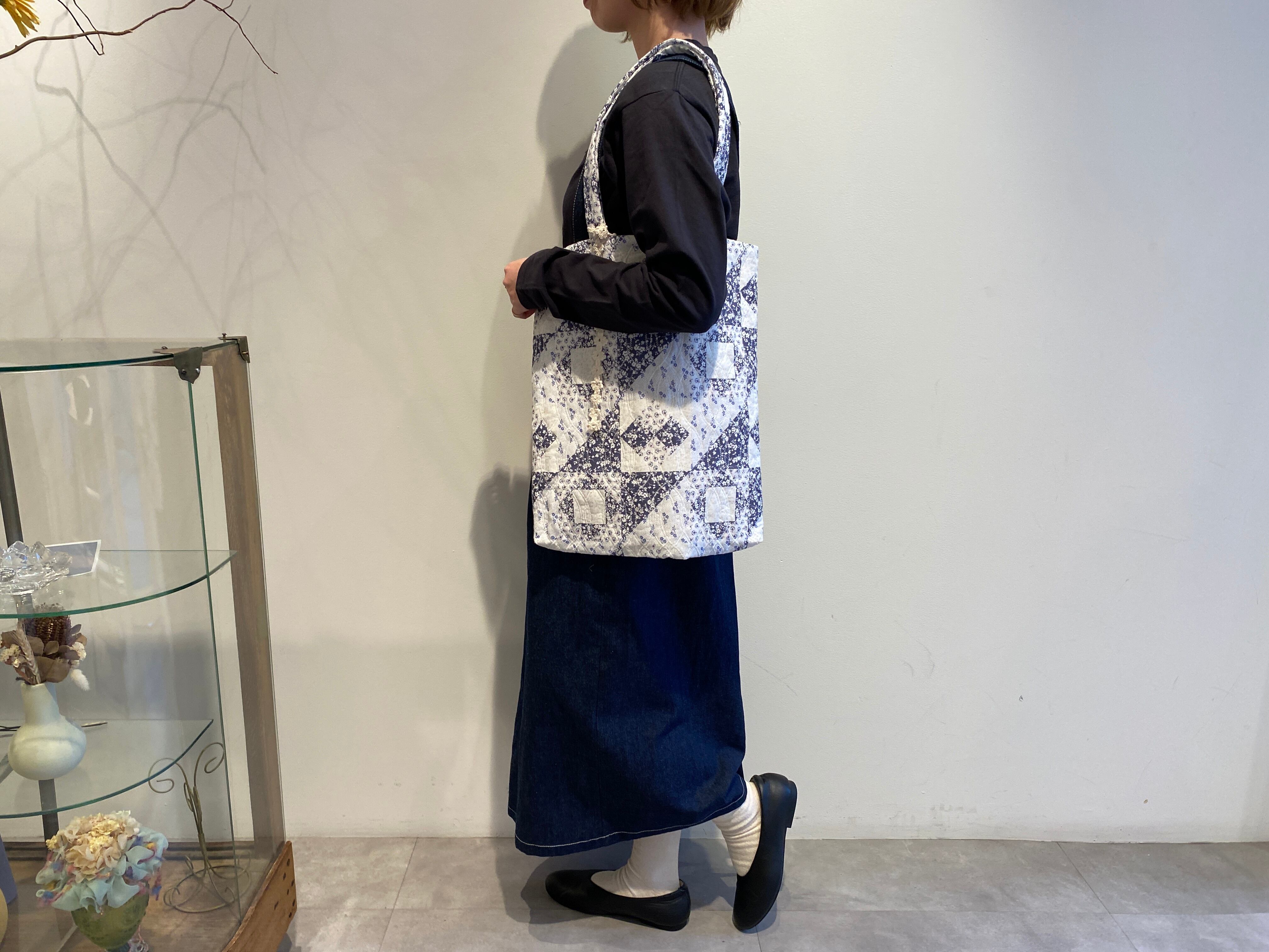 qiri/ patchwork print quilting tote bag