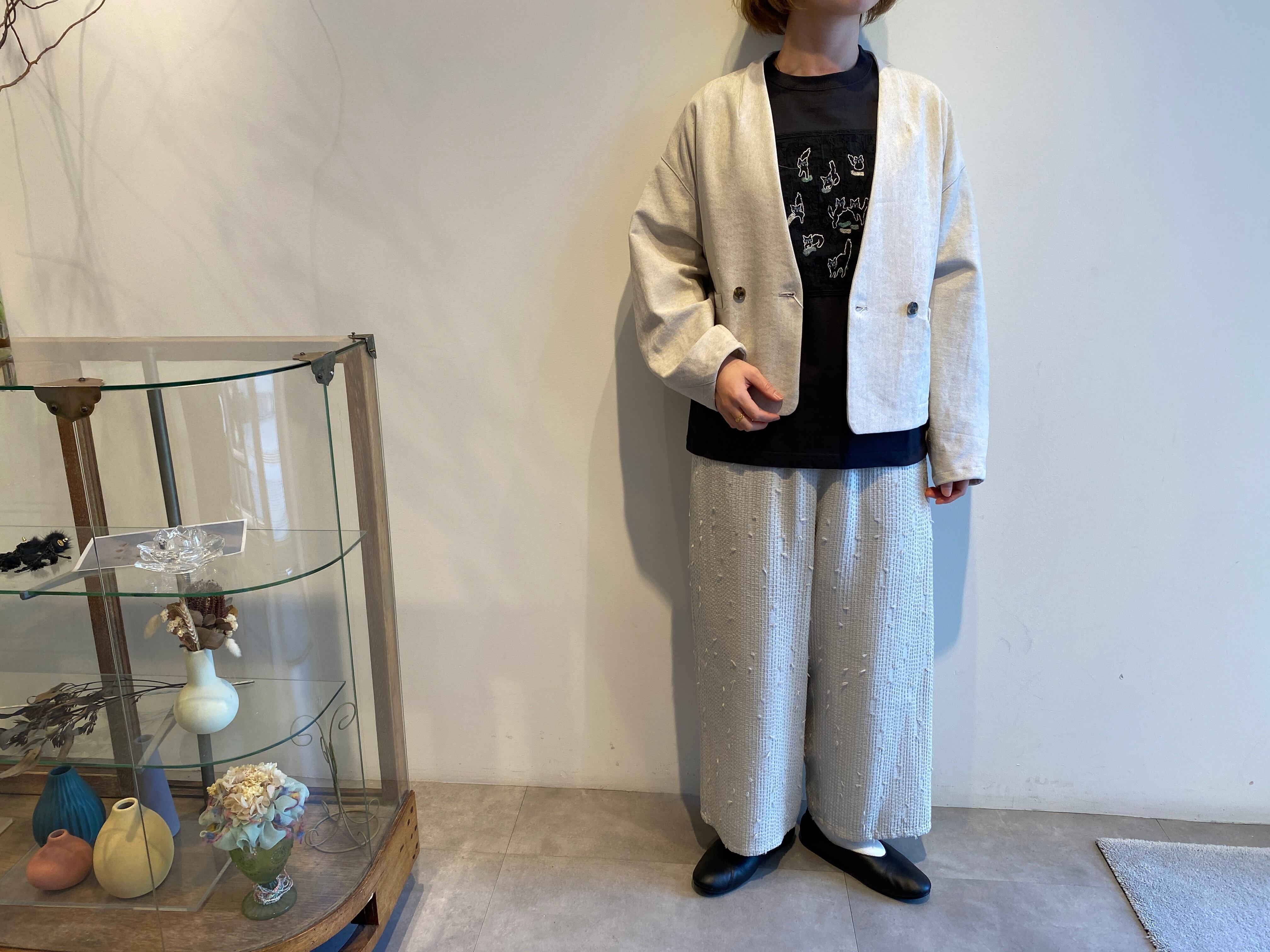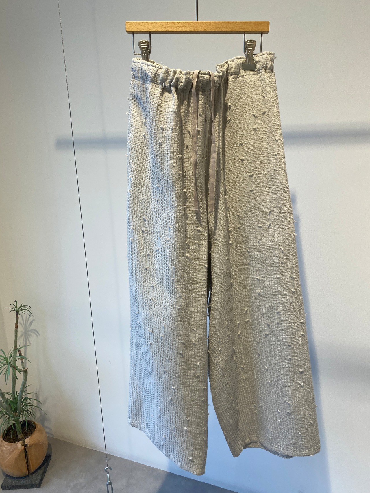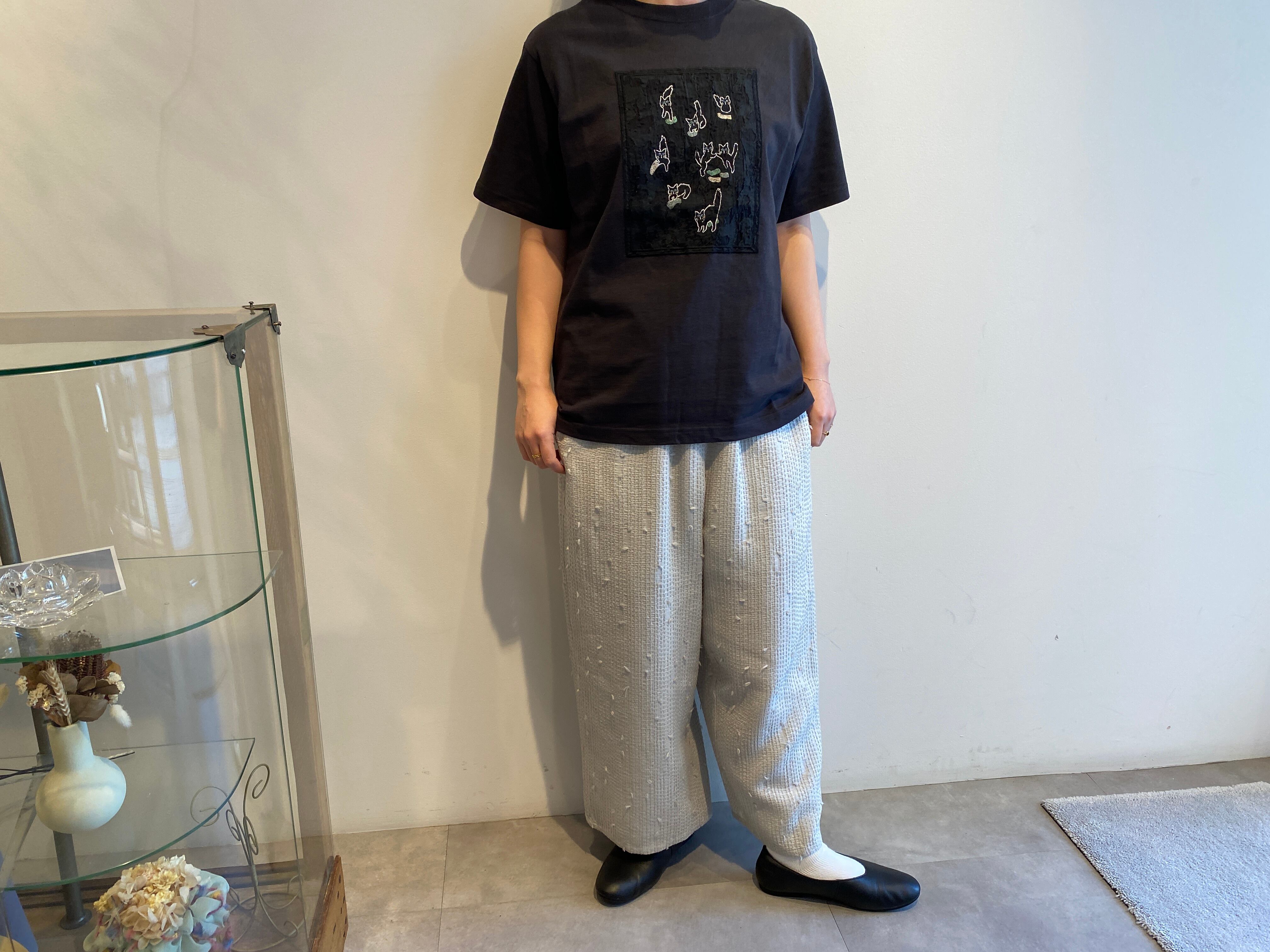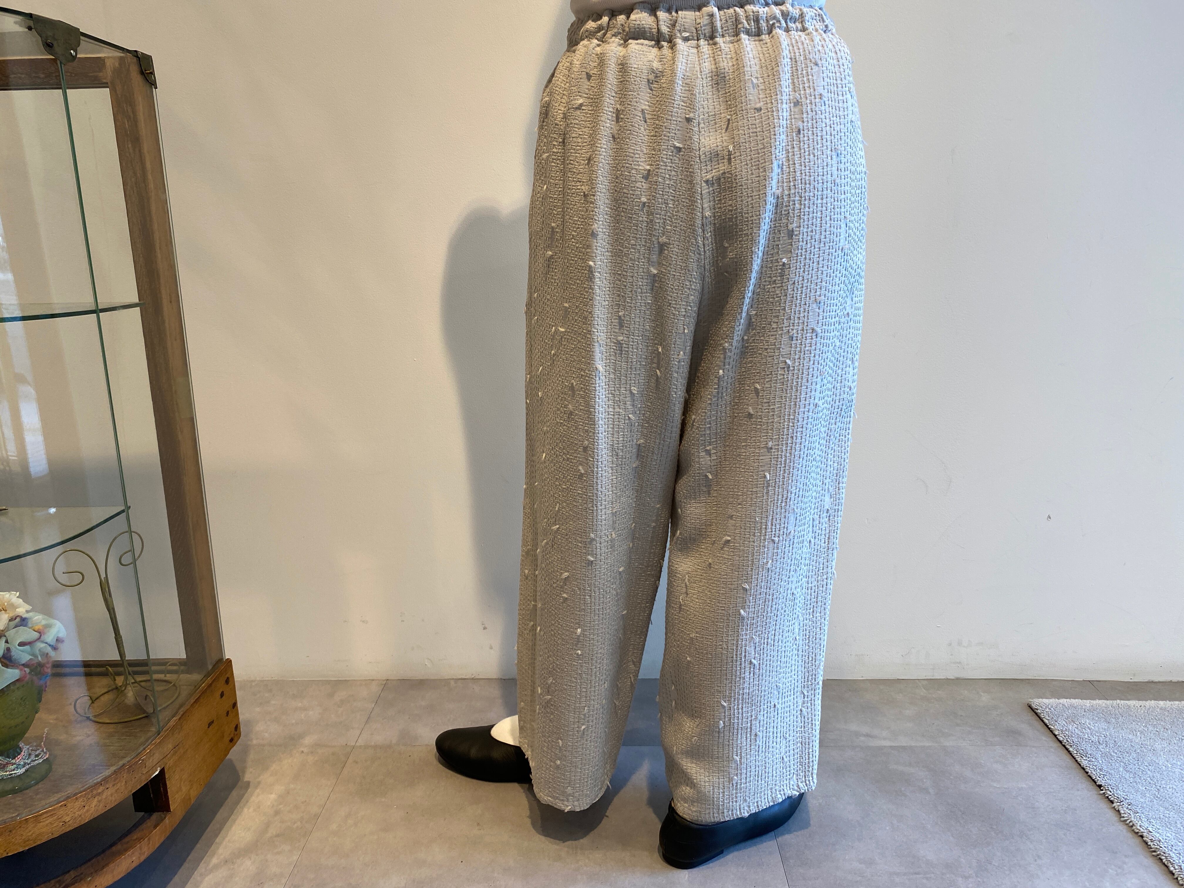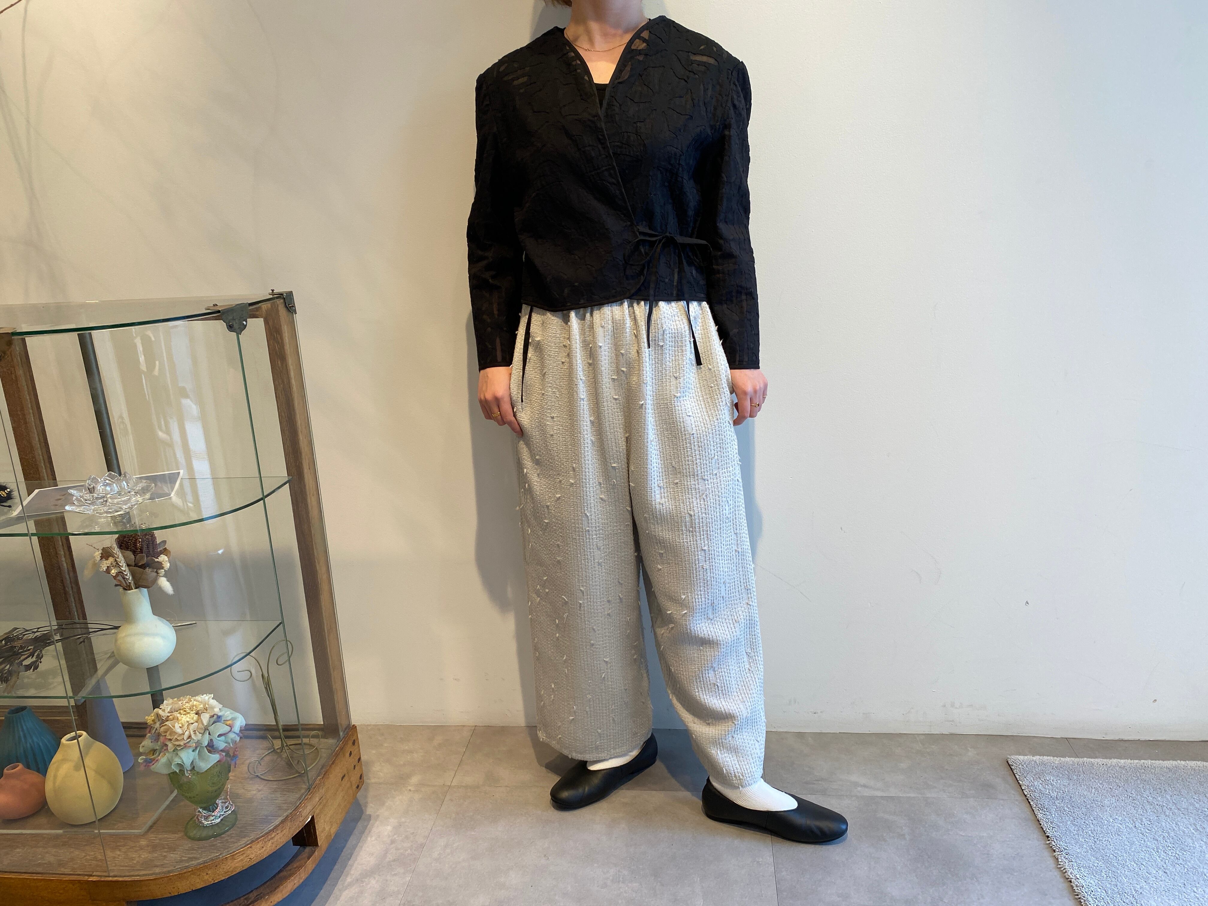 qiri/sashiko jacquard ギャザーワイドパンツ