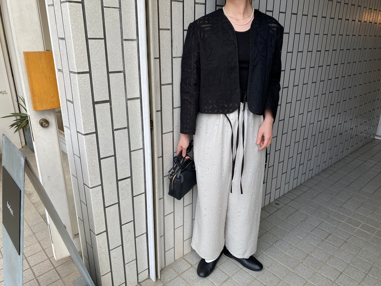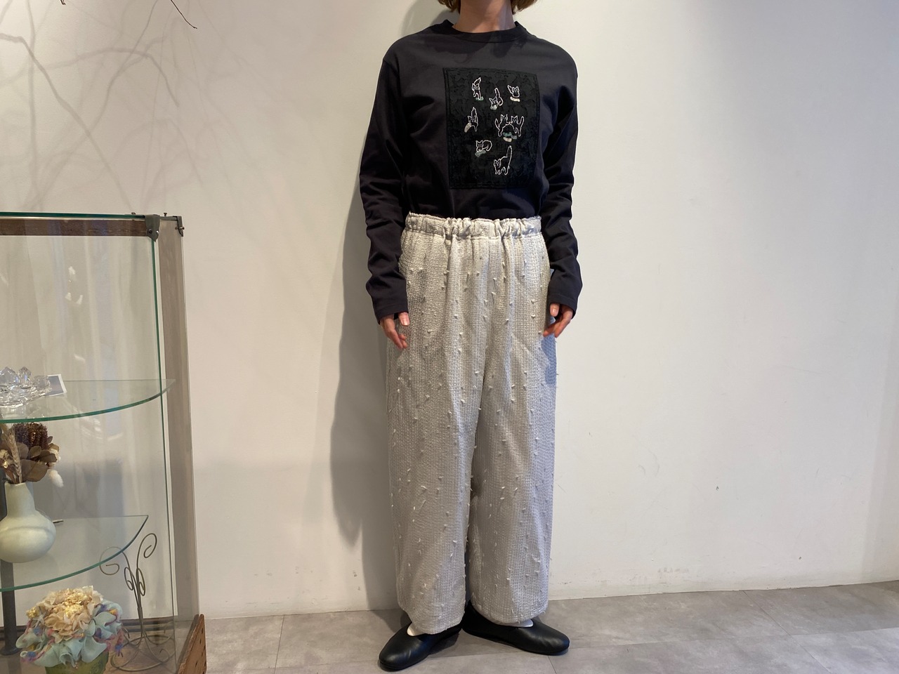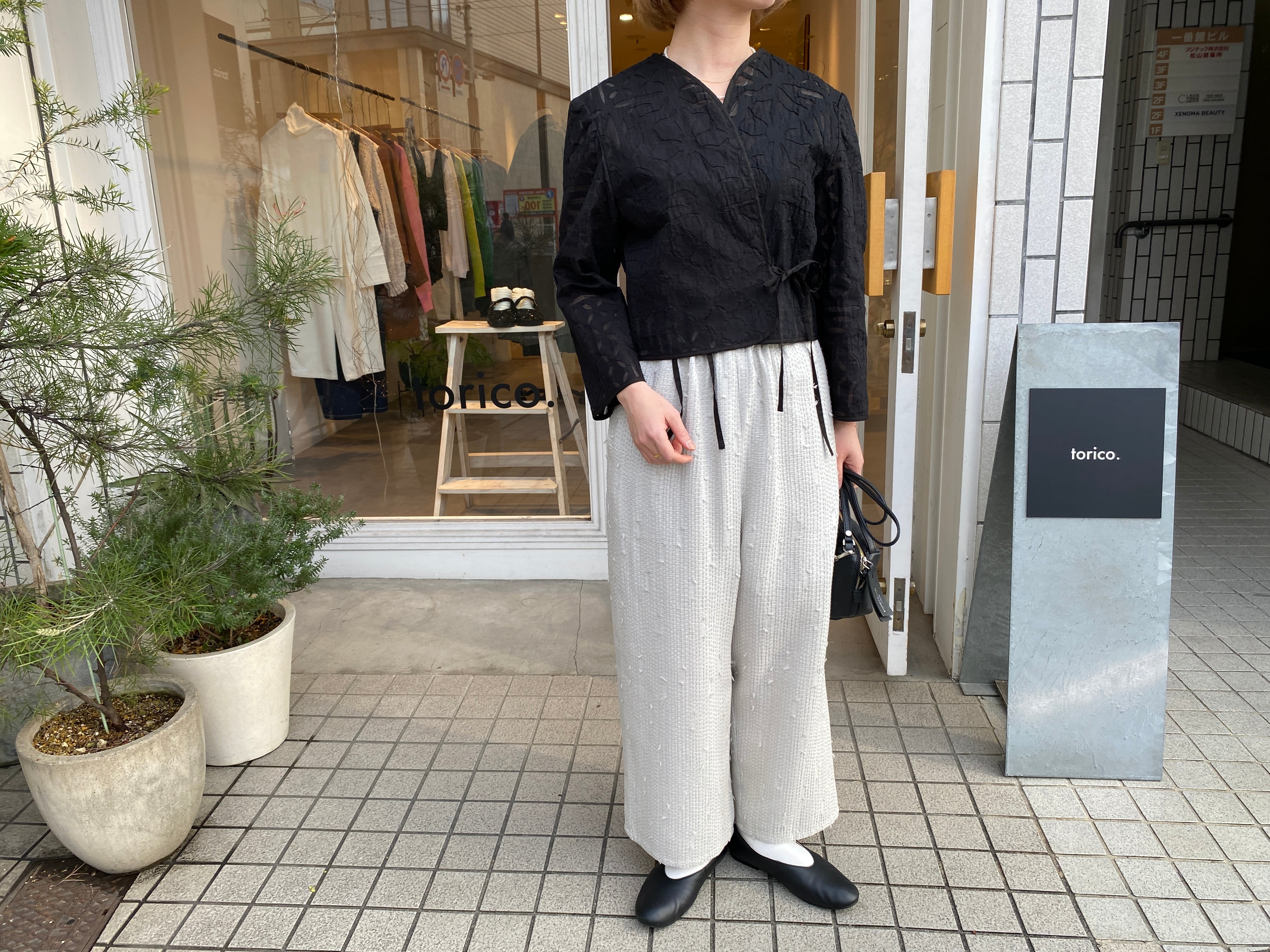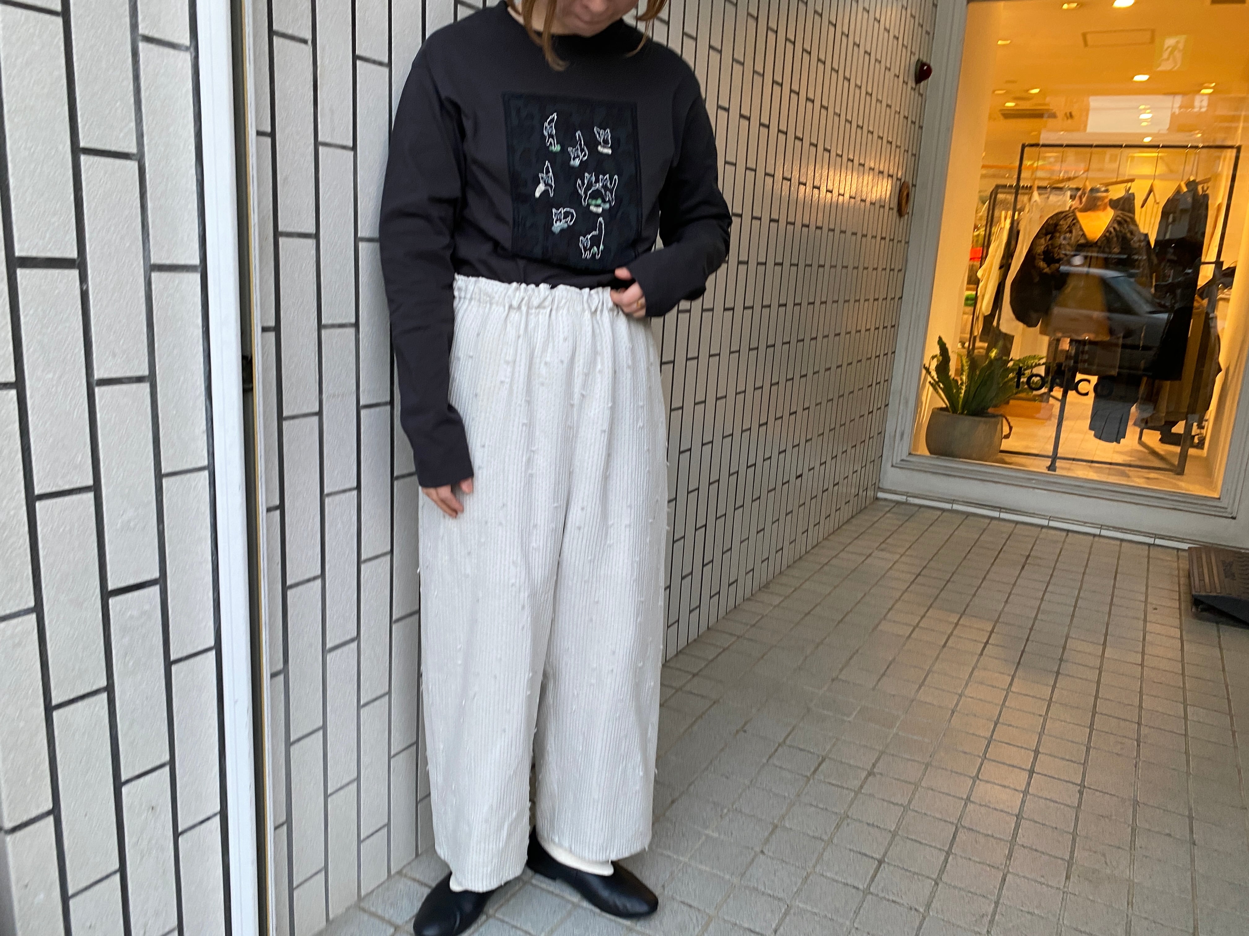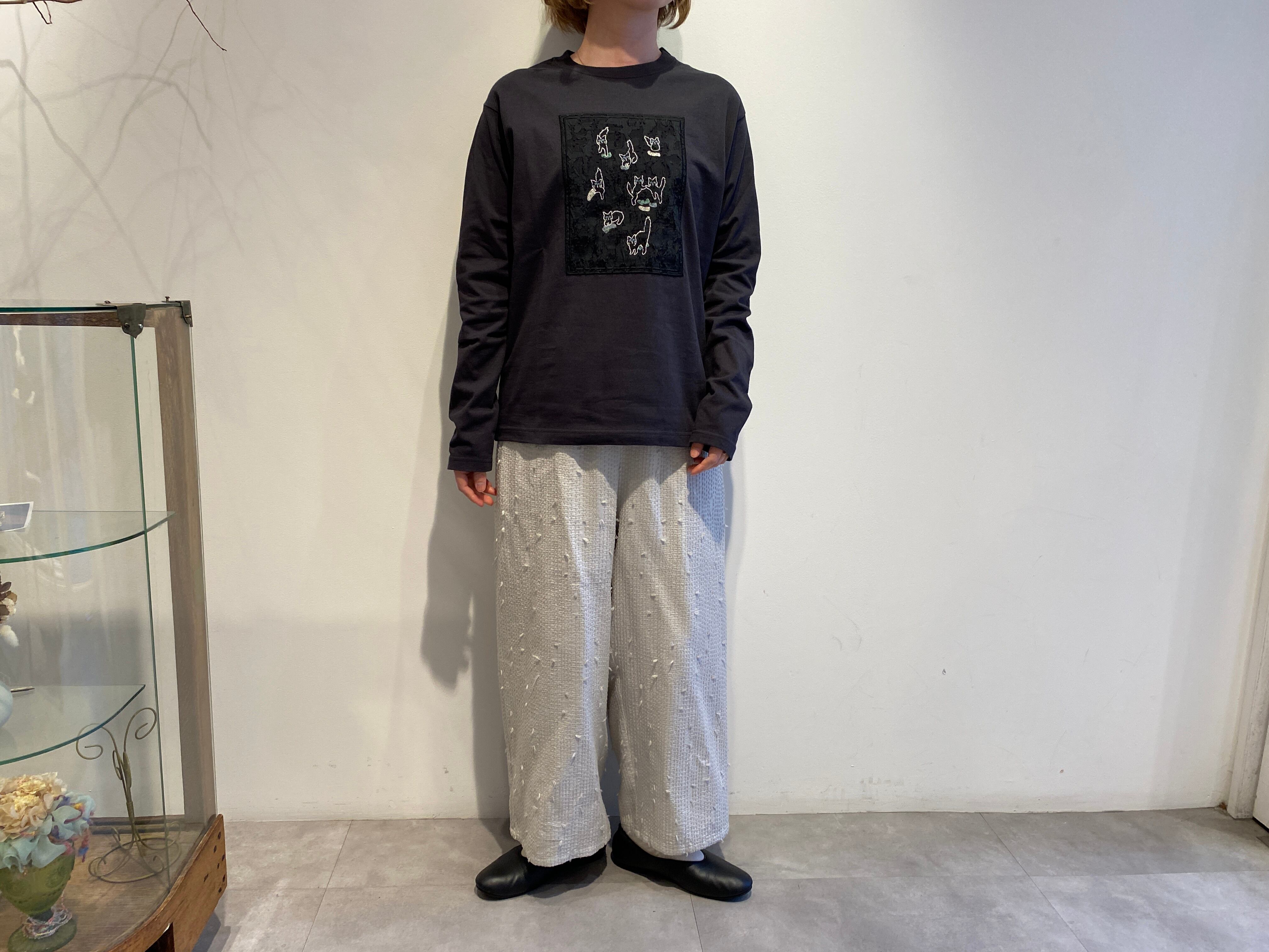qiri/sashiko jacquard ギャザーワイドパンツ