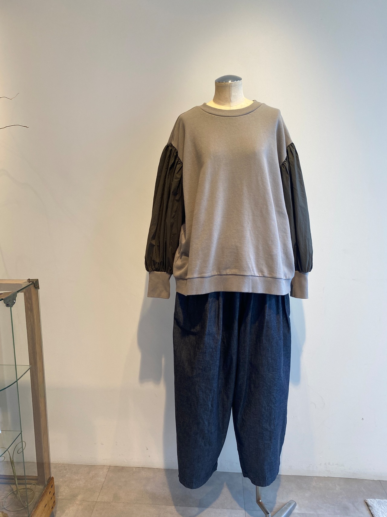 袖のボリュームを活かしたサロペットインにも