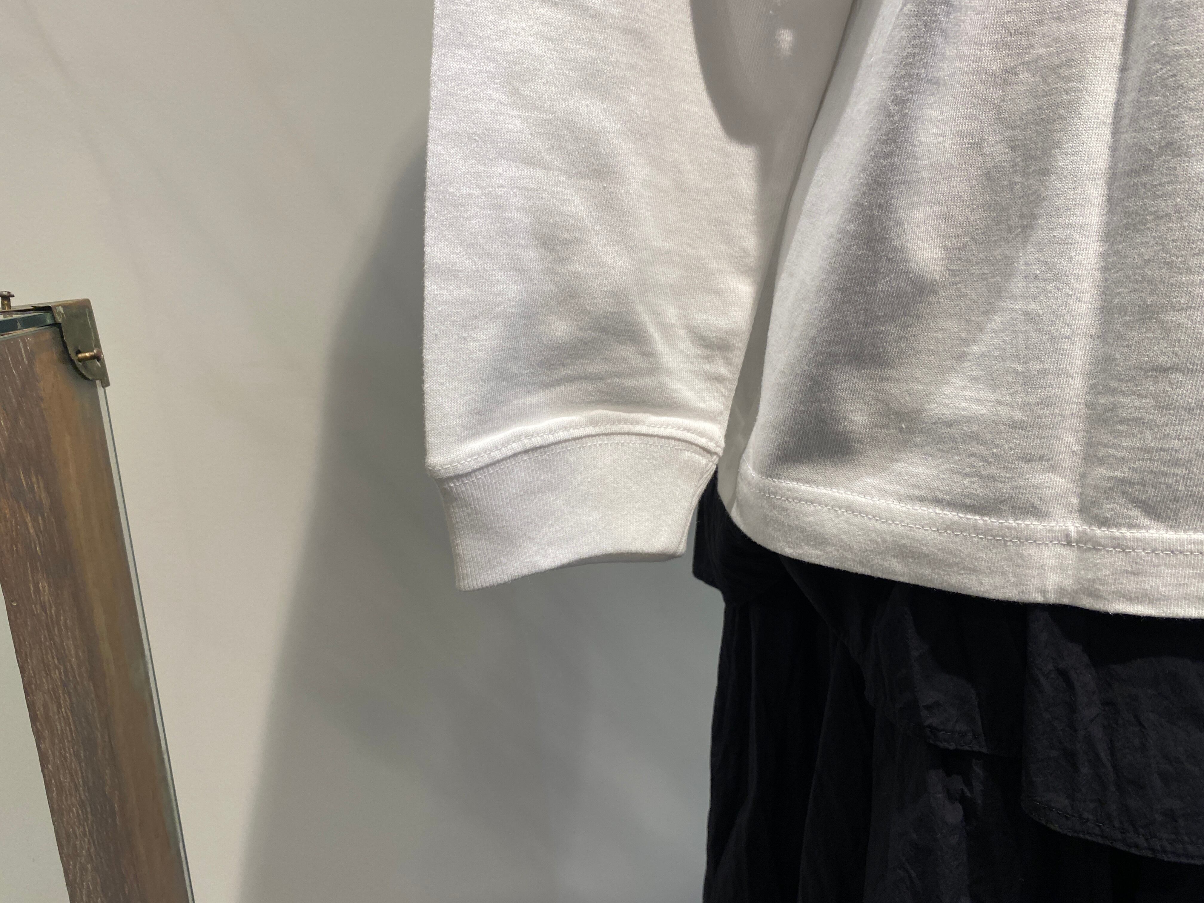 セミコーマ糸を使い、光沢感のある肌触りなめらかな生地を使用。アメリカナイズされた身幅広めのボックスシルエット。