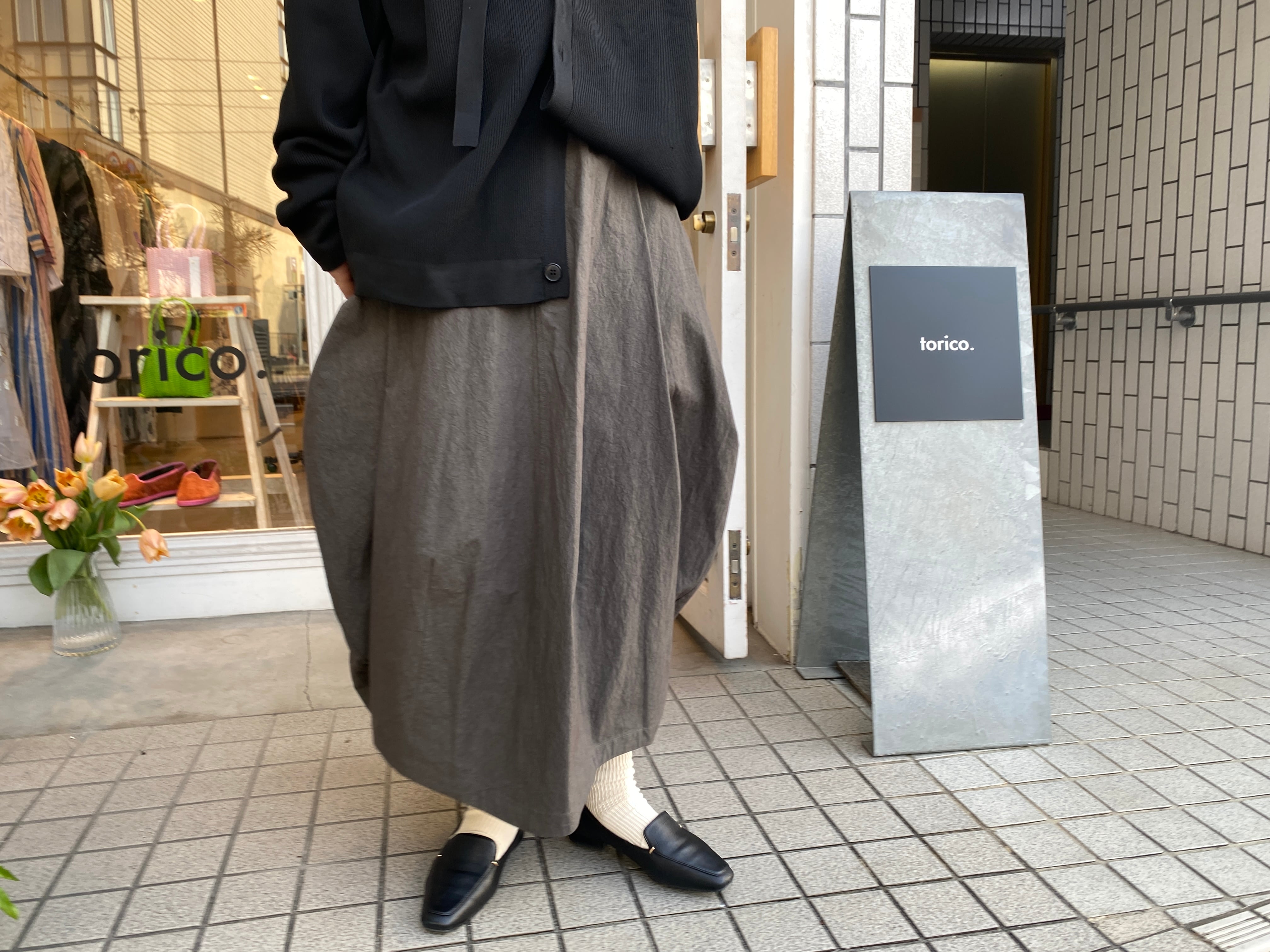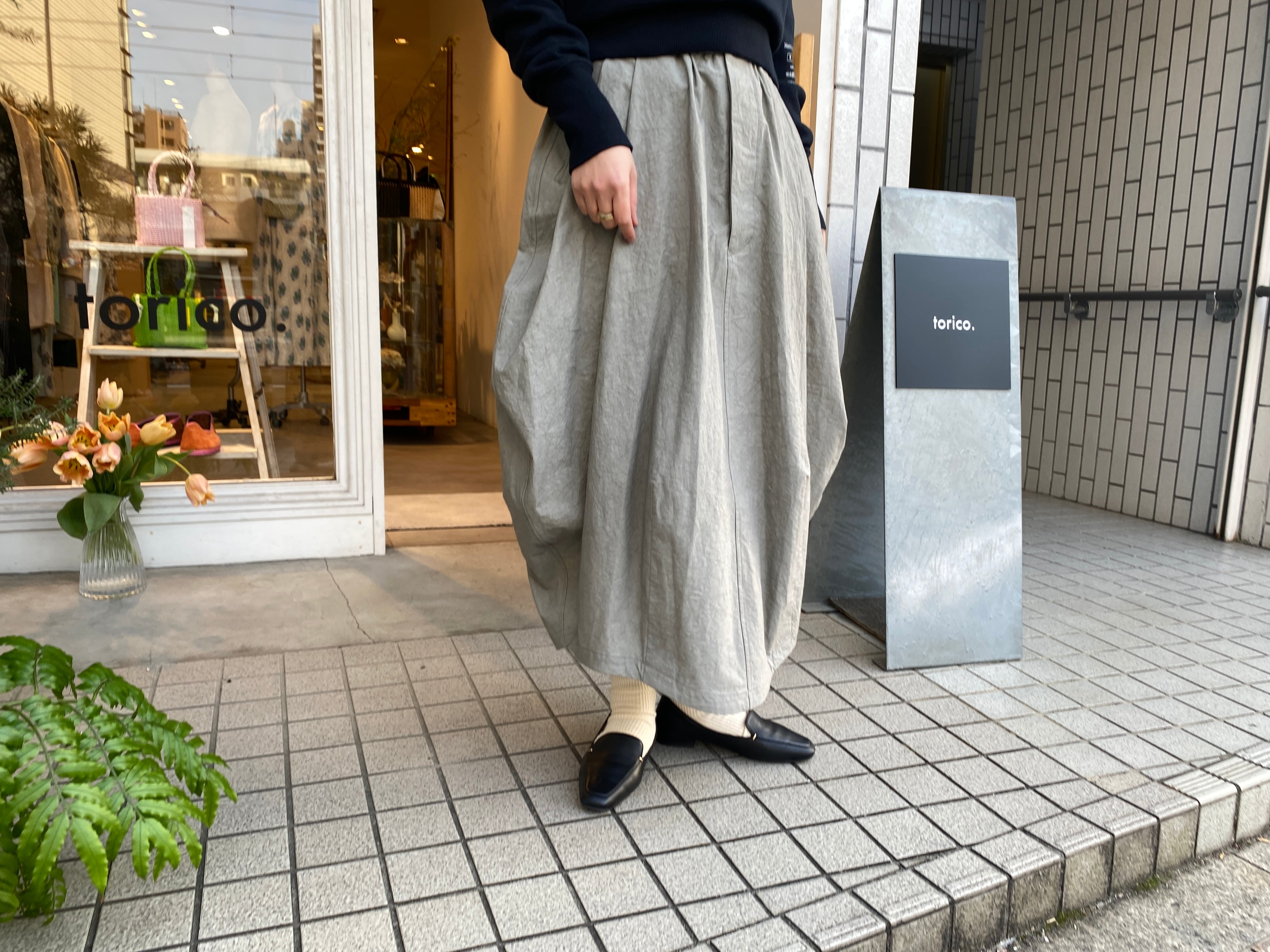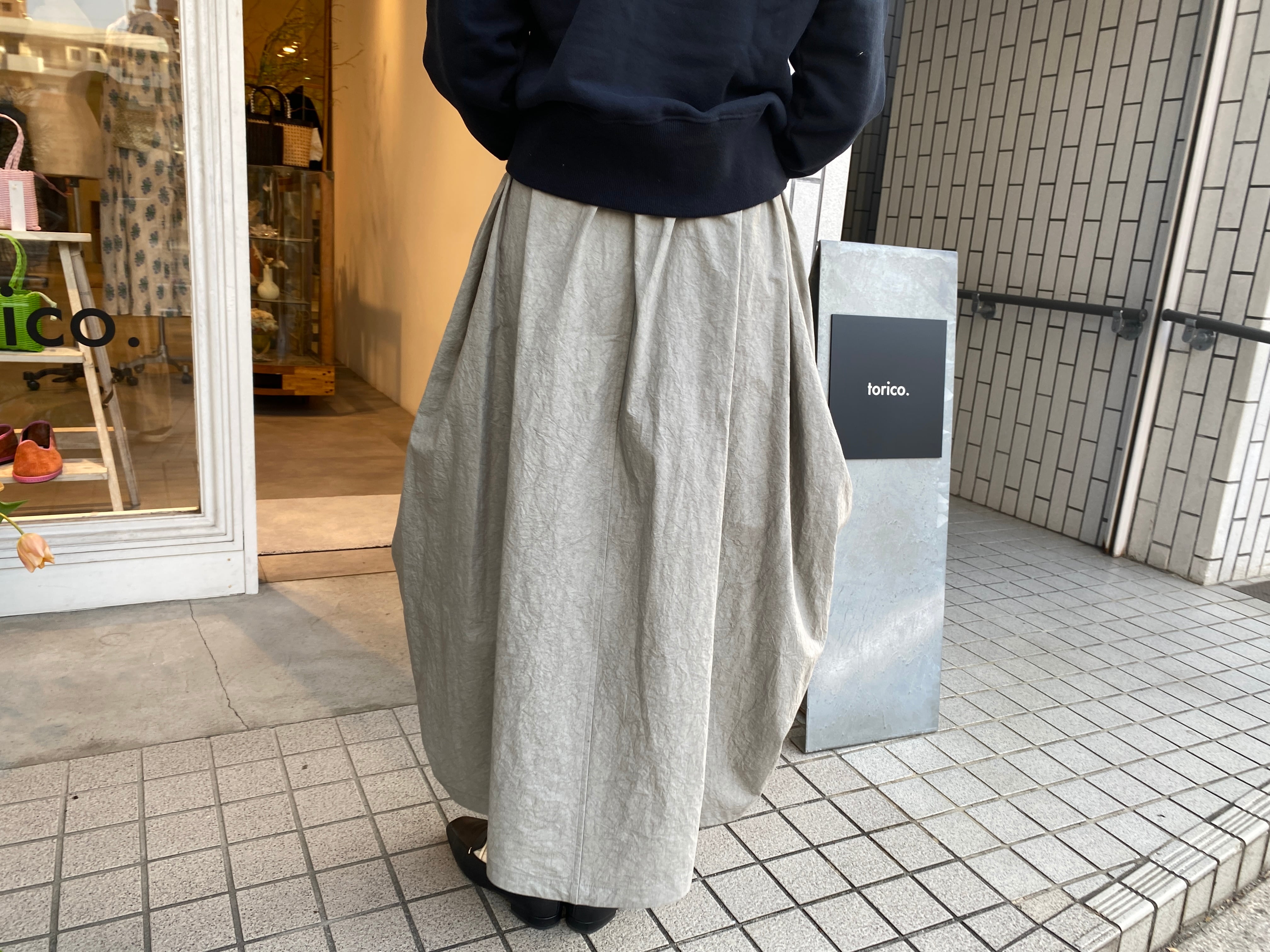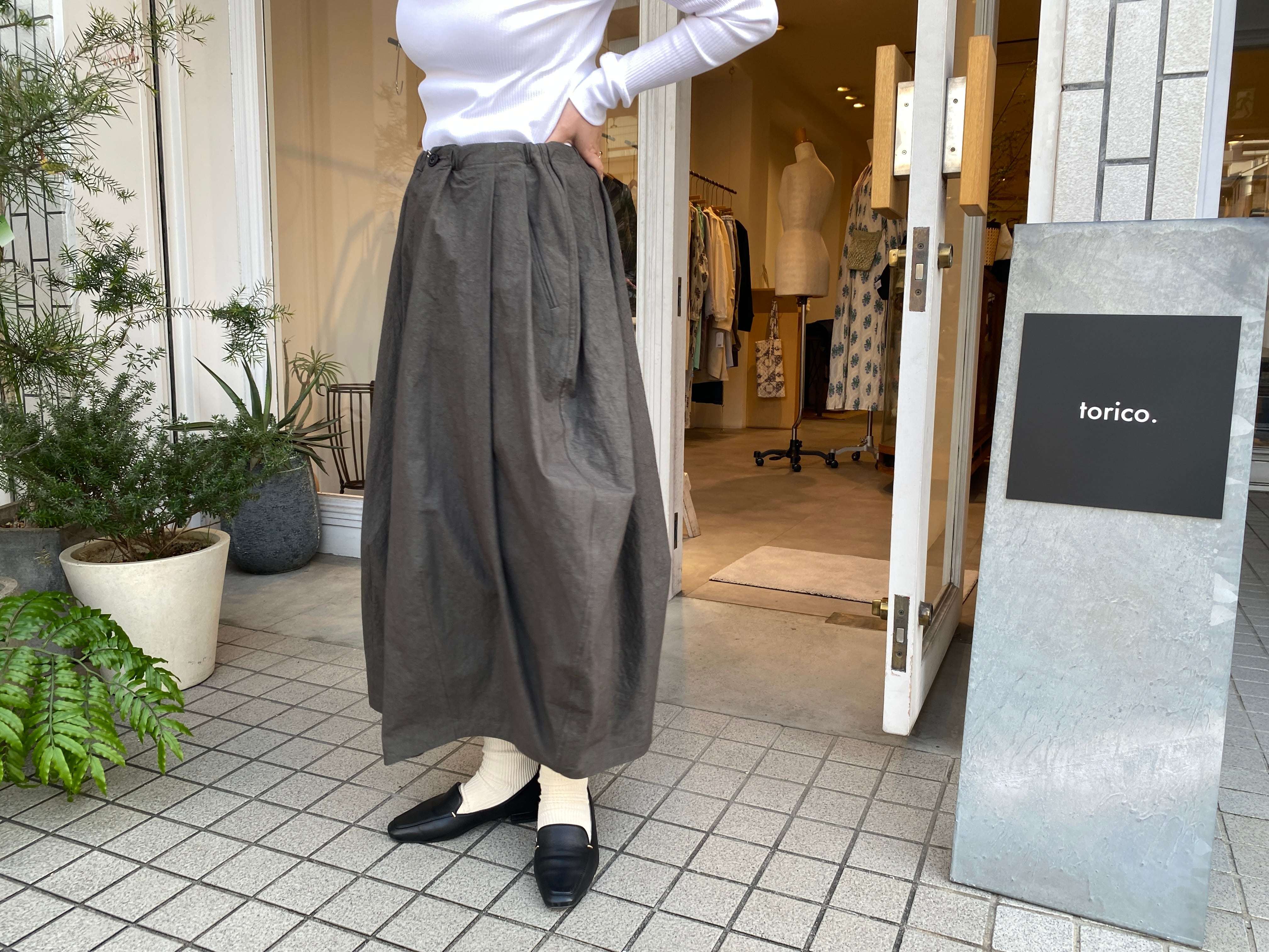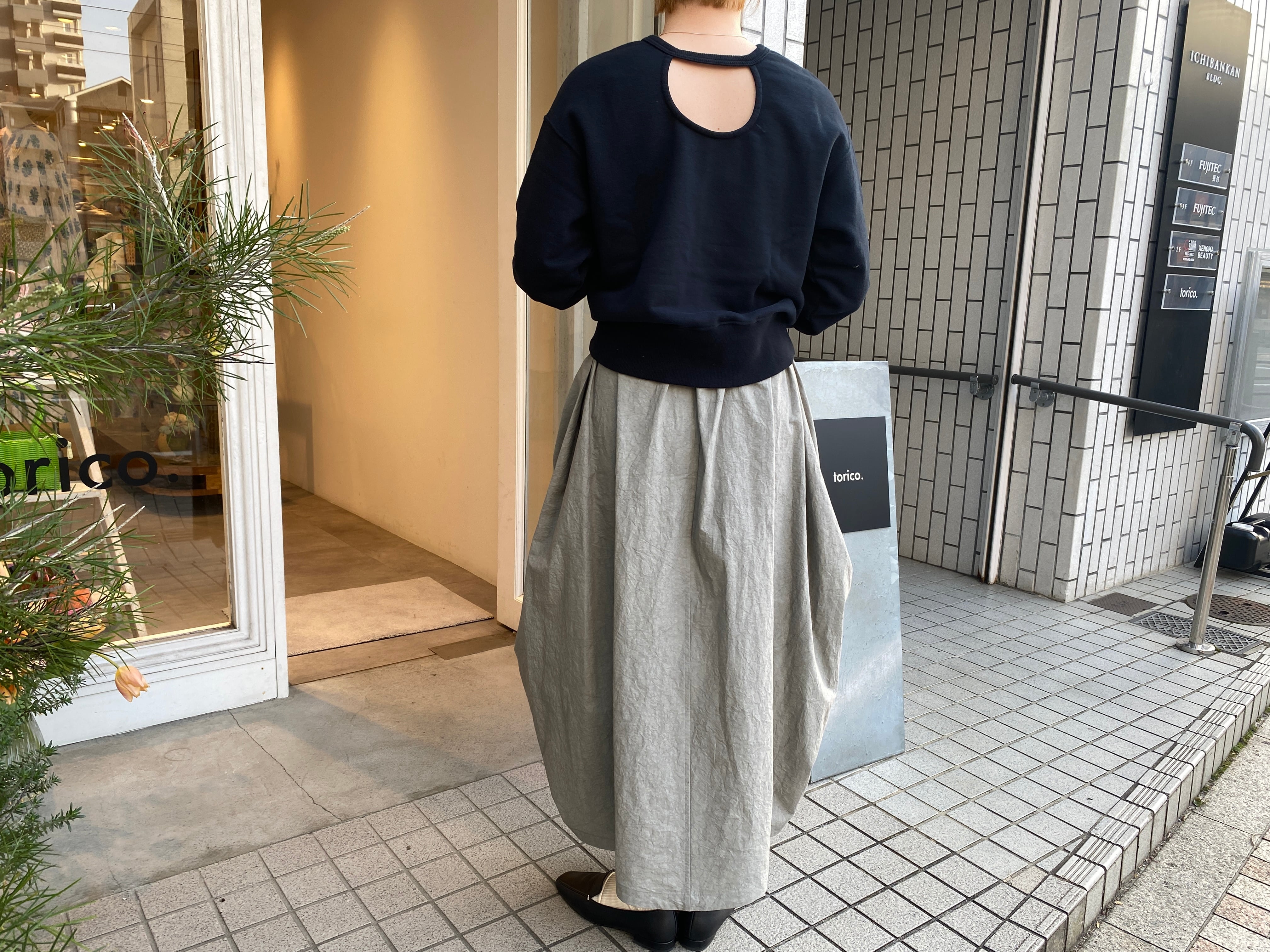 個性的なバランスのスカートが映える