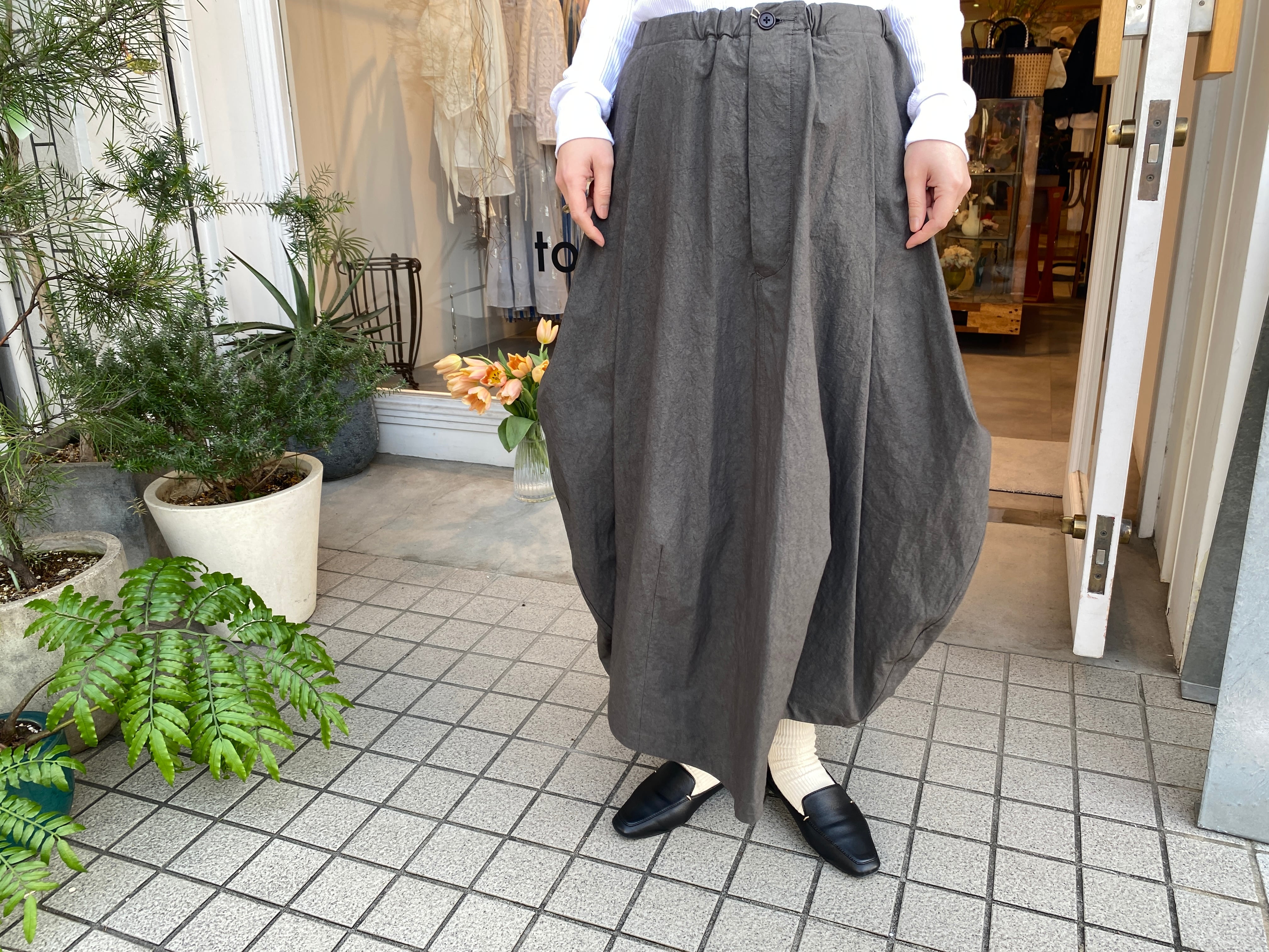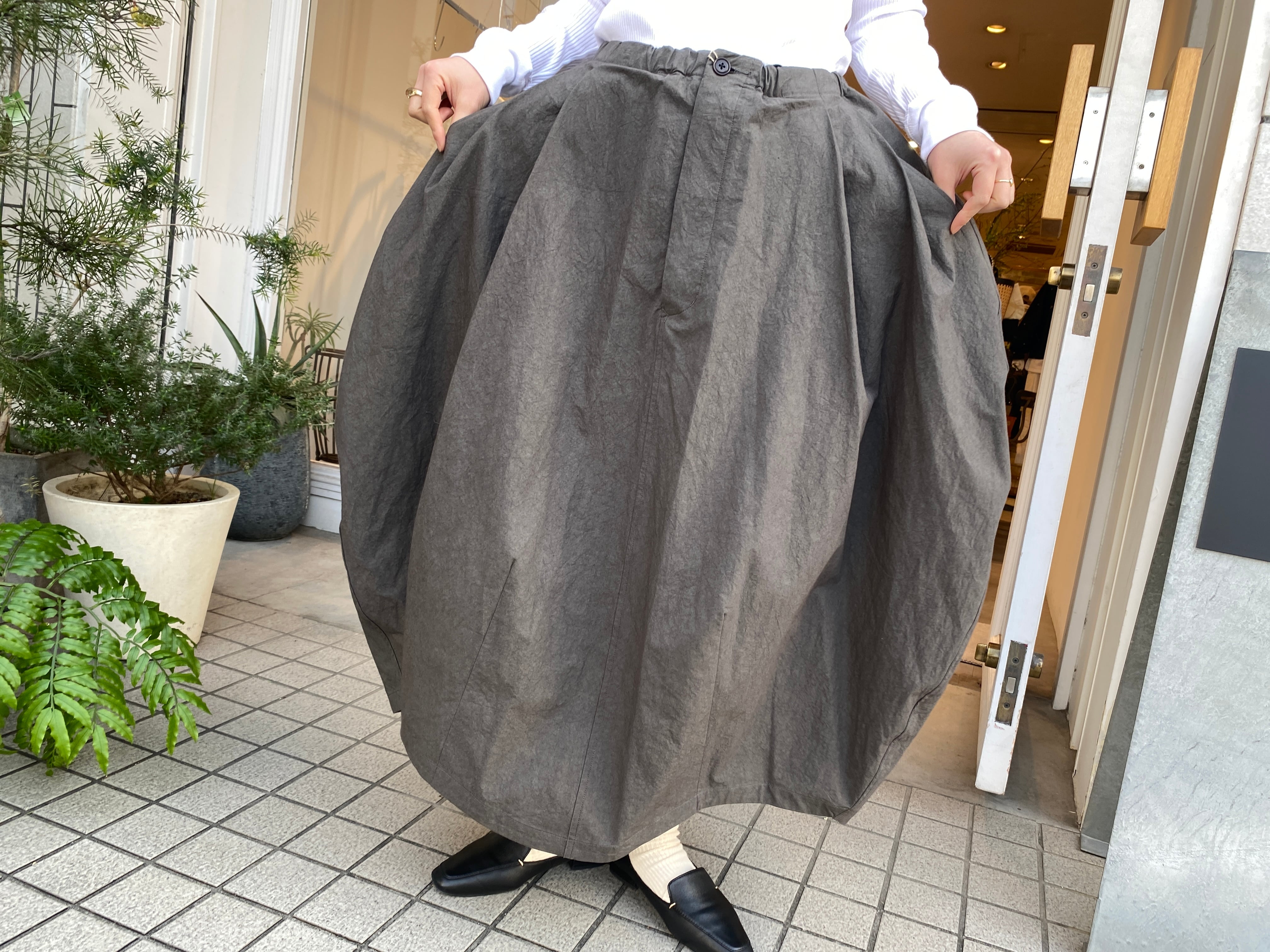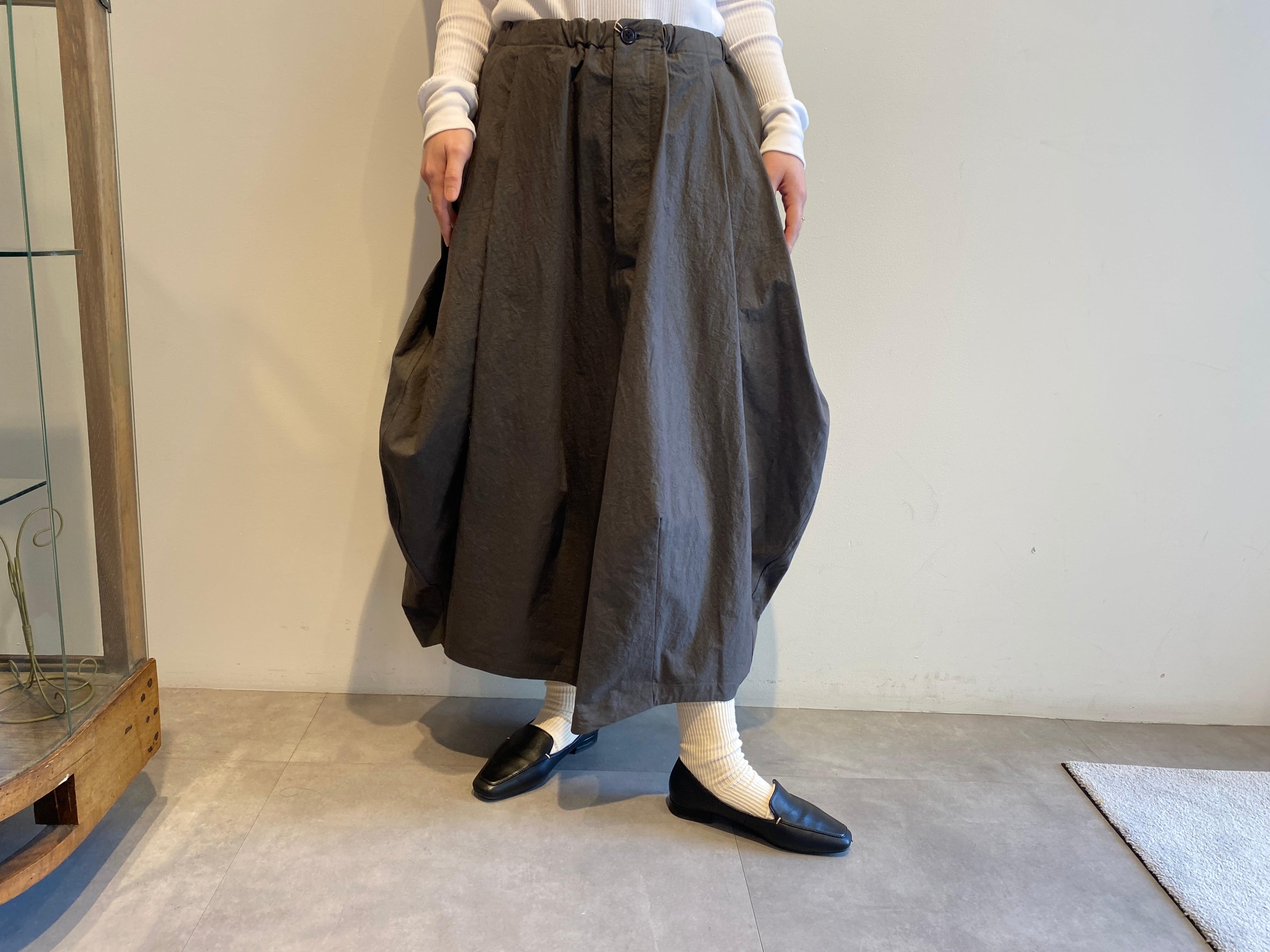 ポケットとバルーンシルエットが特徴のスカート。