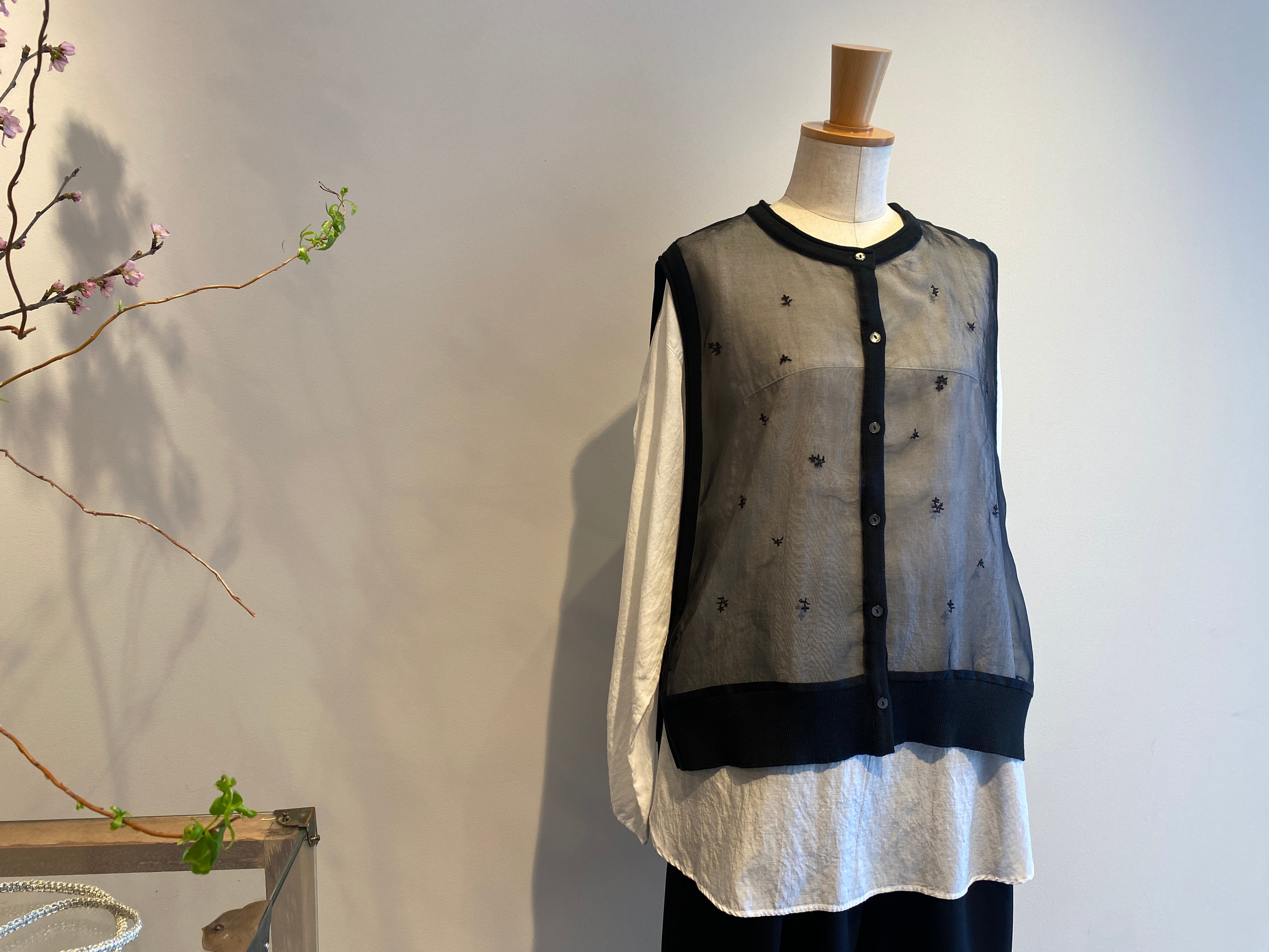 ・シルクオーガンジー使用(身頃部分、前身頃のみ小花柄刺繍入り)