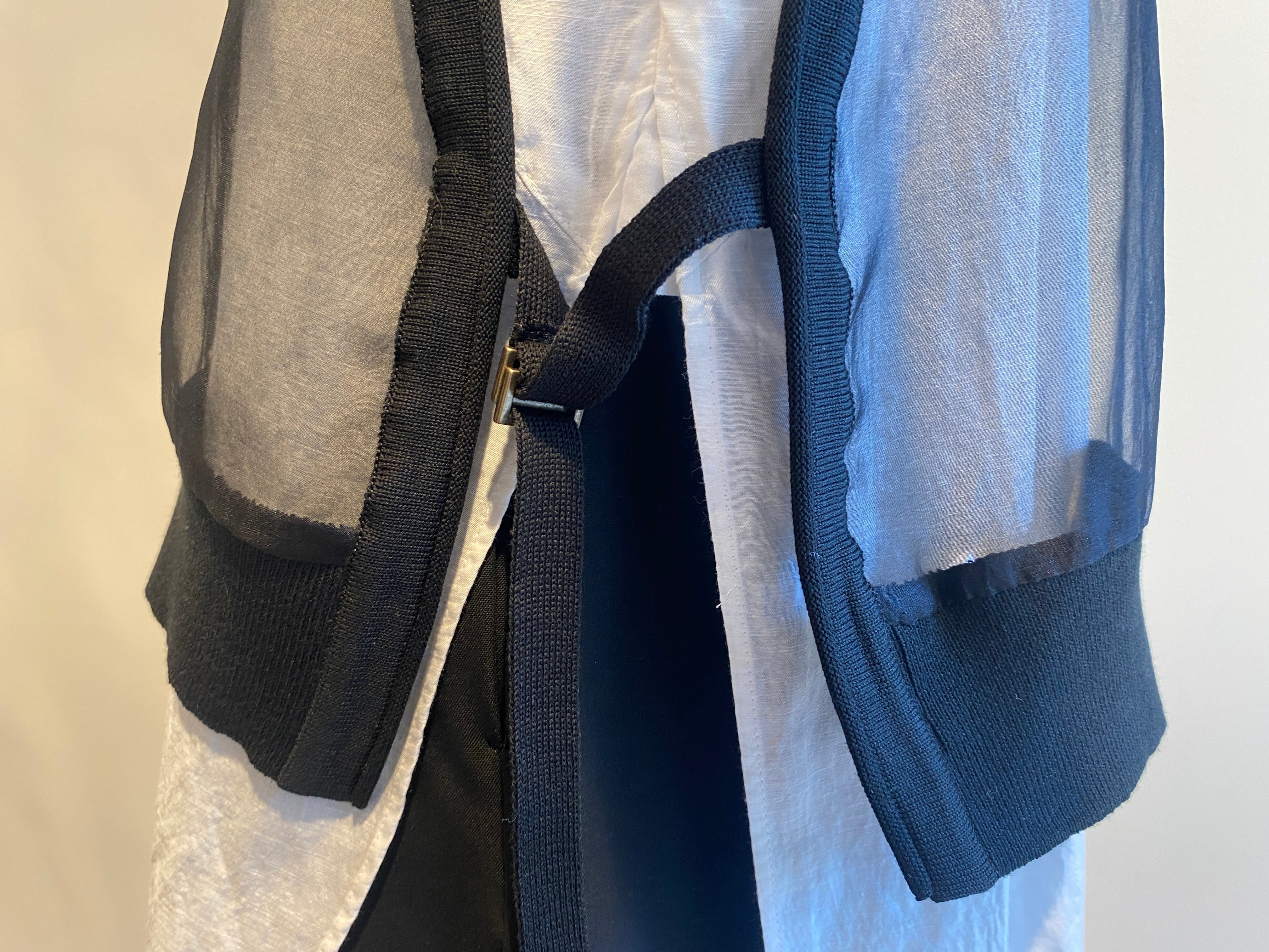 ・ニット部分使い(襟ぐり、前立て、裾・アームホールリブ、両脇ベルト)