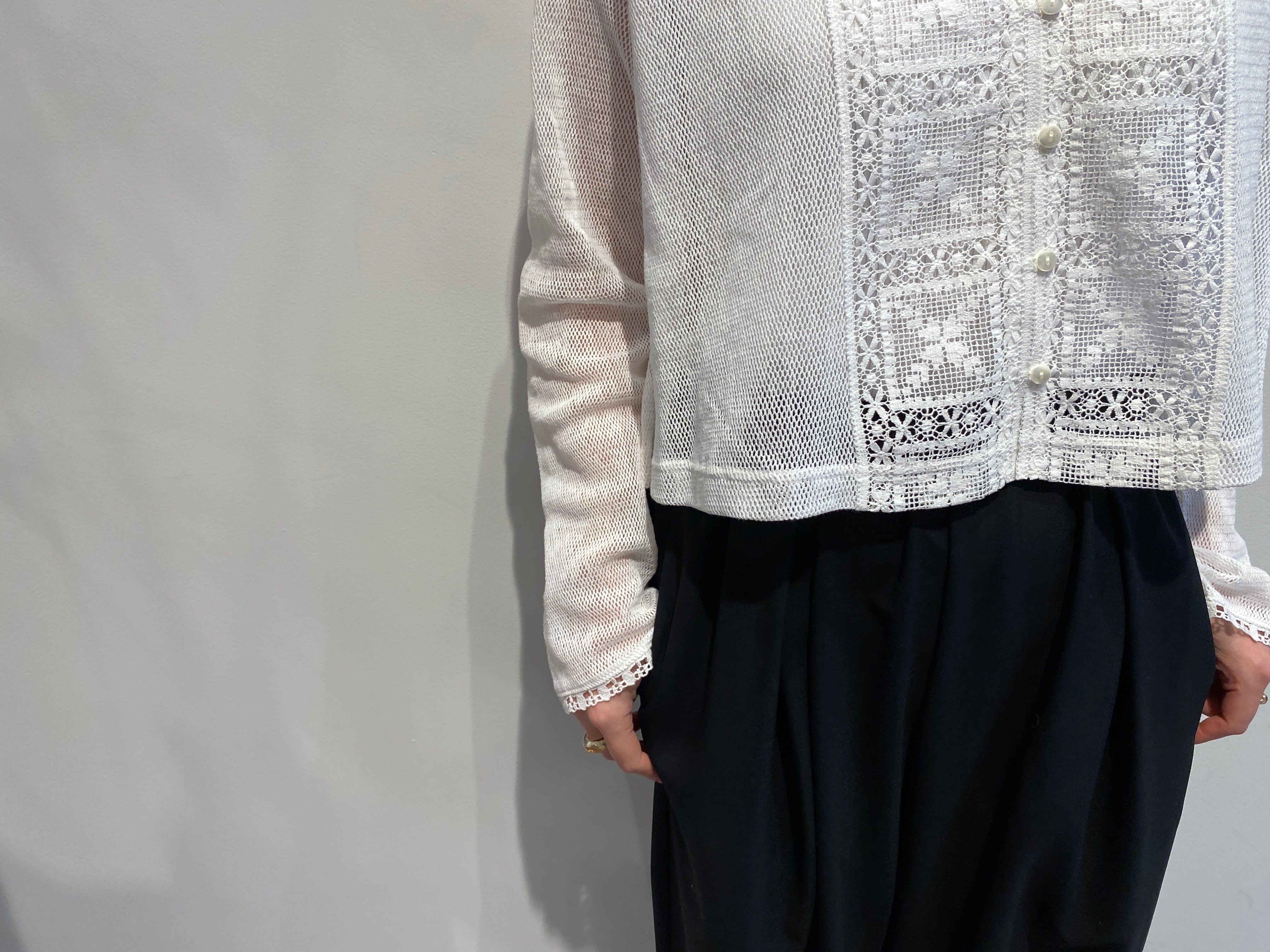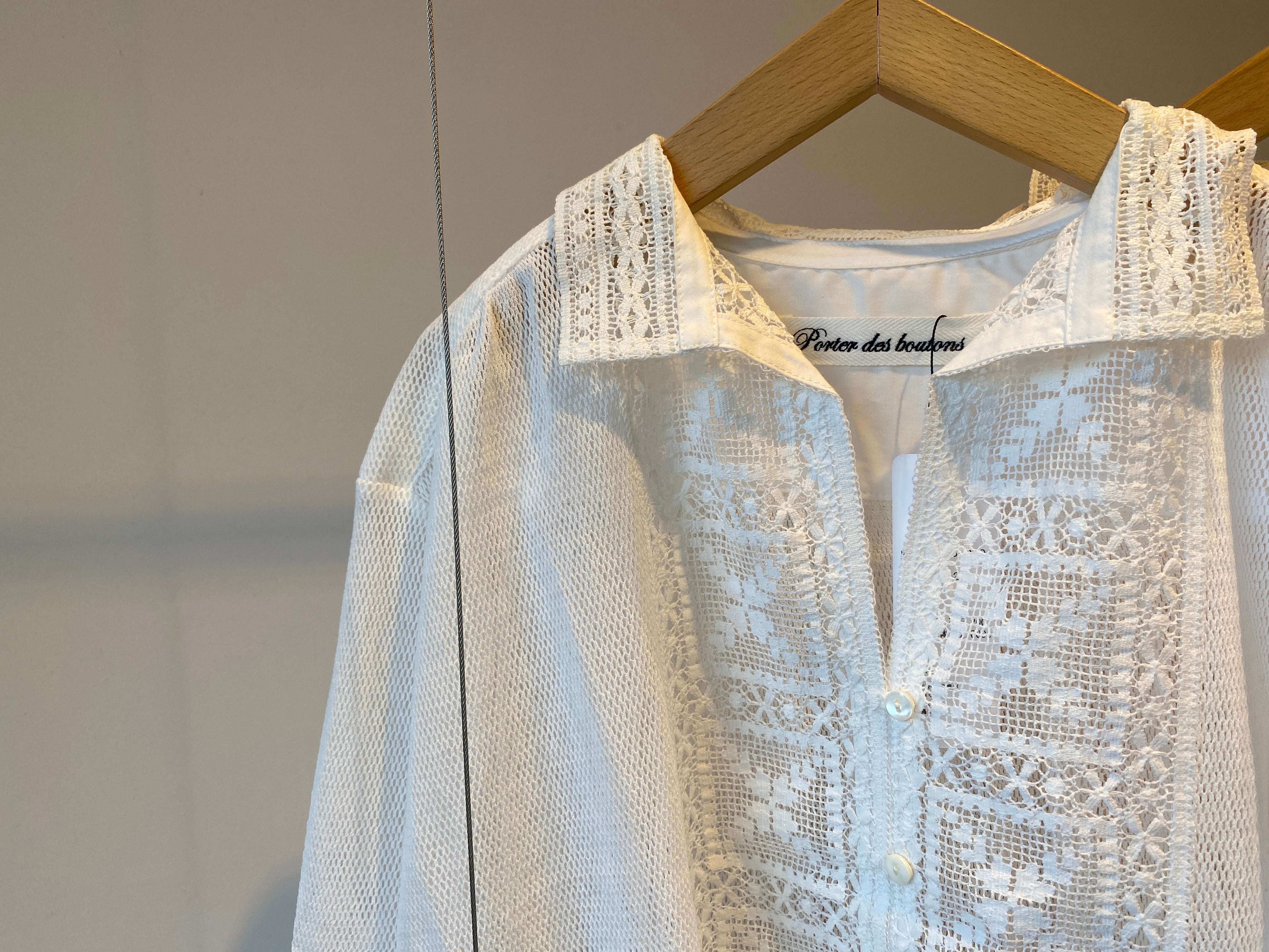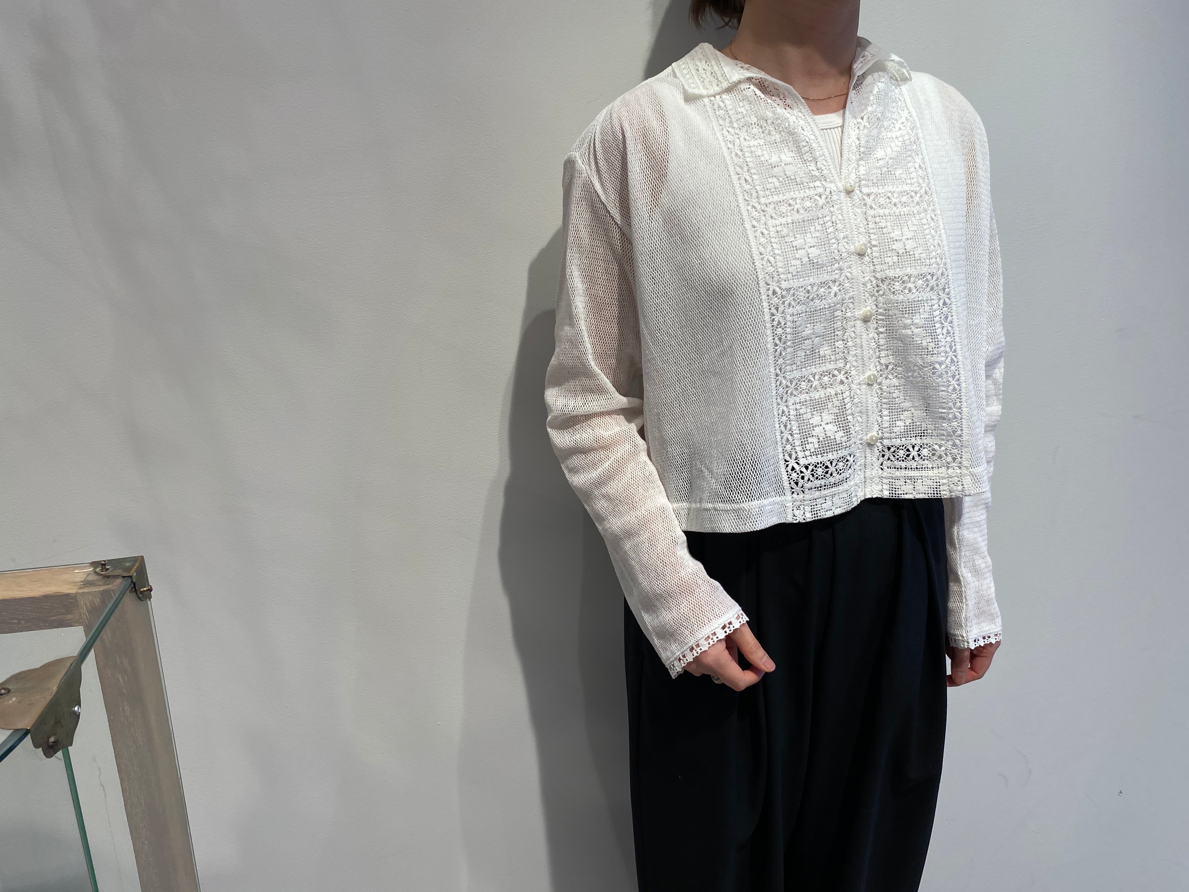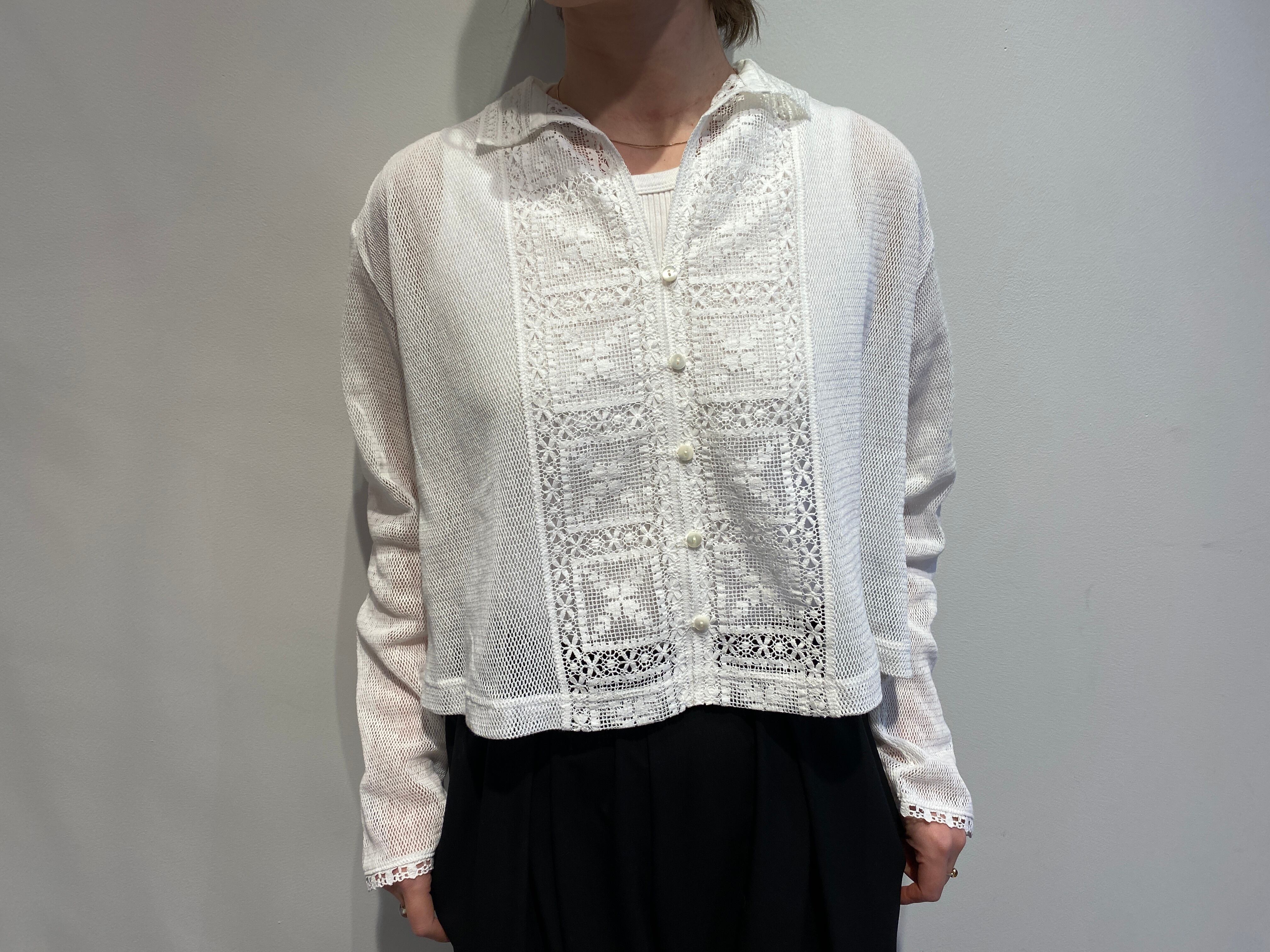 ビンテージのような趣きのあるレースが目を引くブラウス