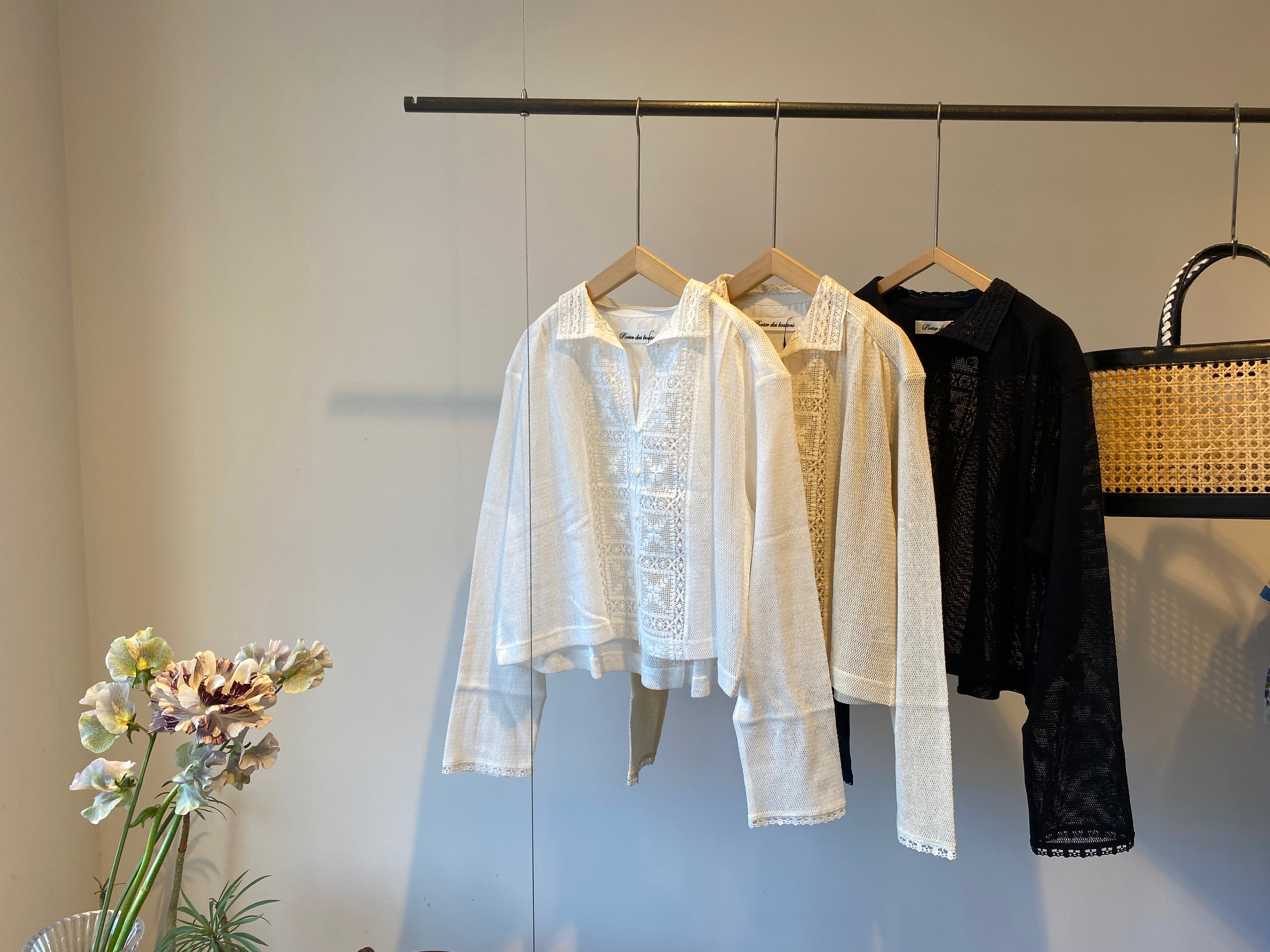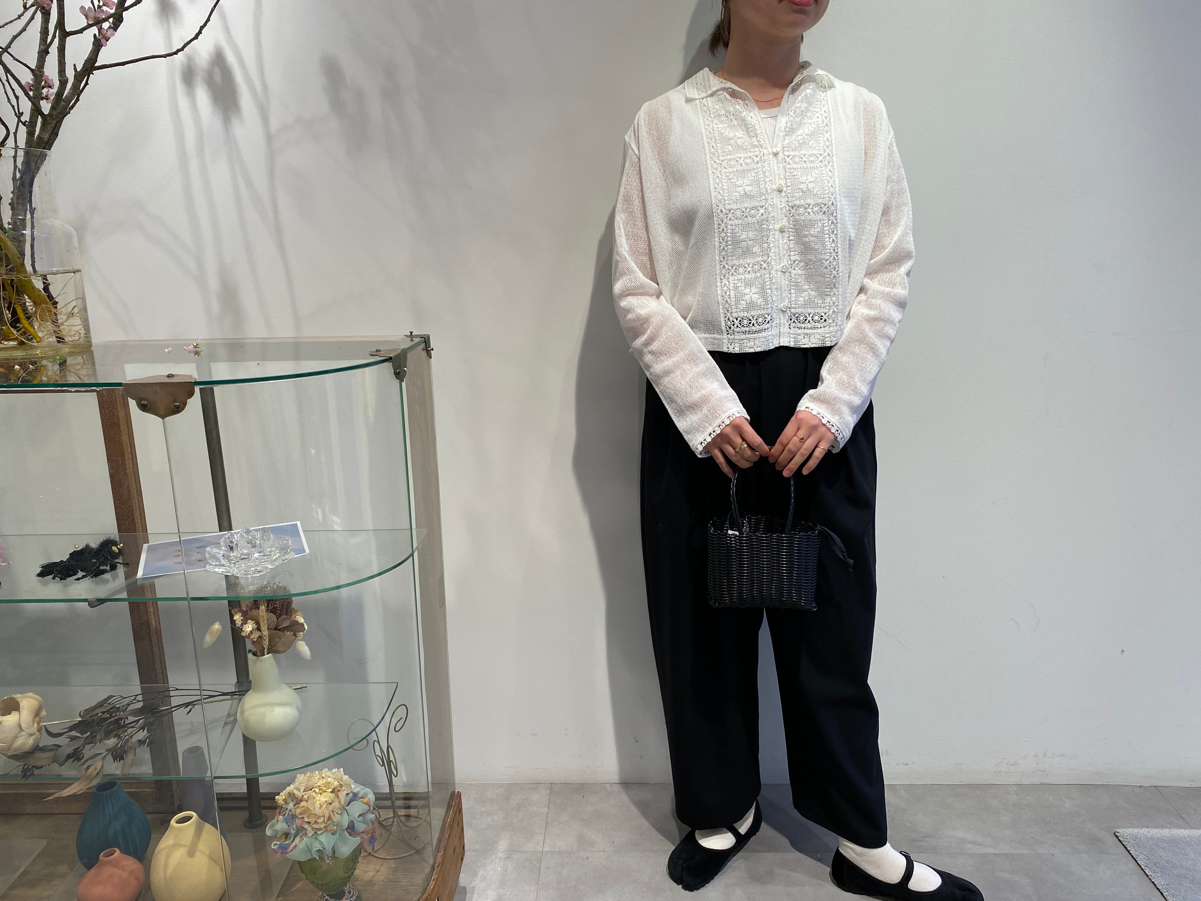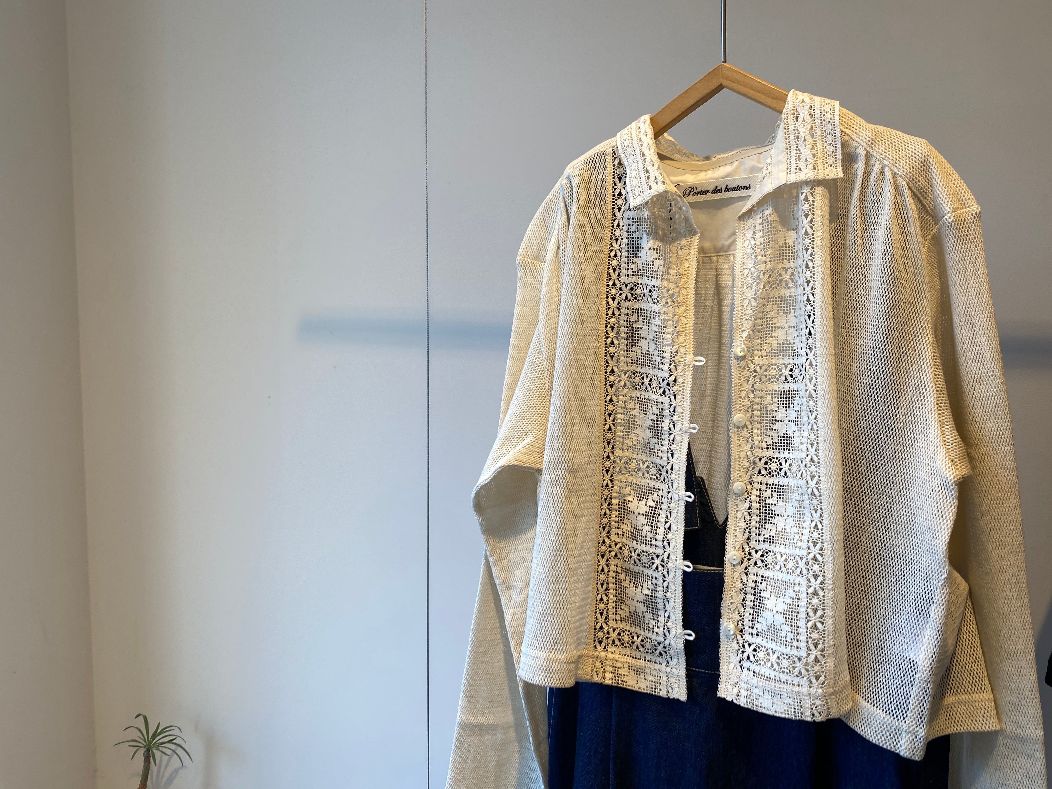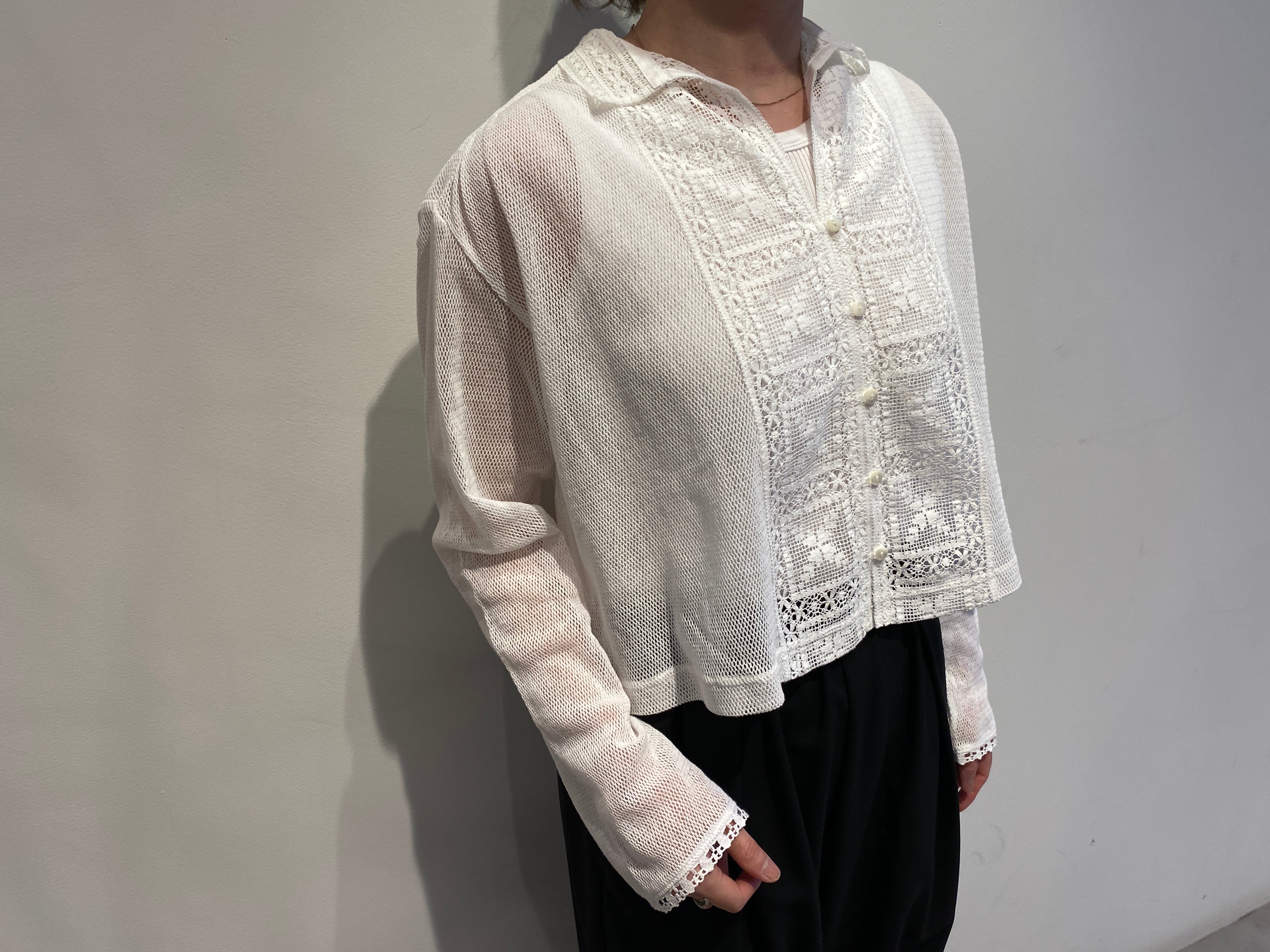 ビンテージのような趣きのあるレースが目を引くブラウス