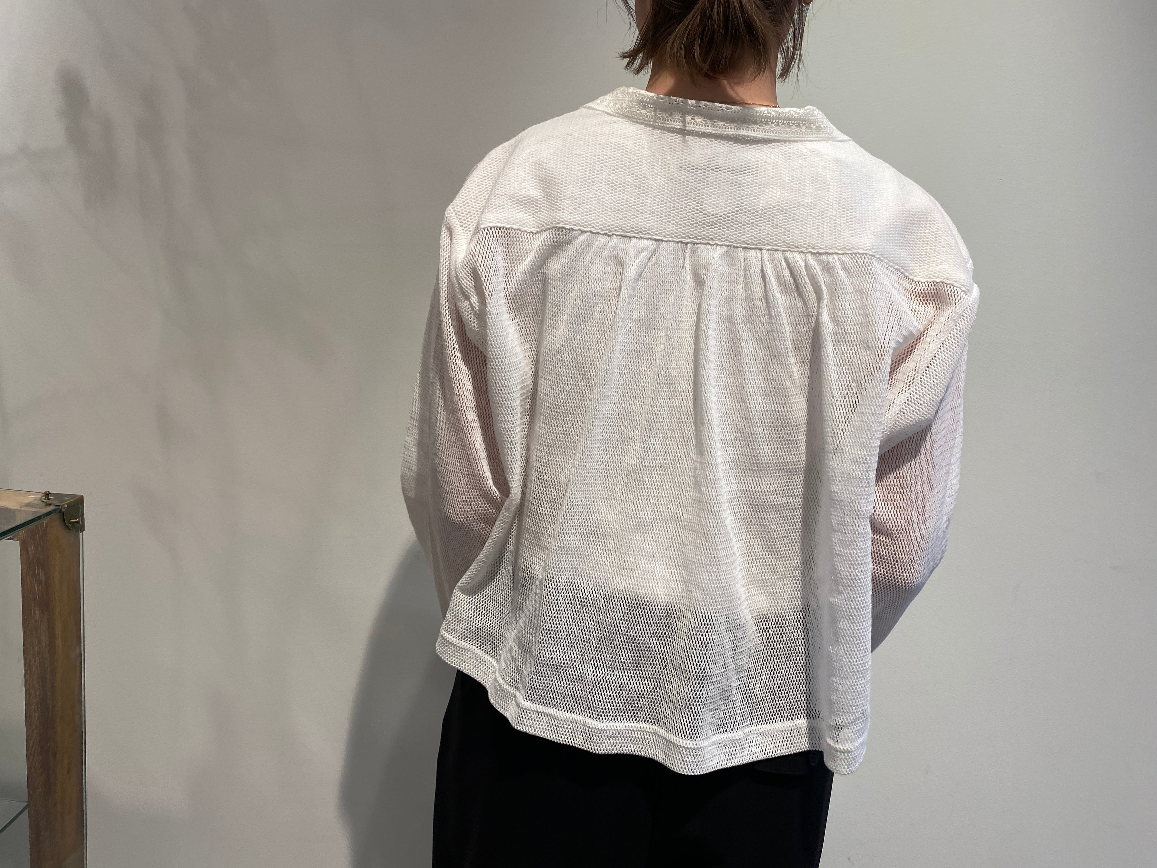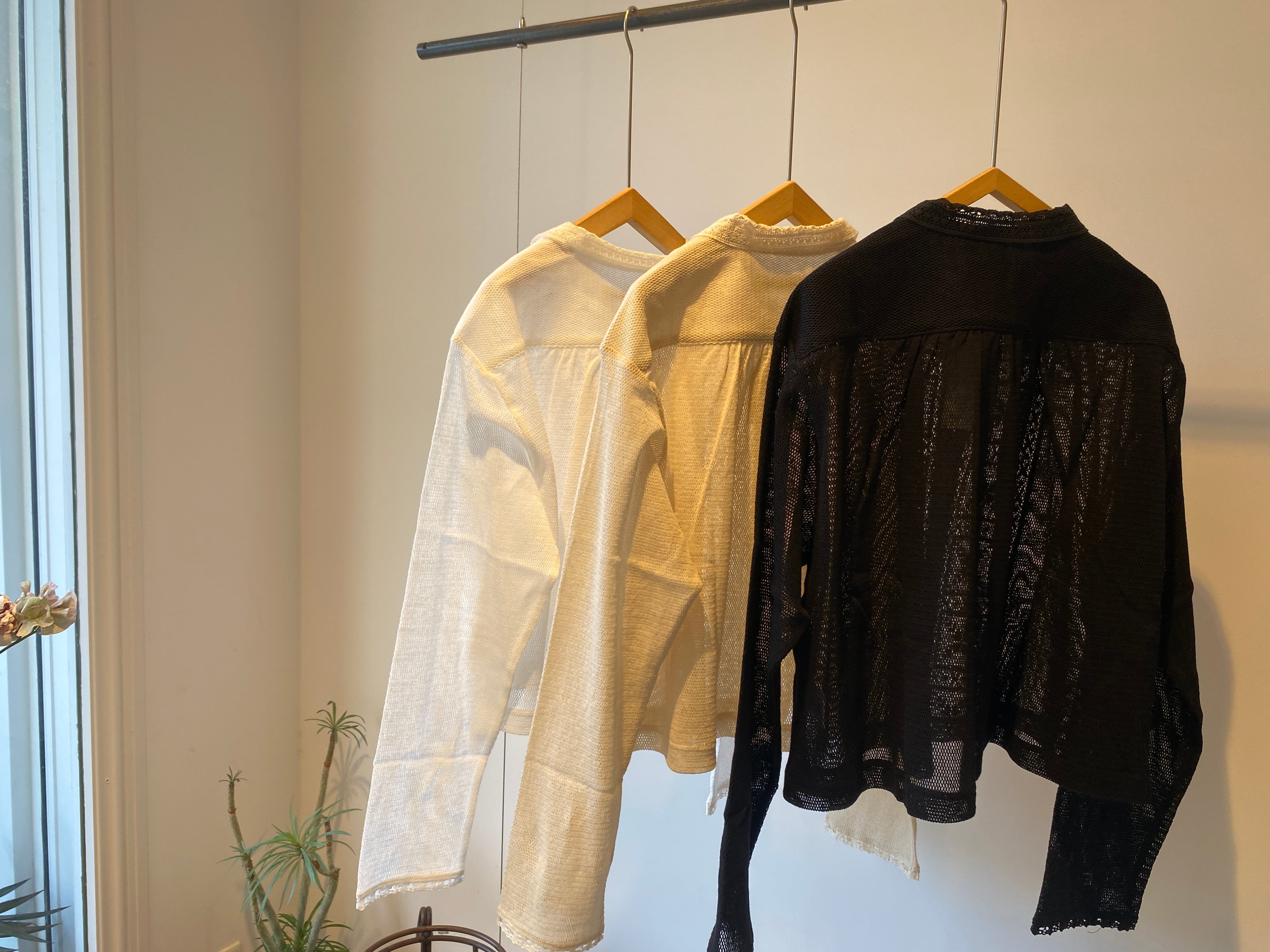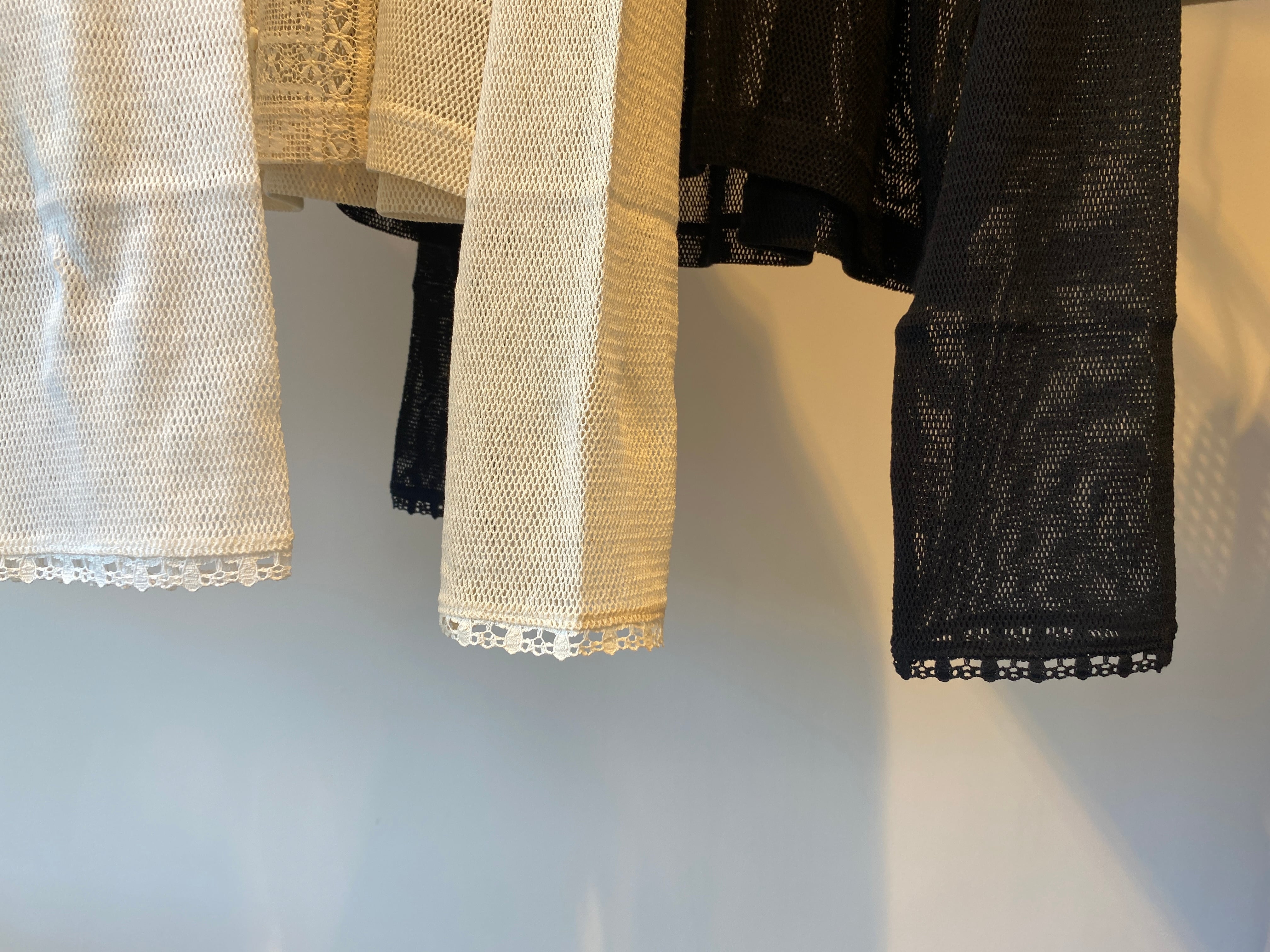 空紡糸を編み上げ、シャリ感のあるメッシュ生地を作りました