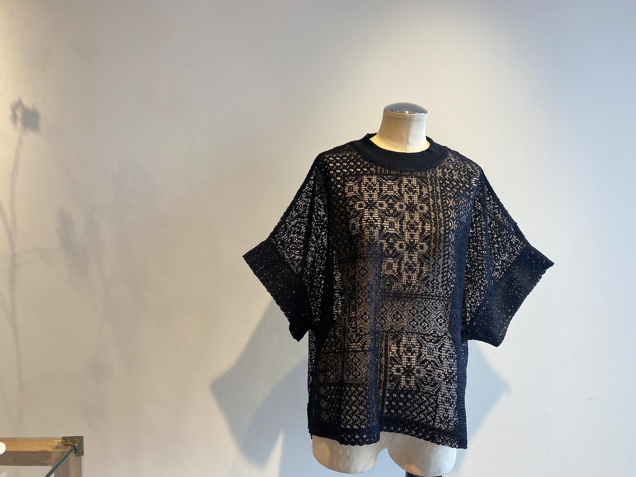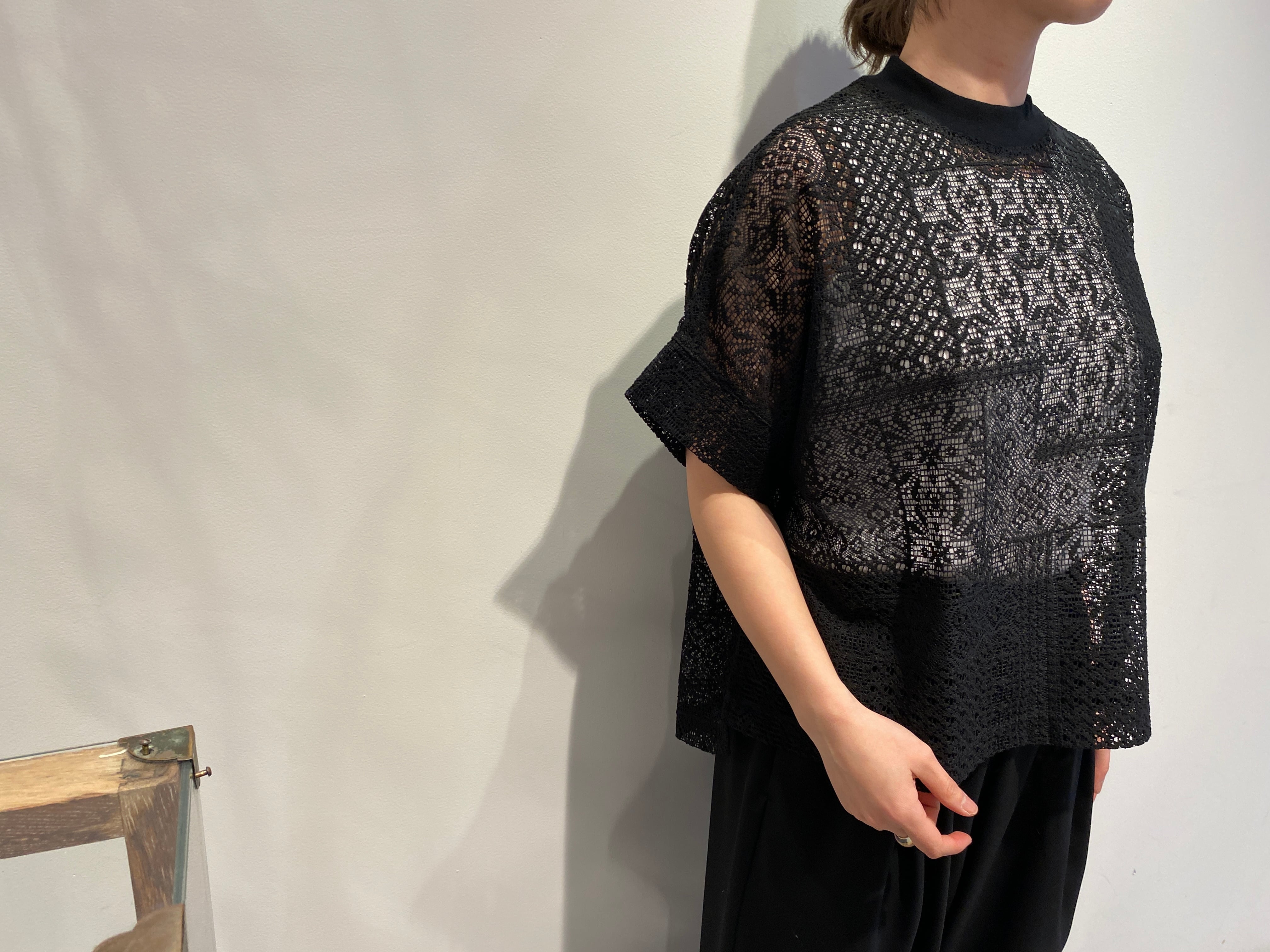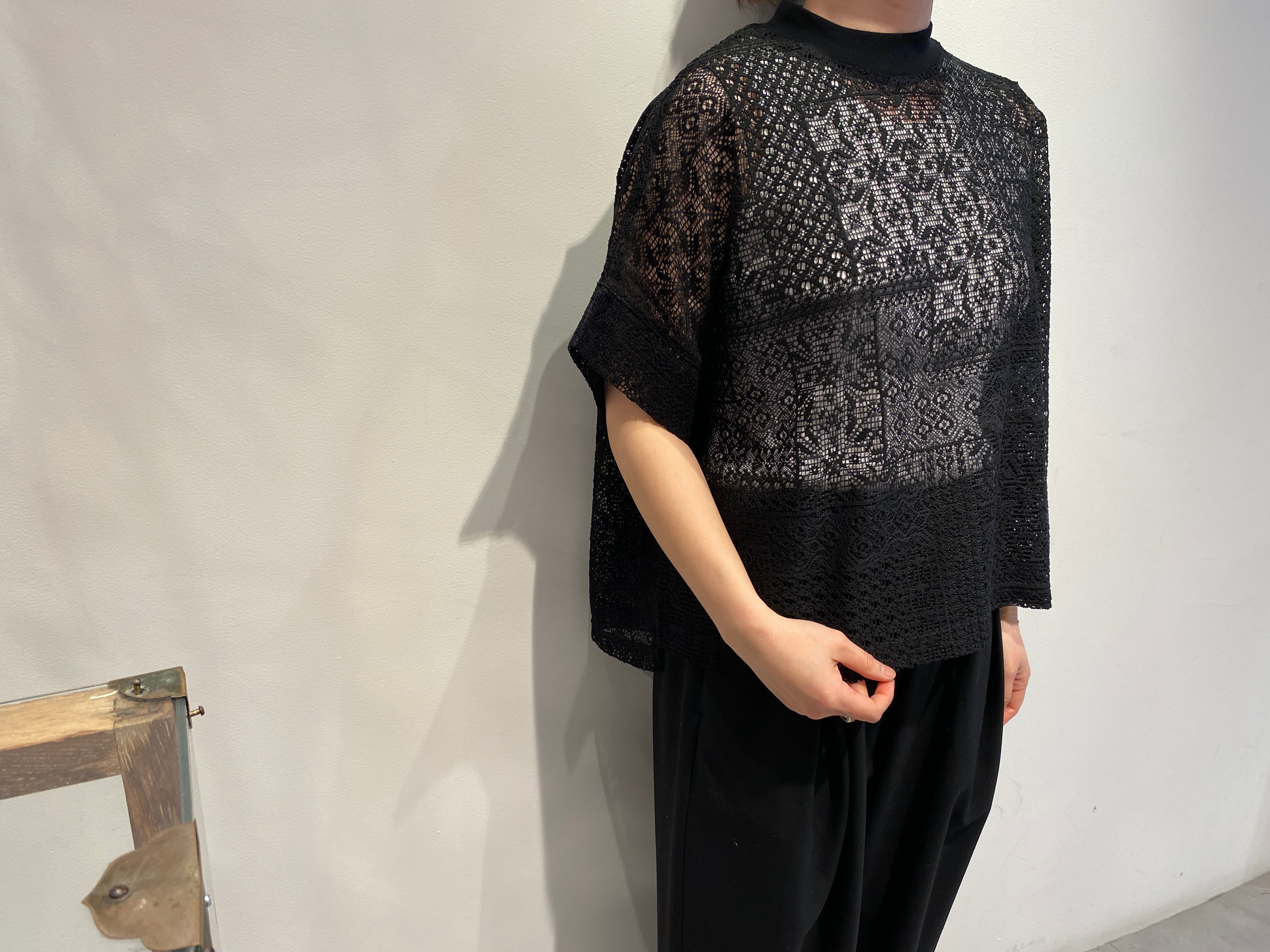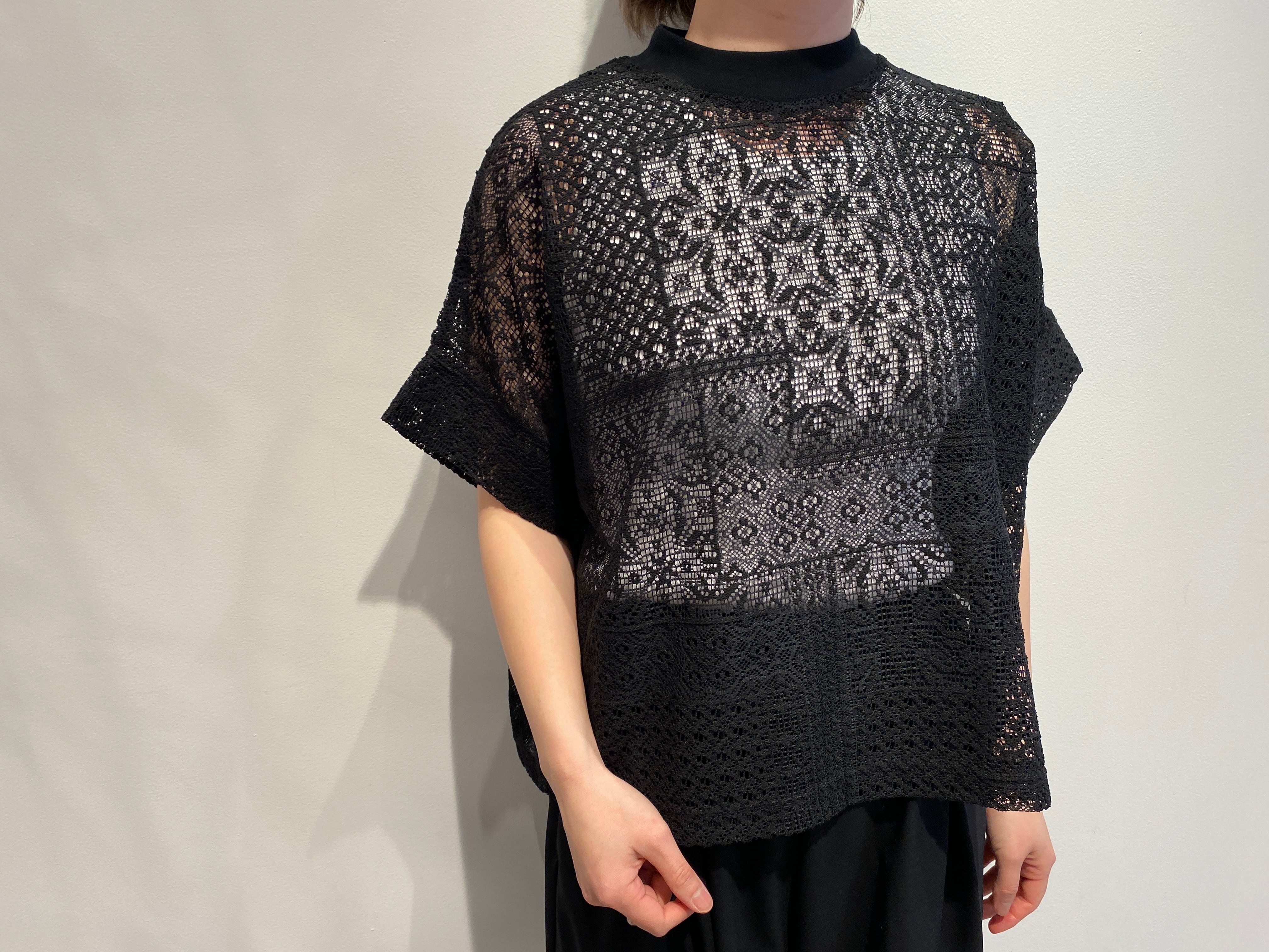 UNIVERSAL TISSU/パッチワークレース モックネックドルマンT