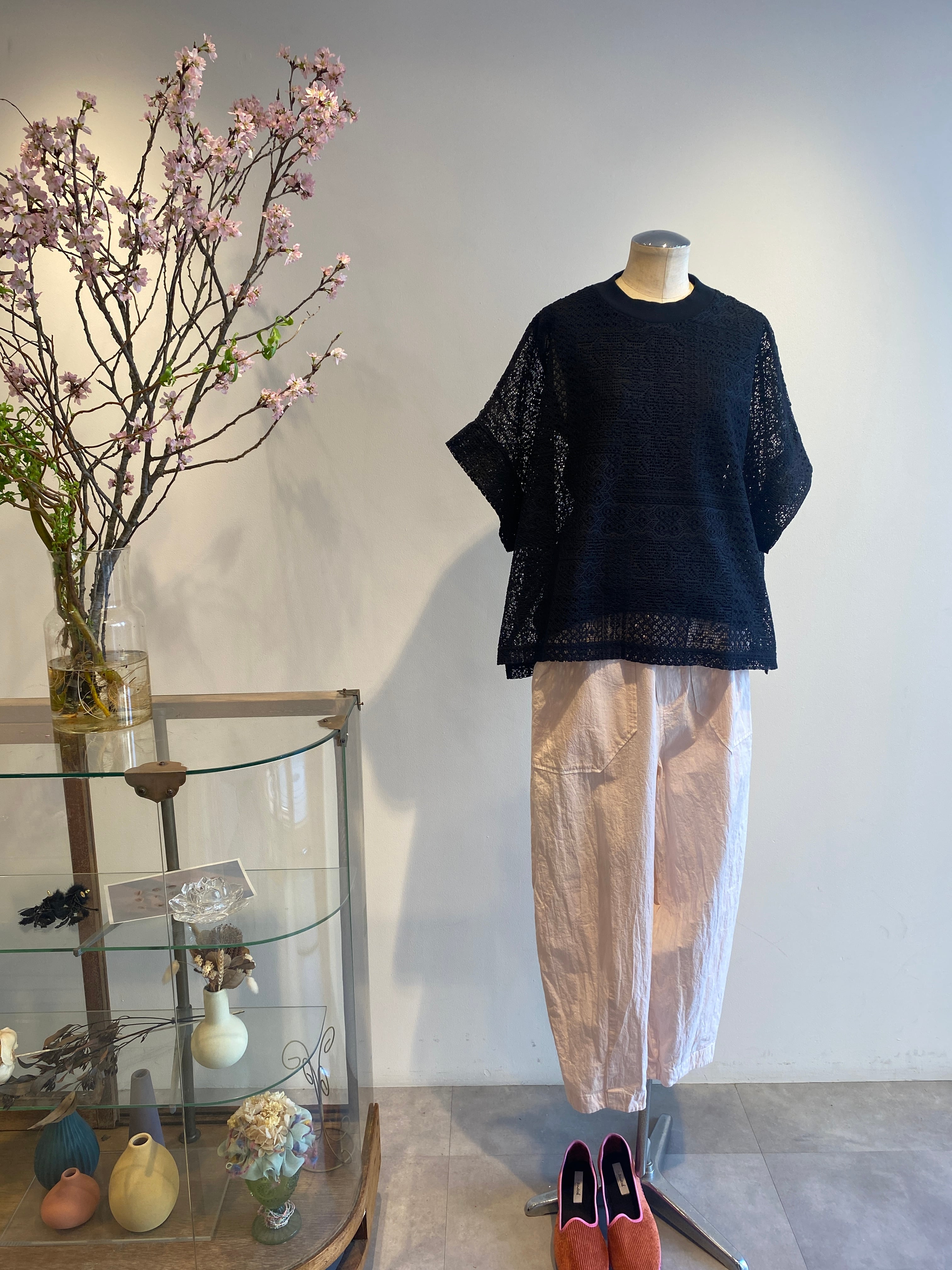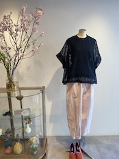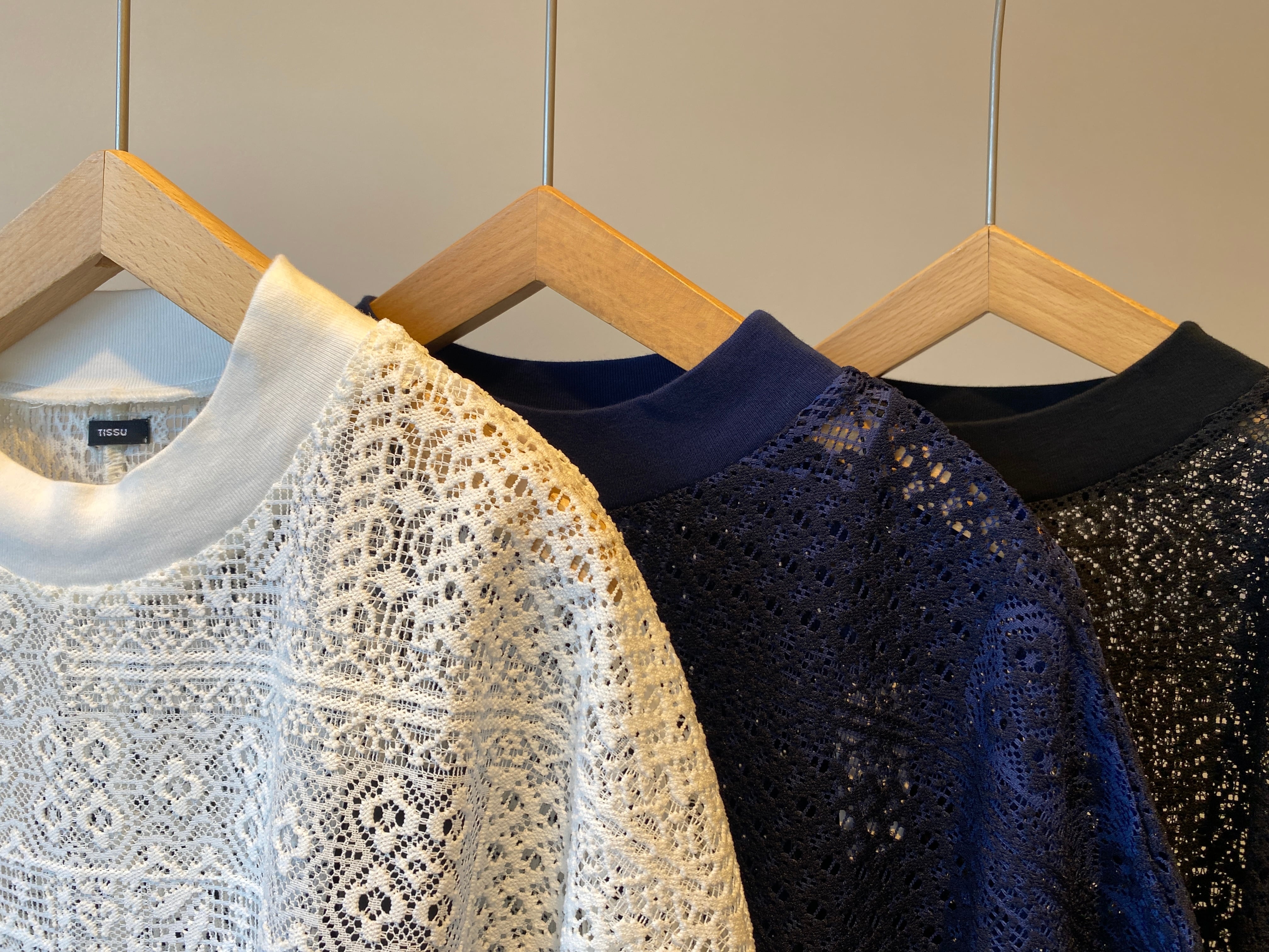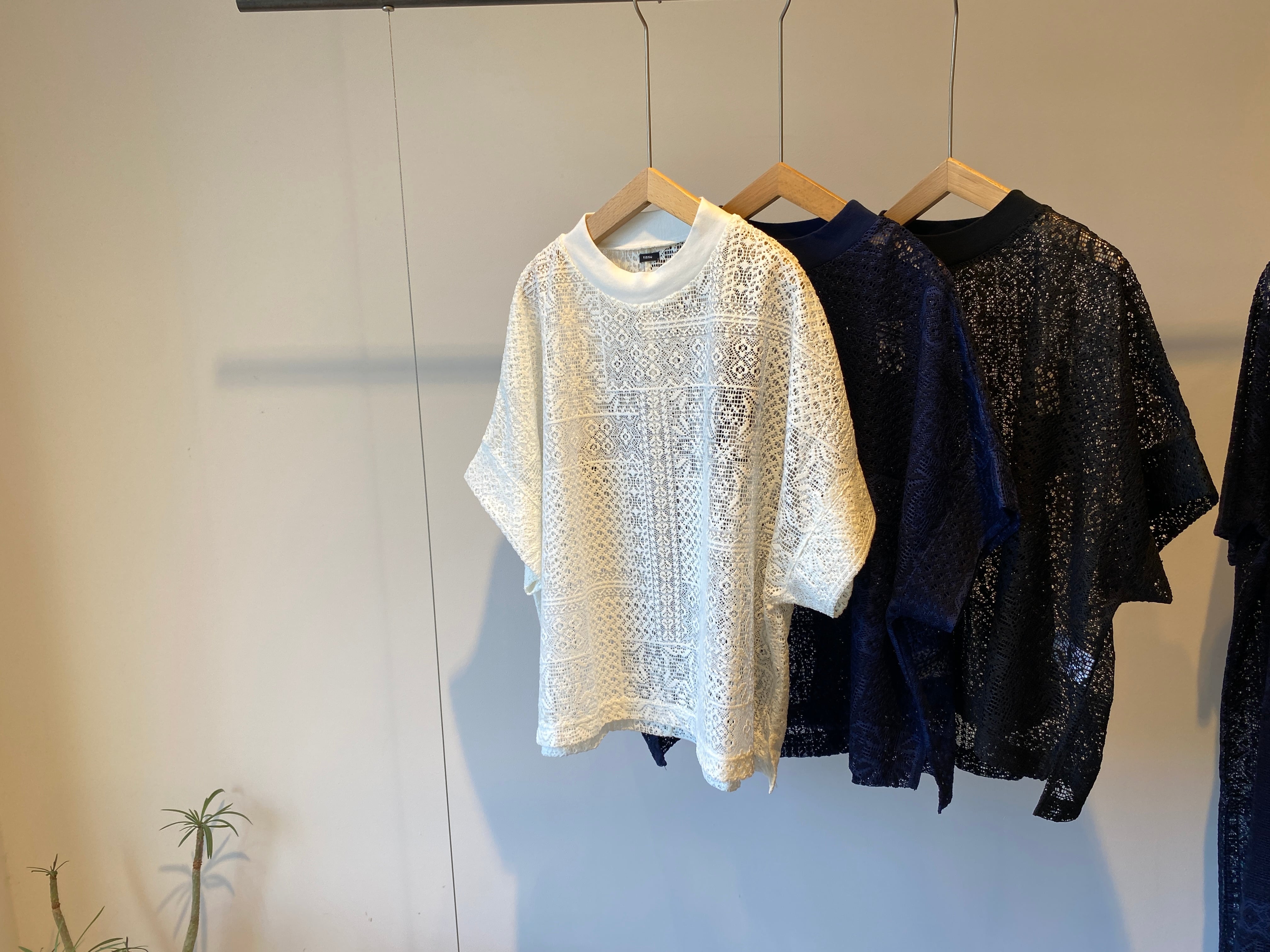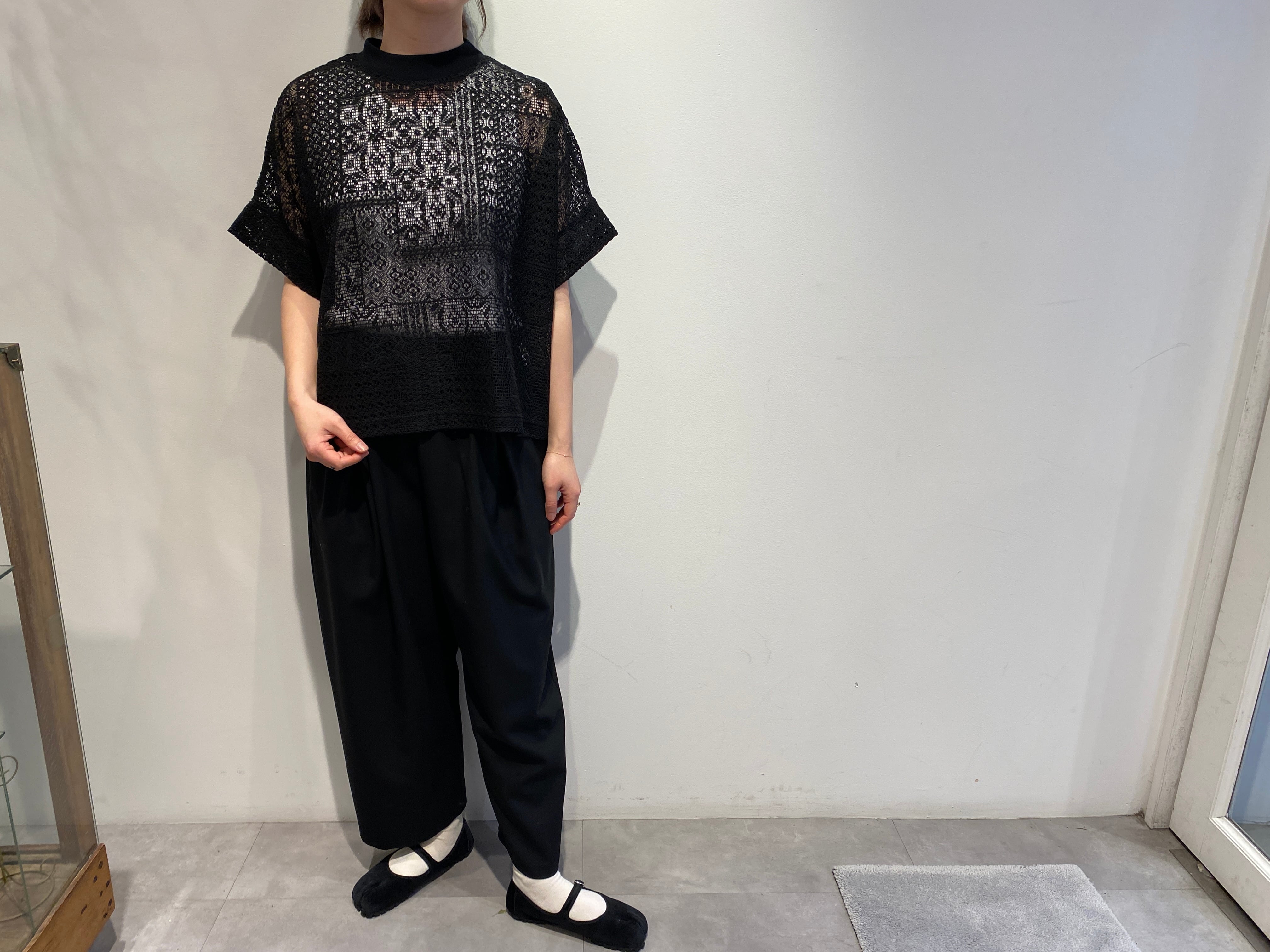 UNIVERSAL TISSU/パッチワークレース モックネックドルマンT