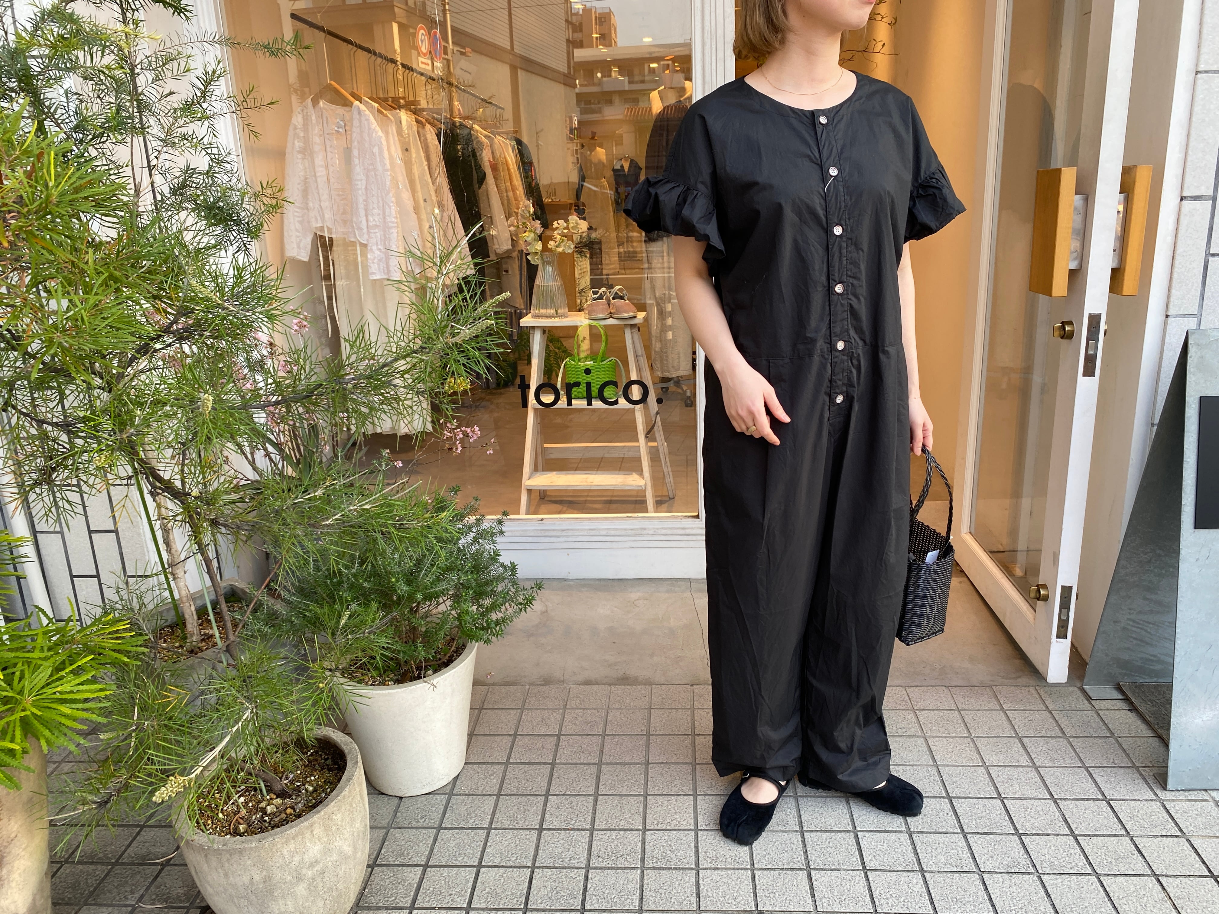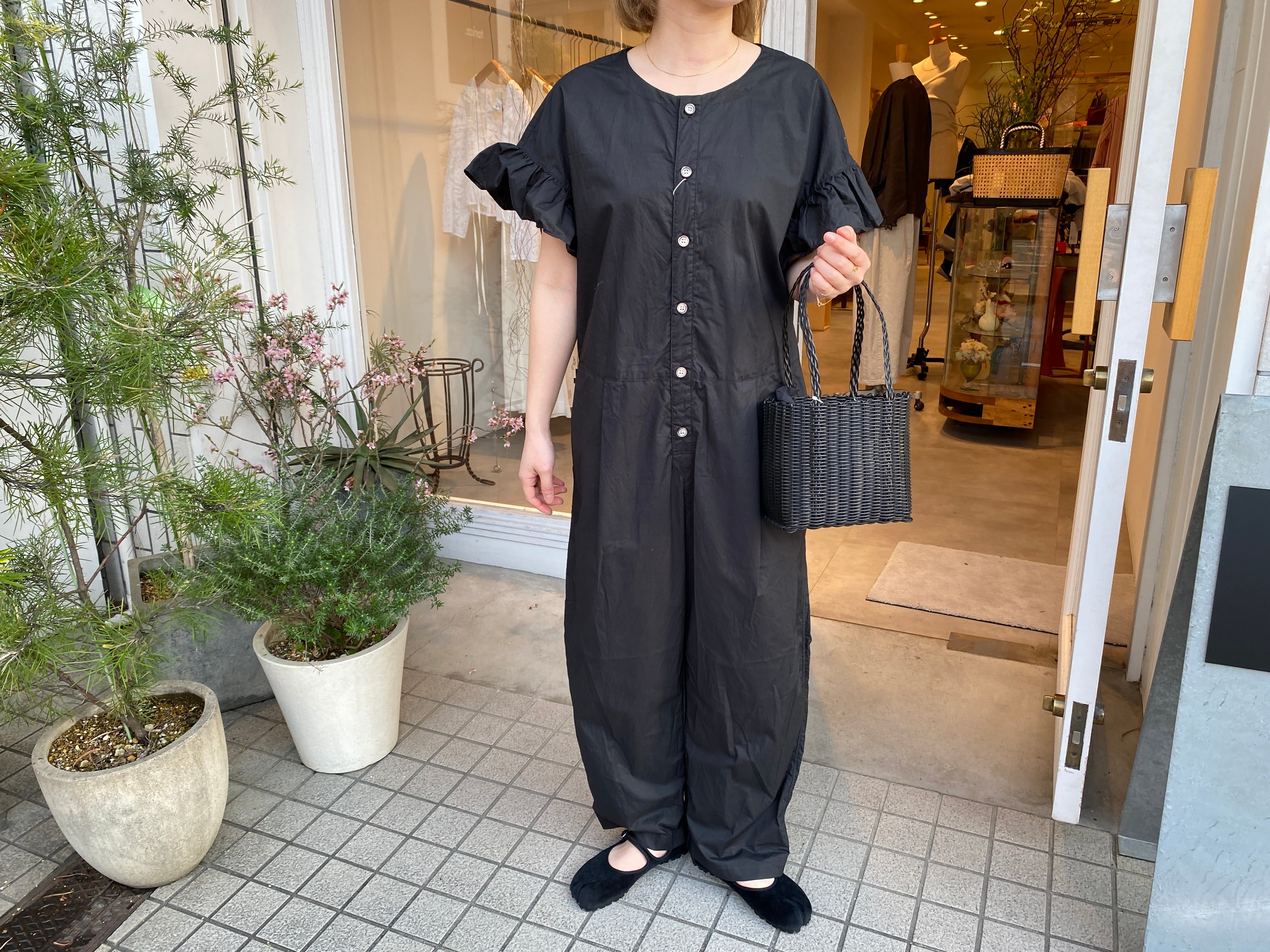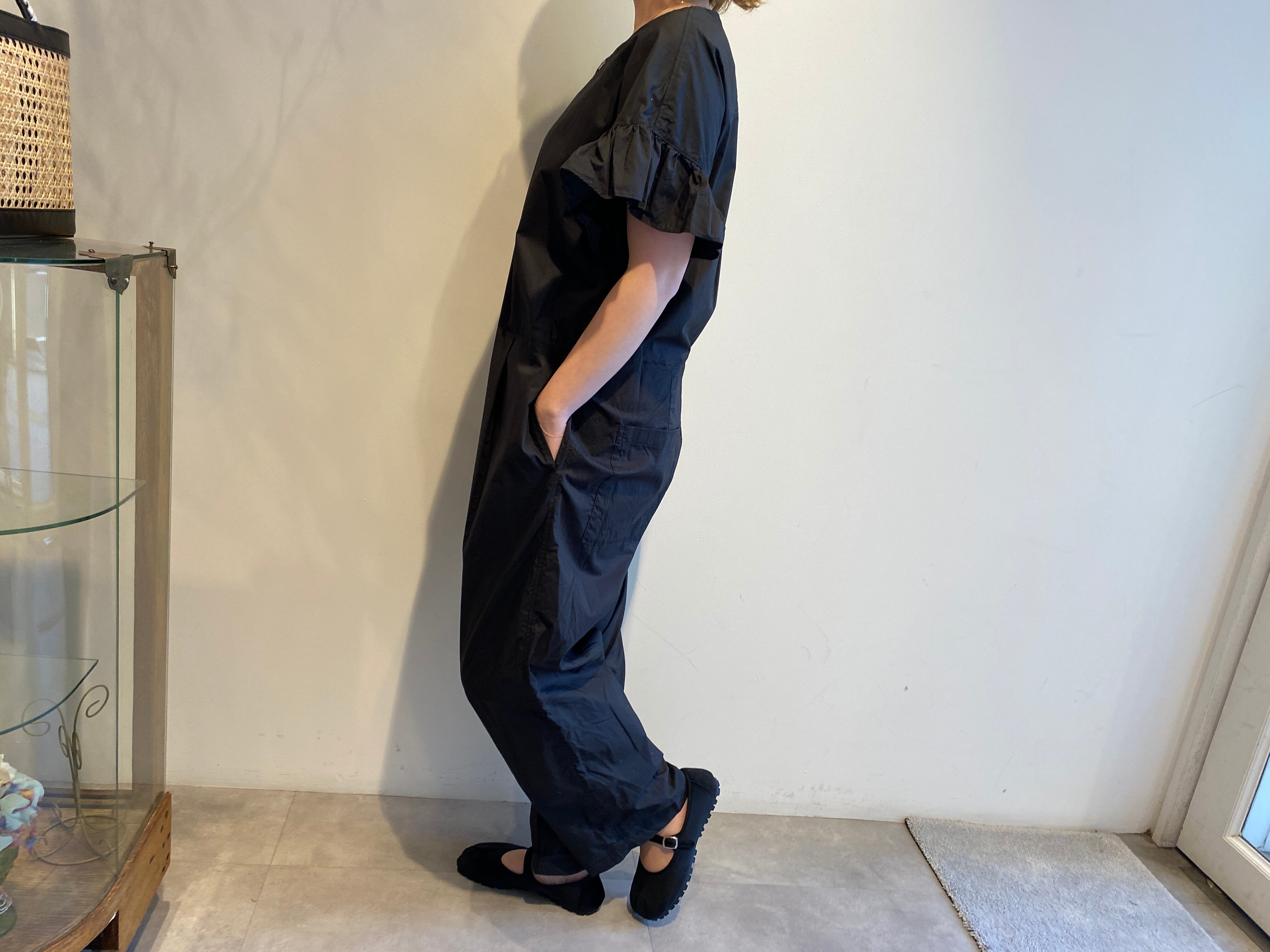 UNIVERSAL TISSU/ナチュラルタイプライターフリルスリーブサロペット