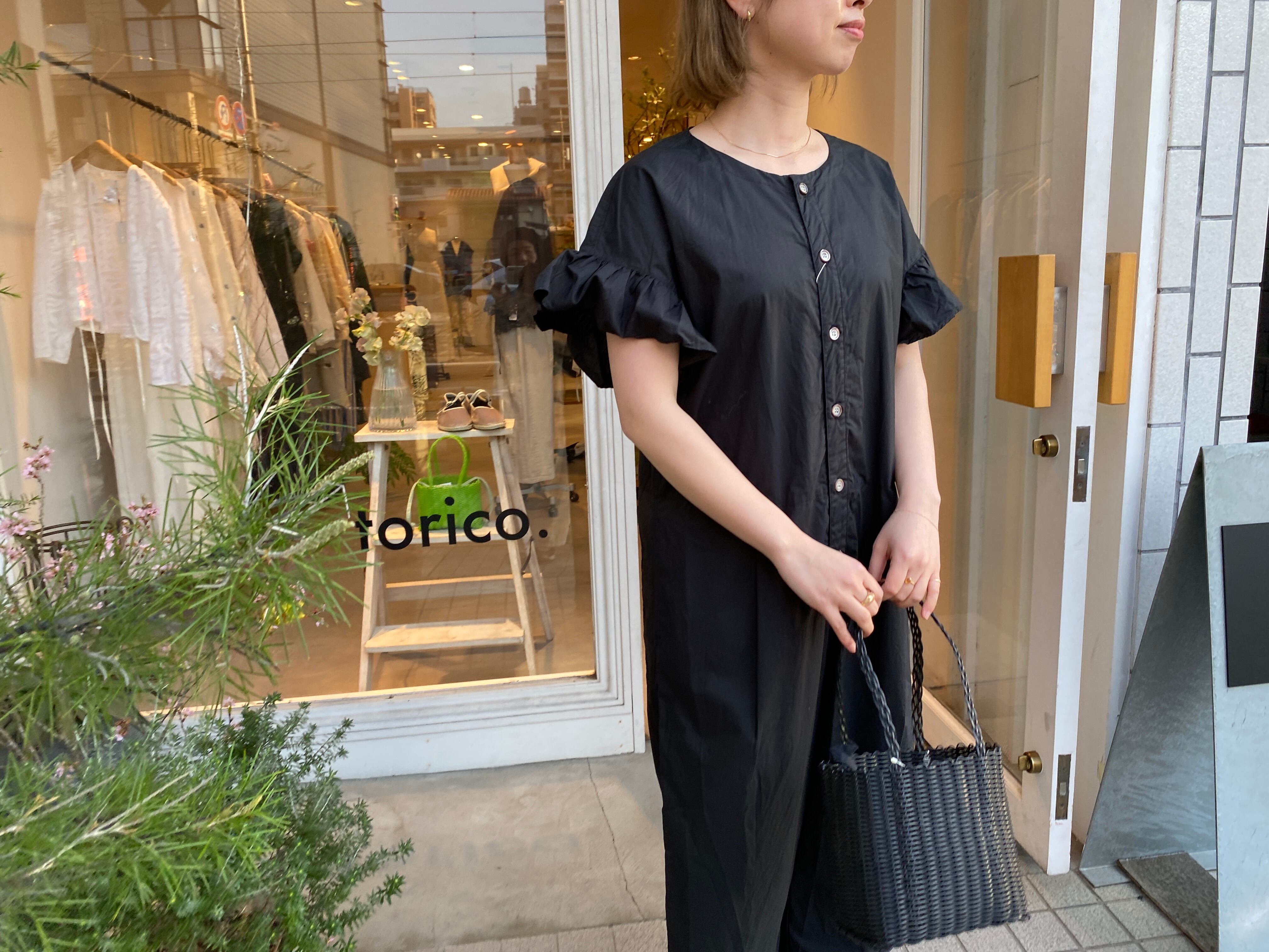定番人気素材タイプライター生地のサロペット。