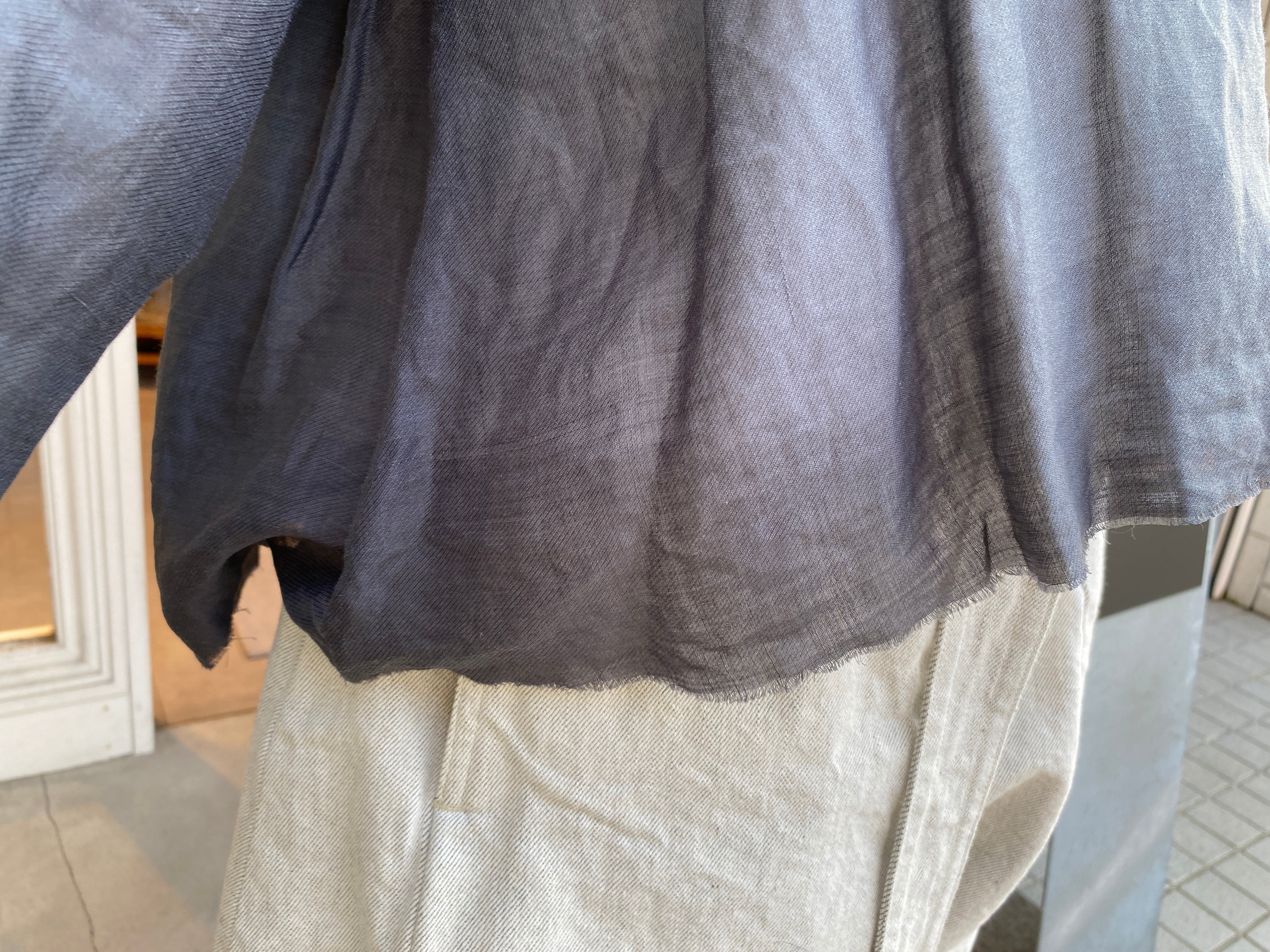 切りっぱなしの仕様の裾と袖も