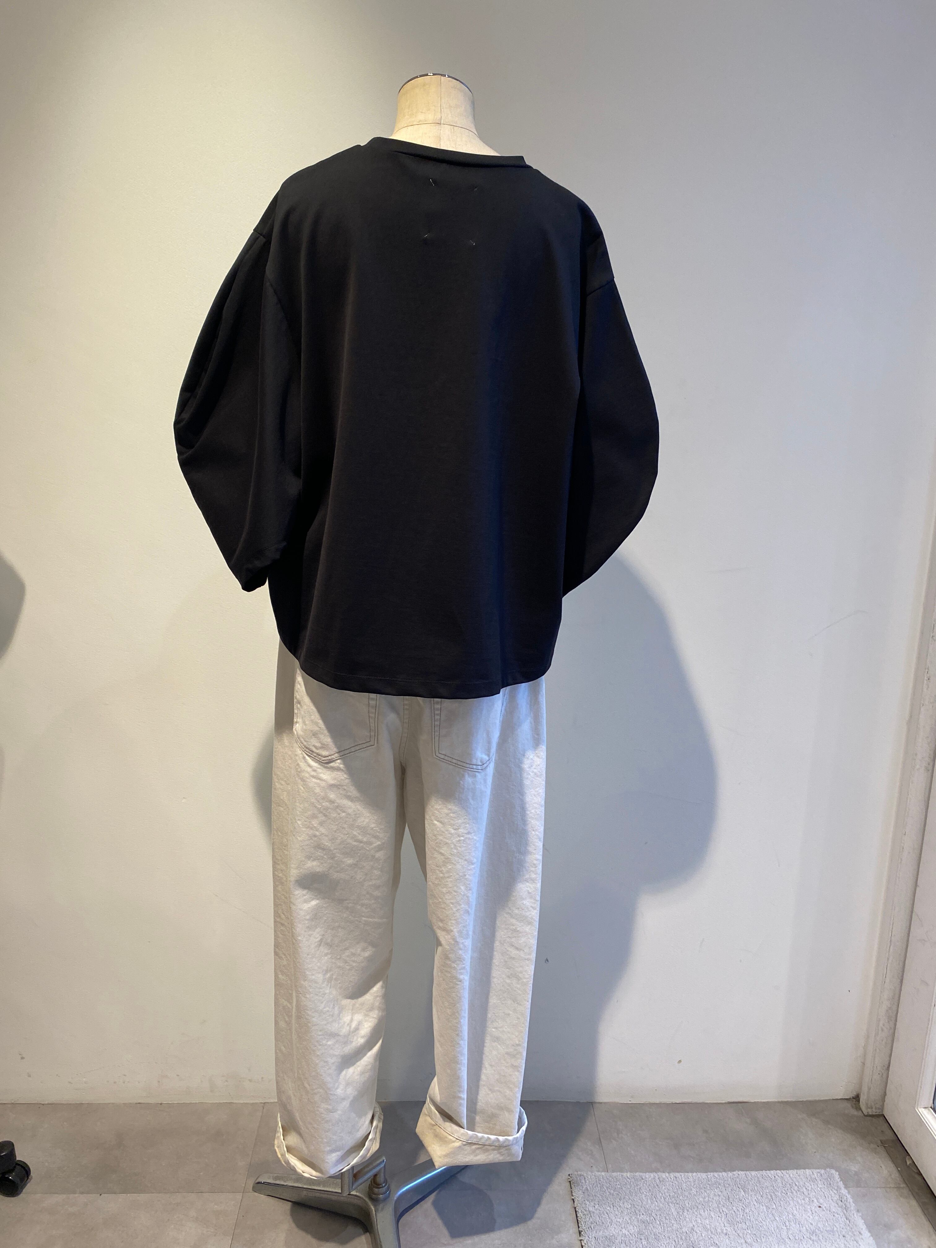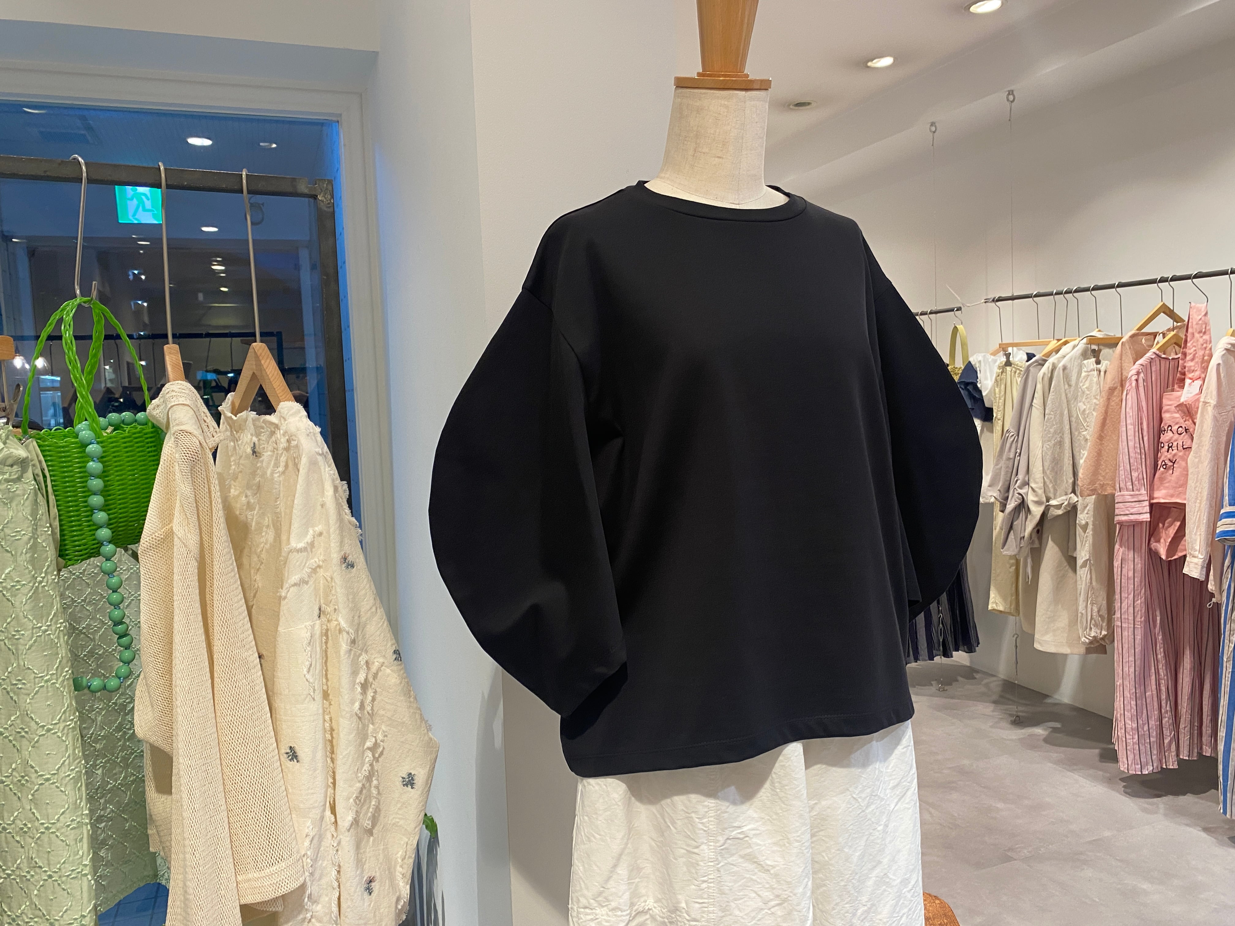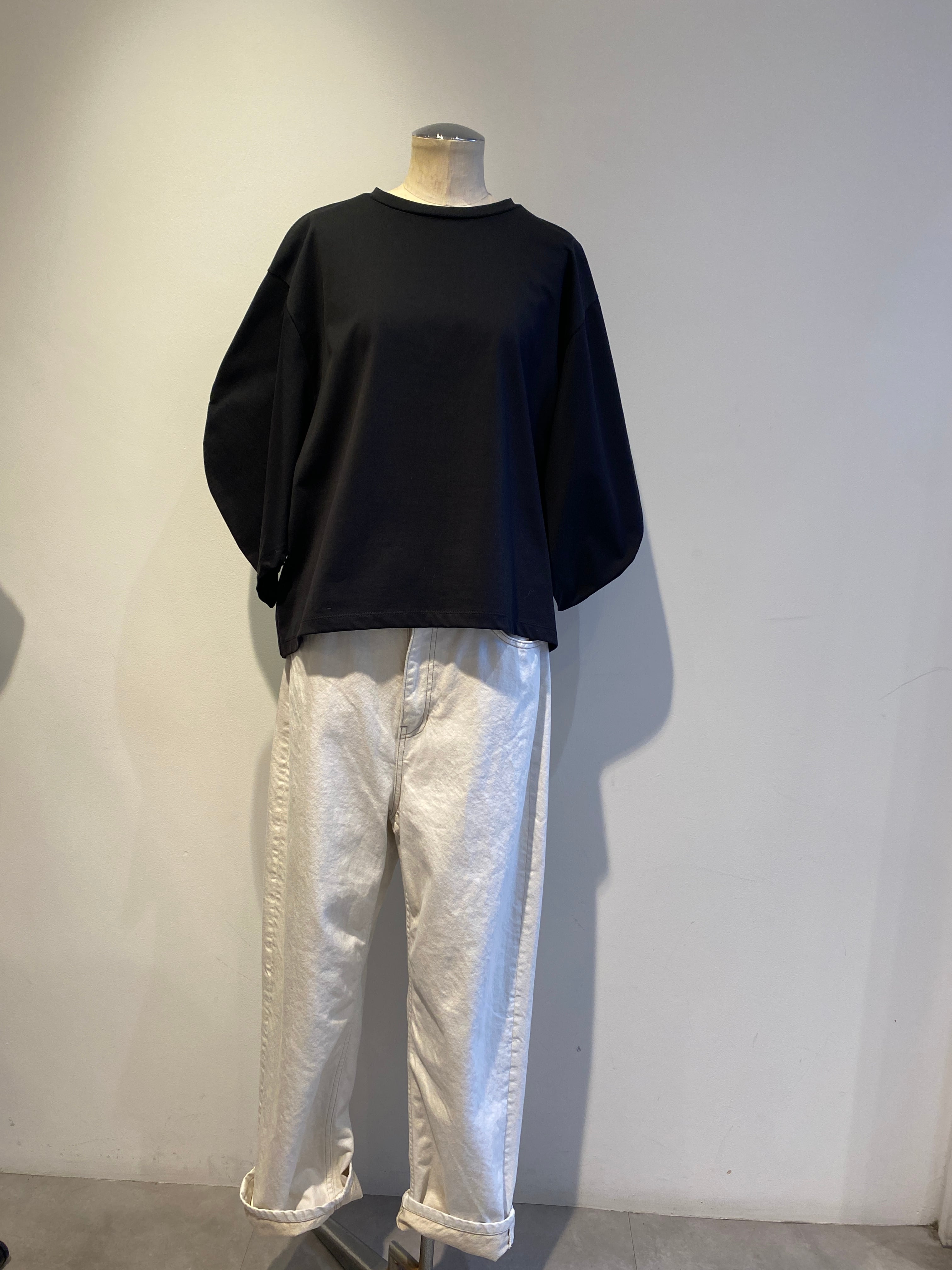 なんといっても大きな丸い袖がポイントのラウンドスリーブTシャツです。