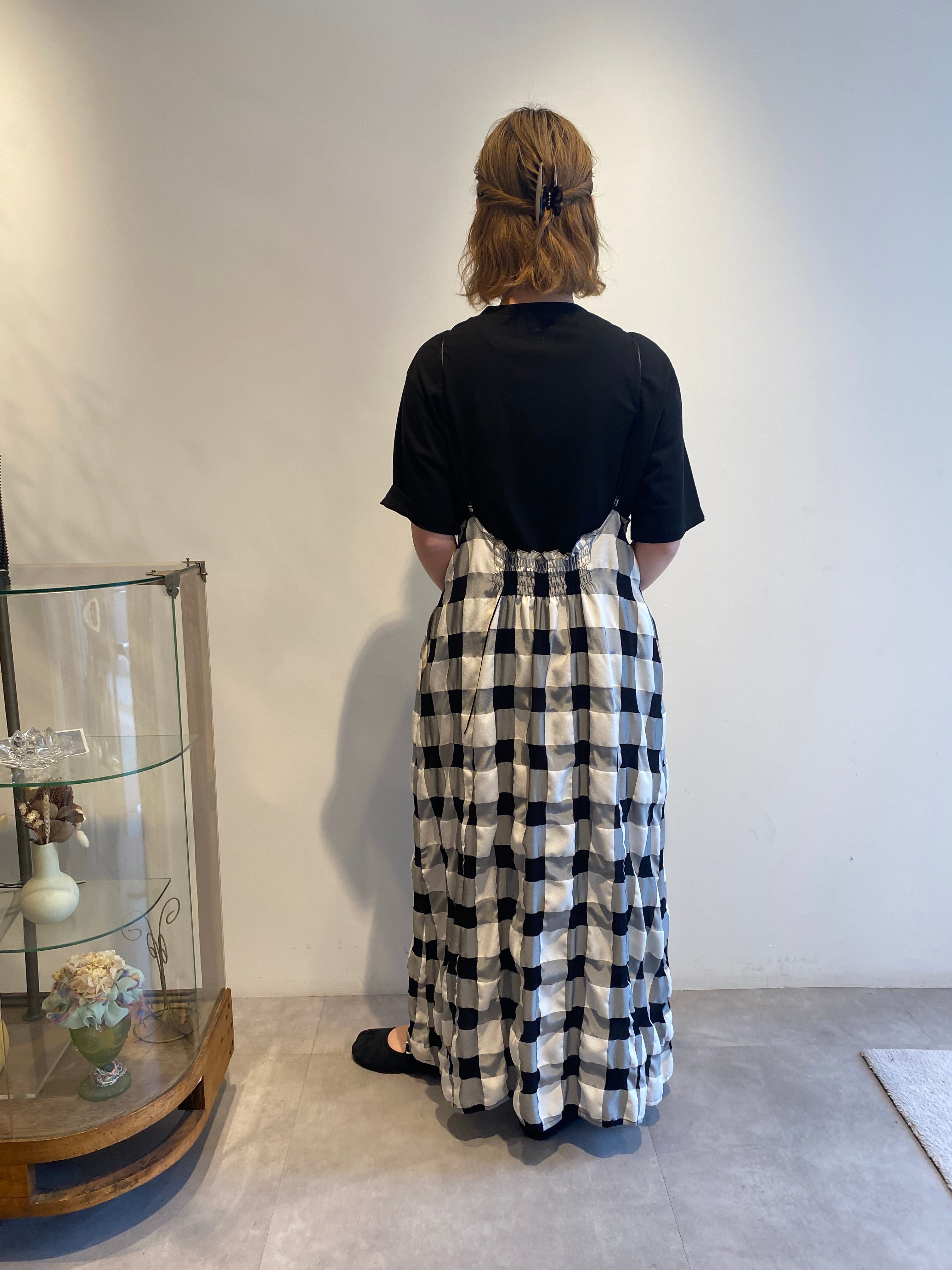 iki/キュプラポリエステル Bigギンガム ギャザーロング ワンピース