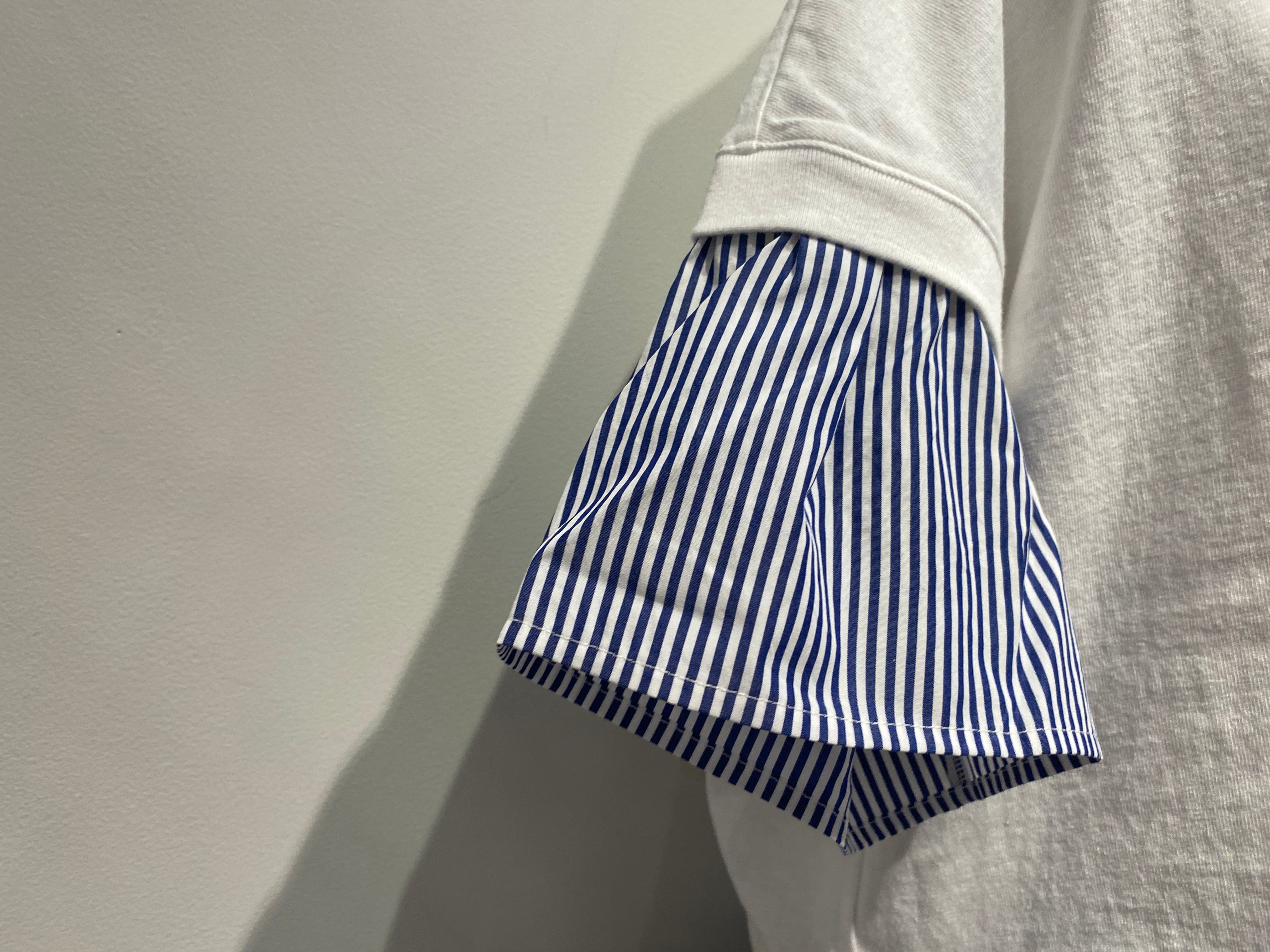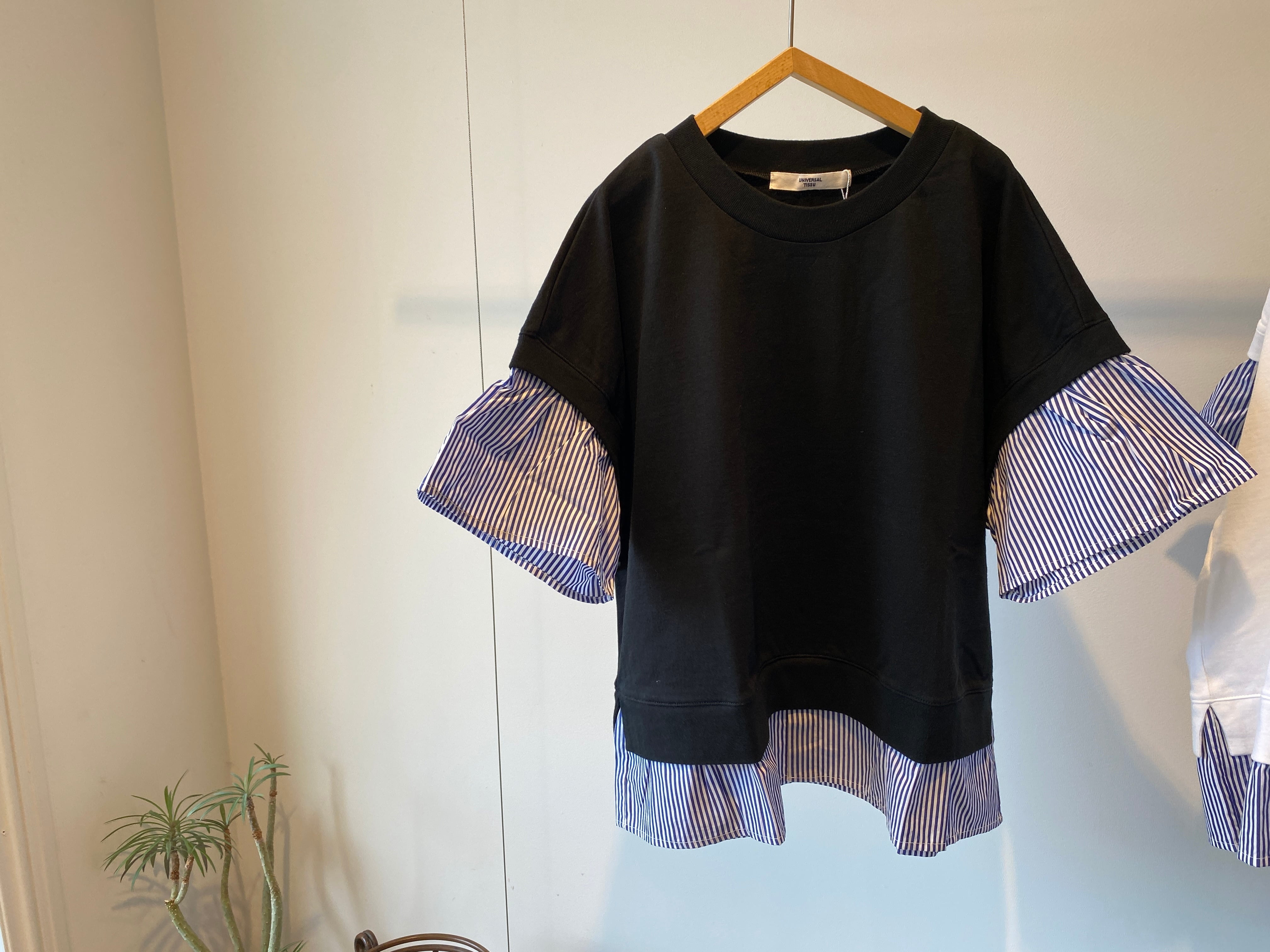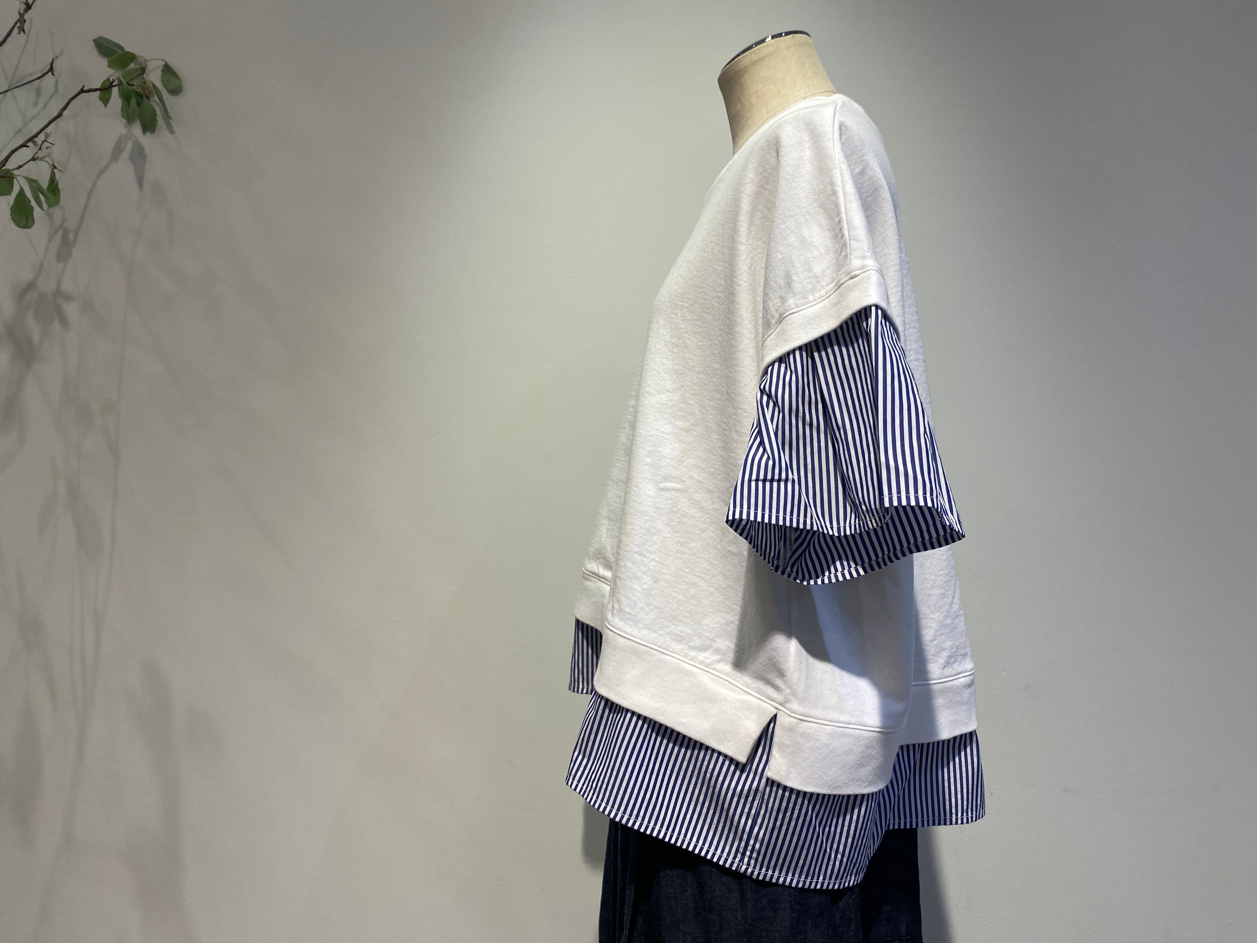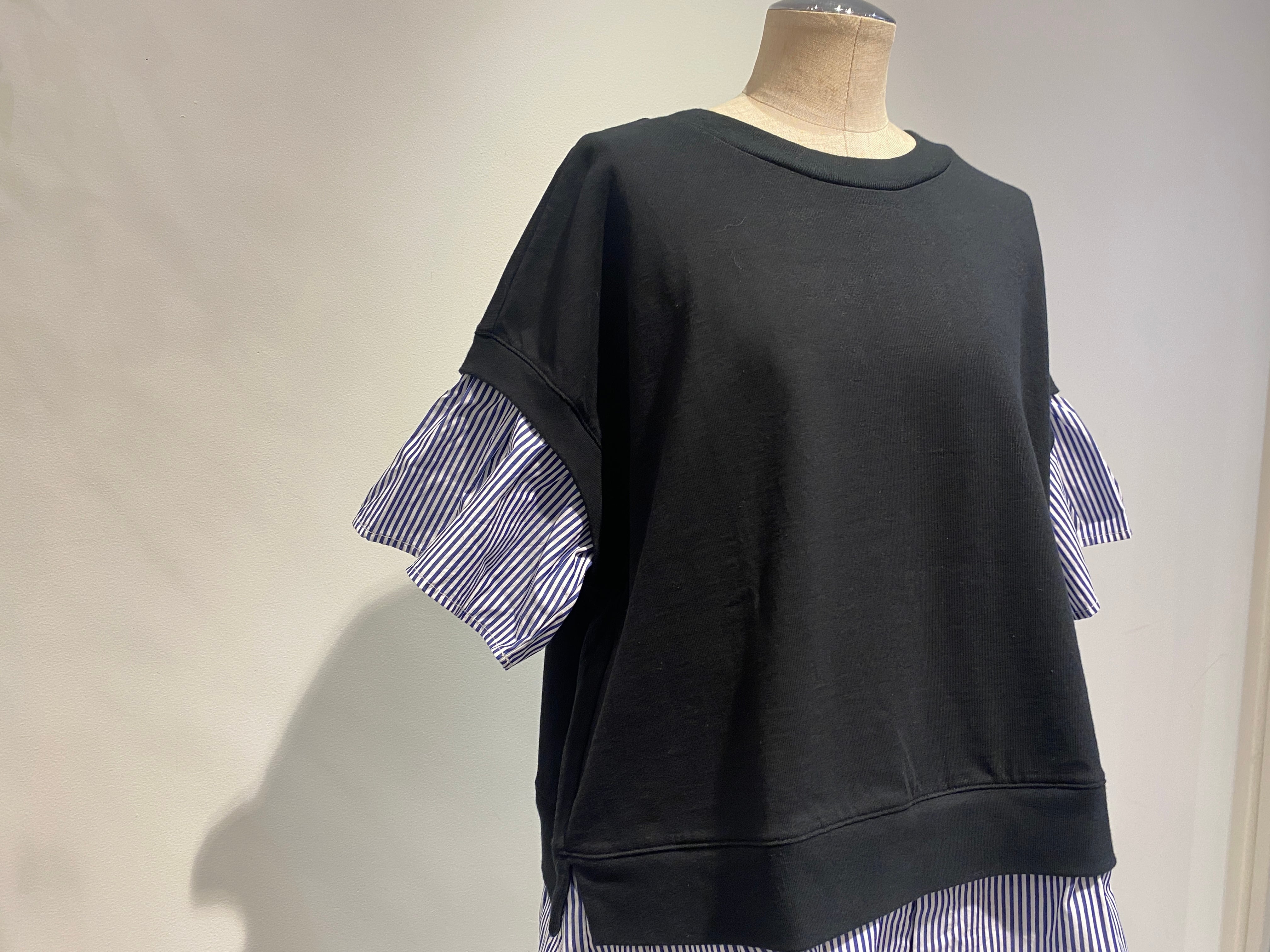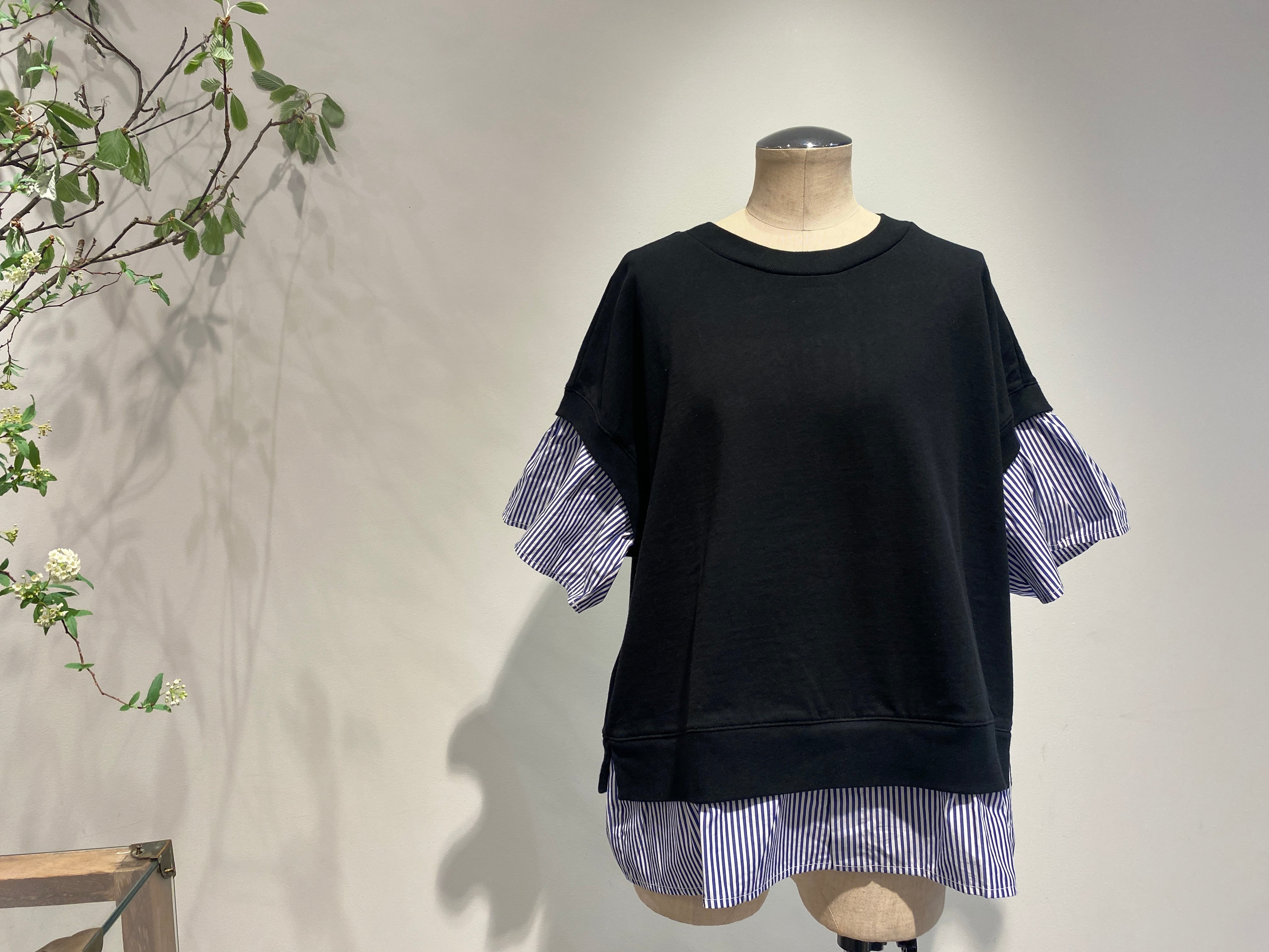 袖と裾は布帛のストライプ生地で