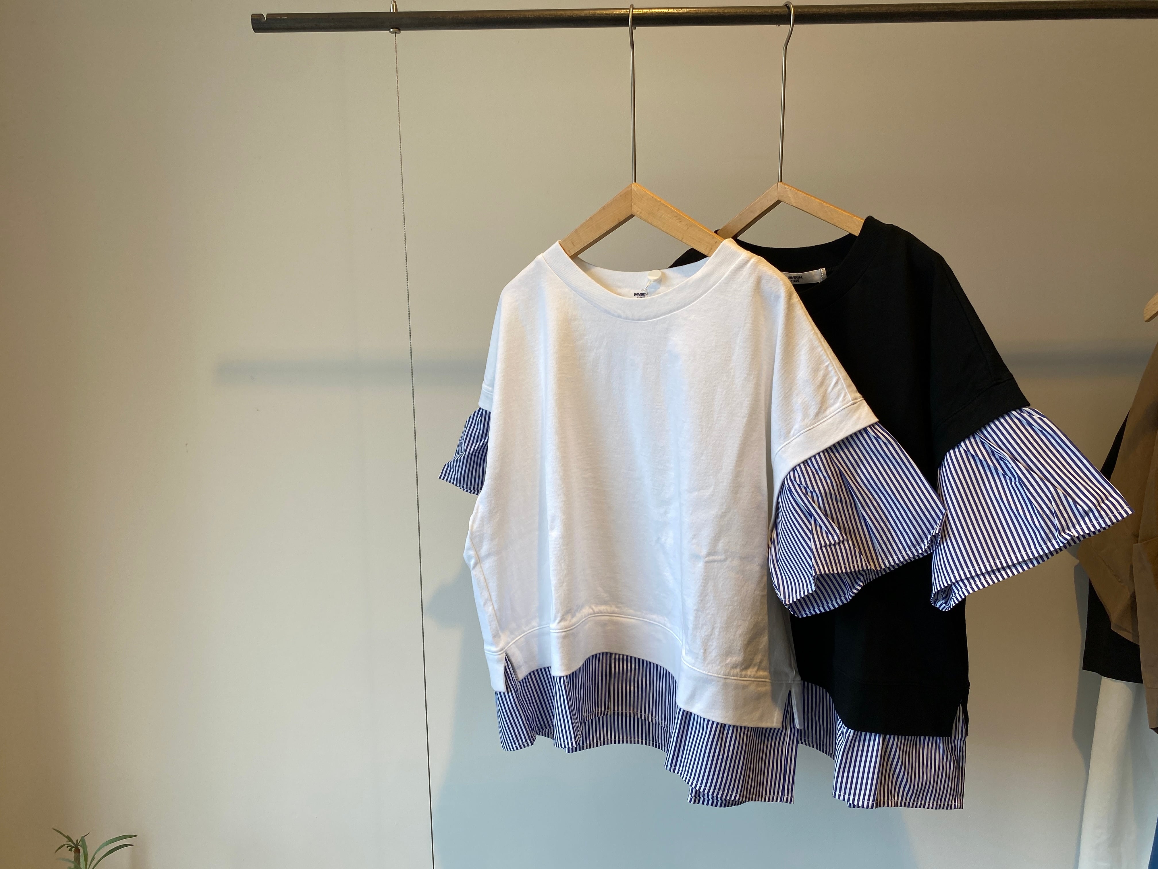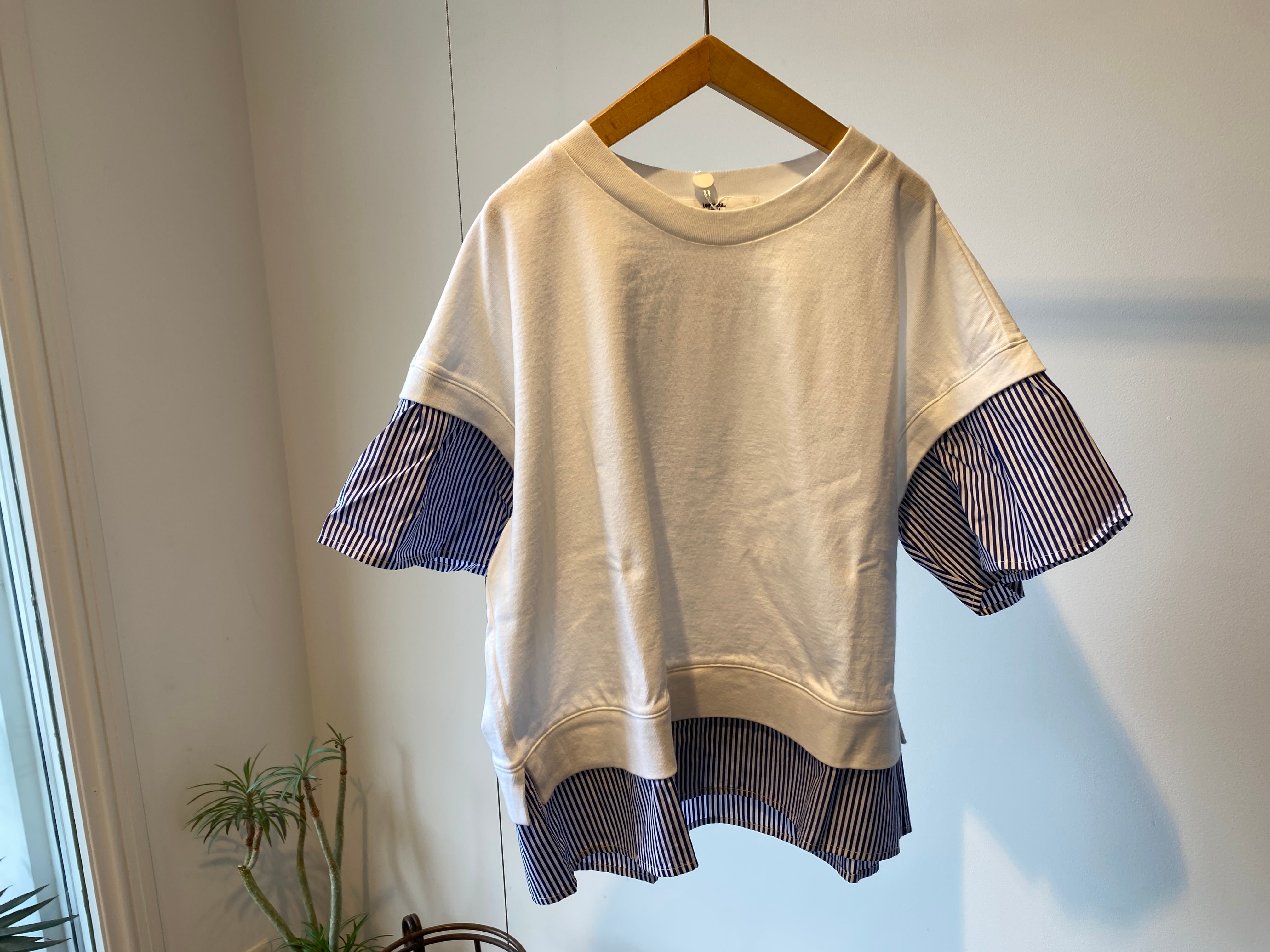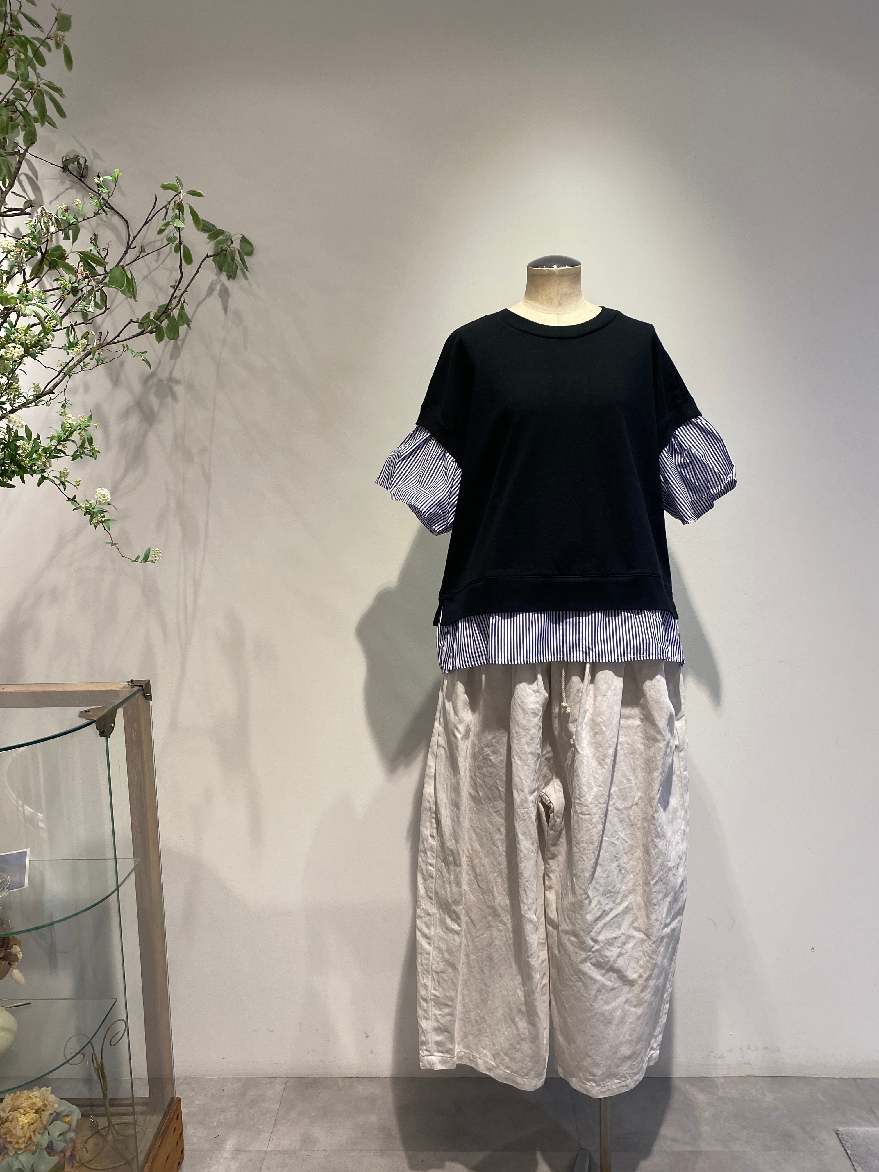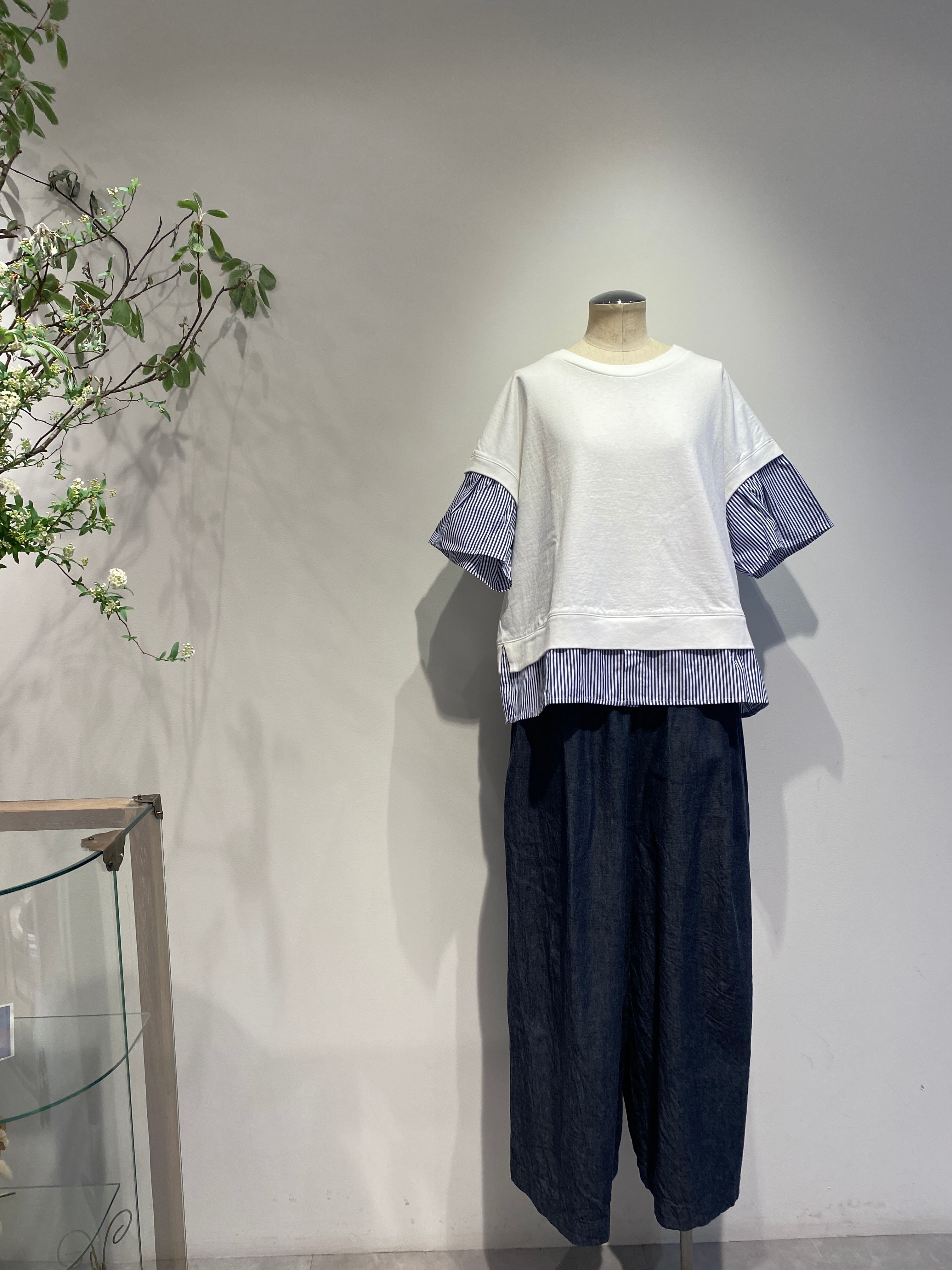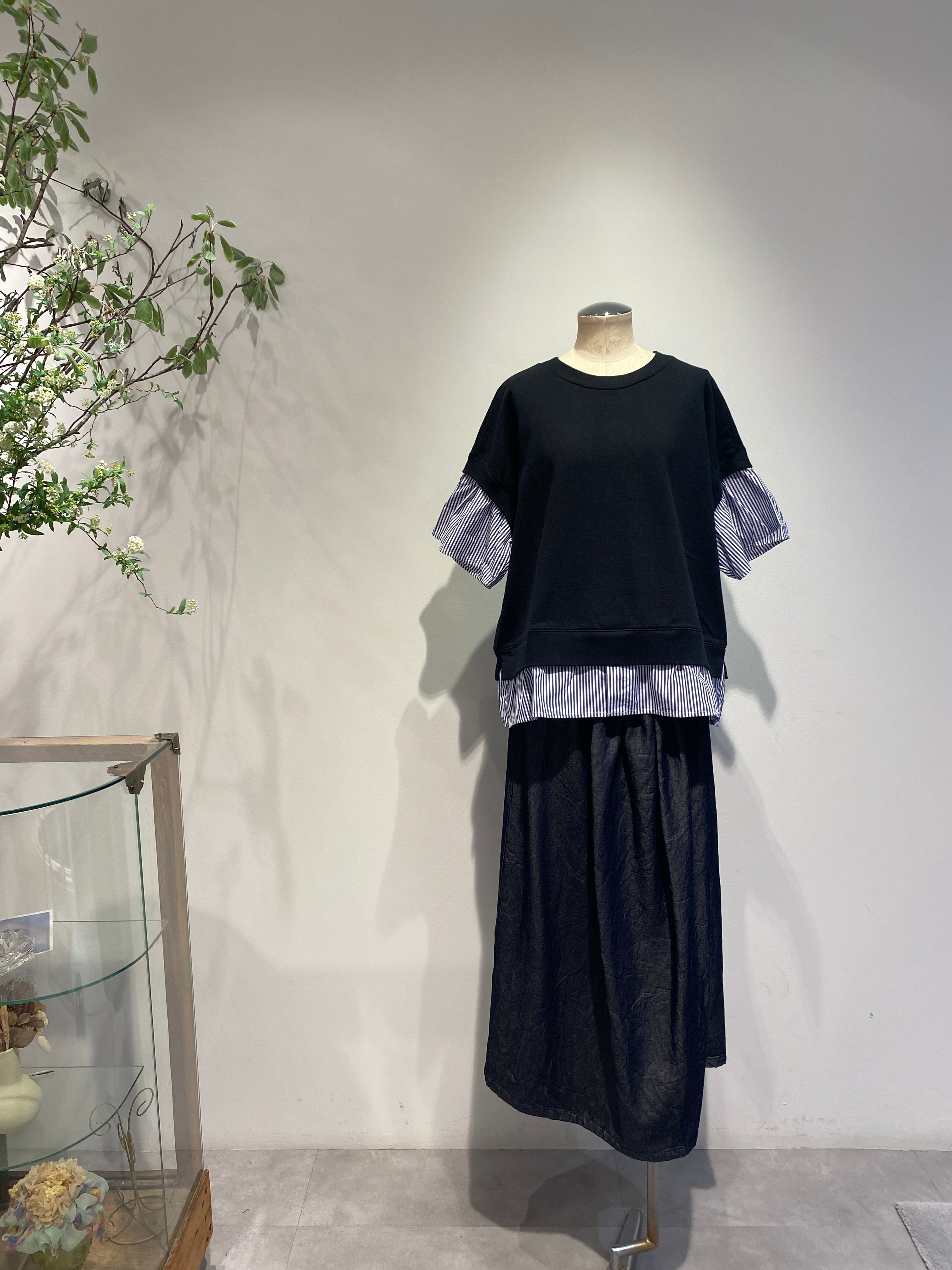 袖と裾は布帛のストライプ生地で