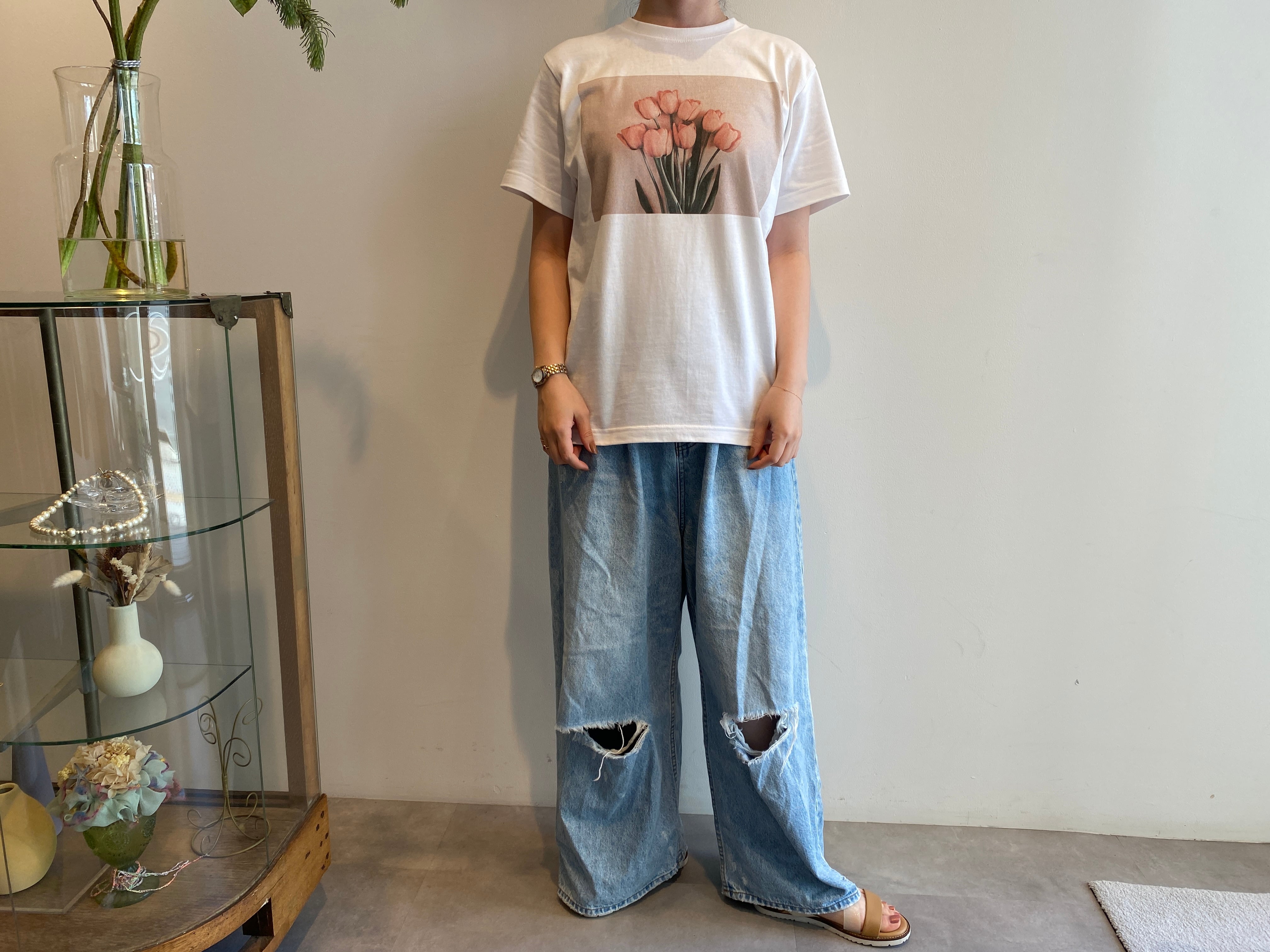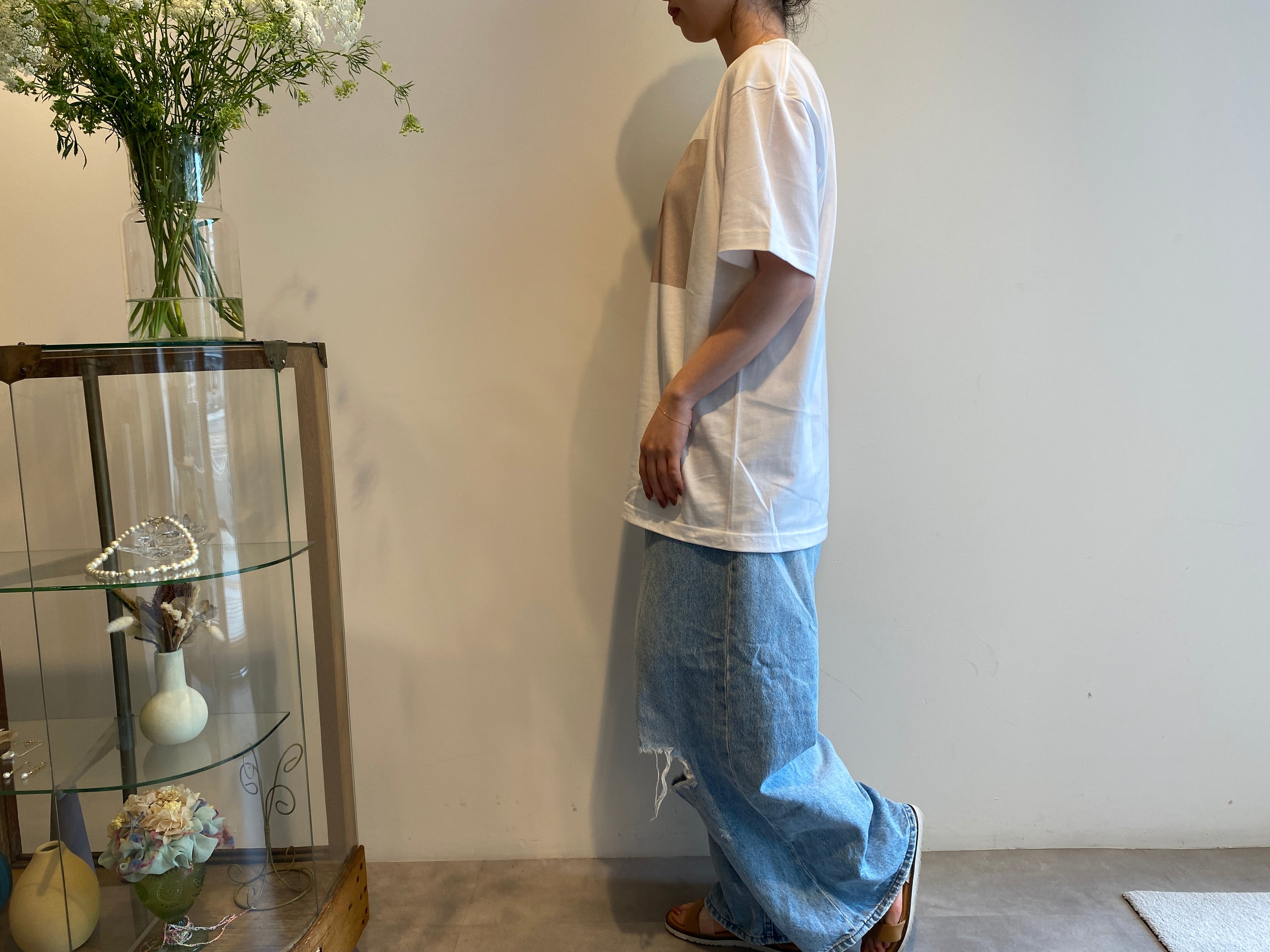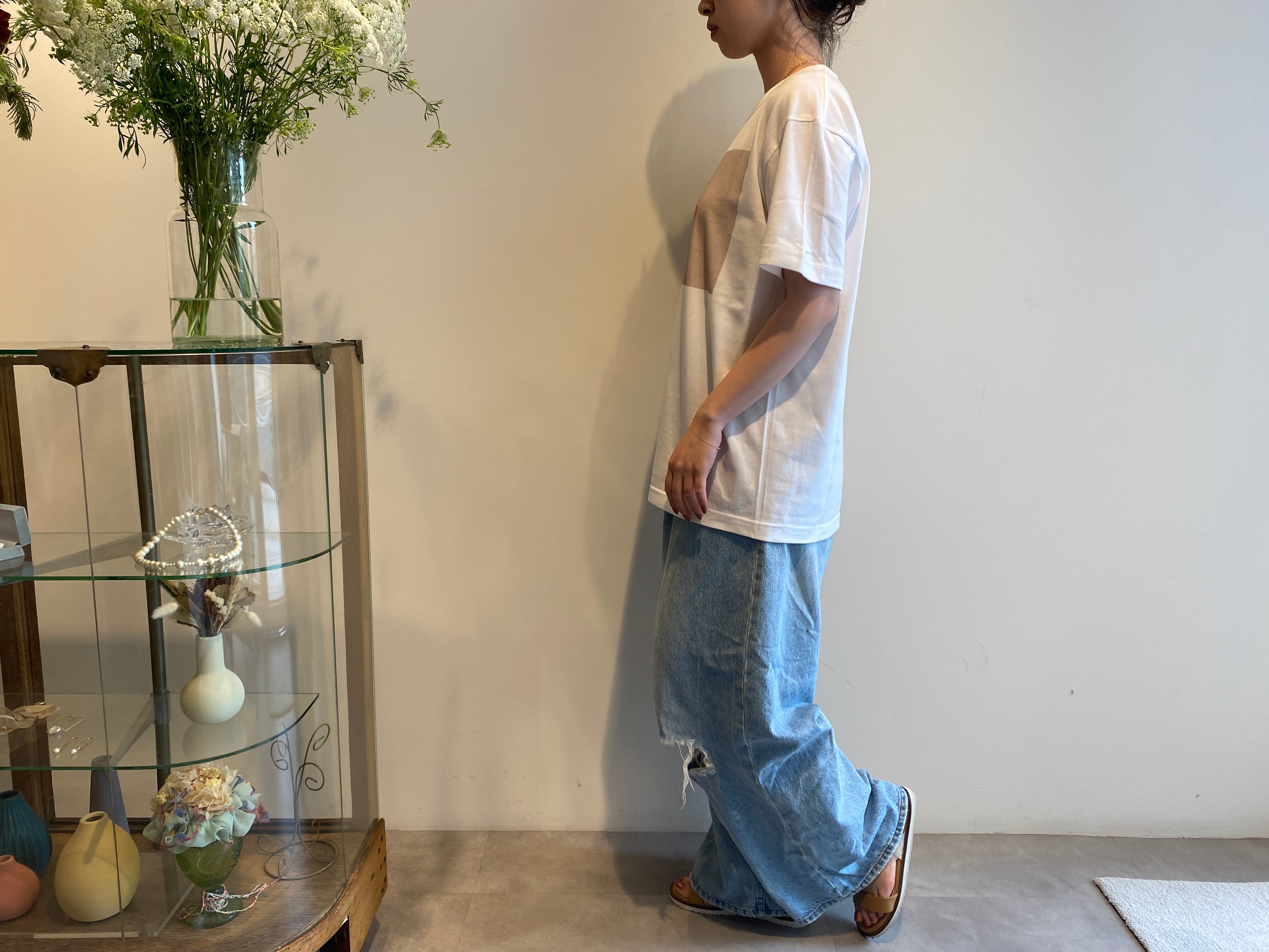 セミコーマ糸を使い、光沢感のある肌触りなめらかな生地を使用。アメリカナイズされた身幅広めのボックスシルエット。