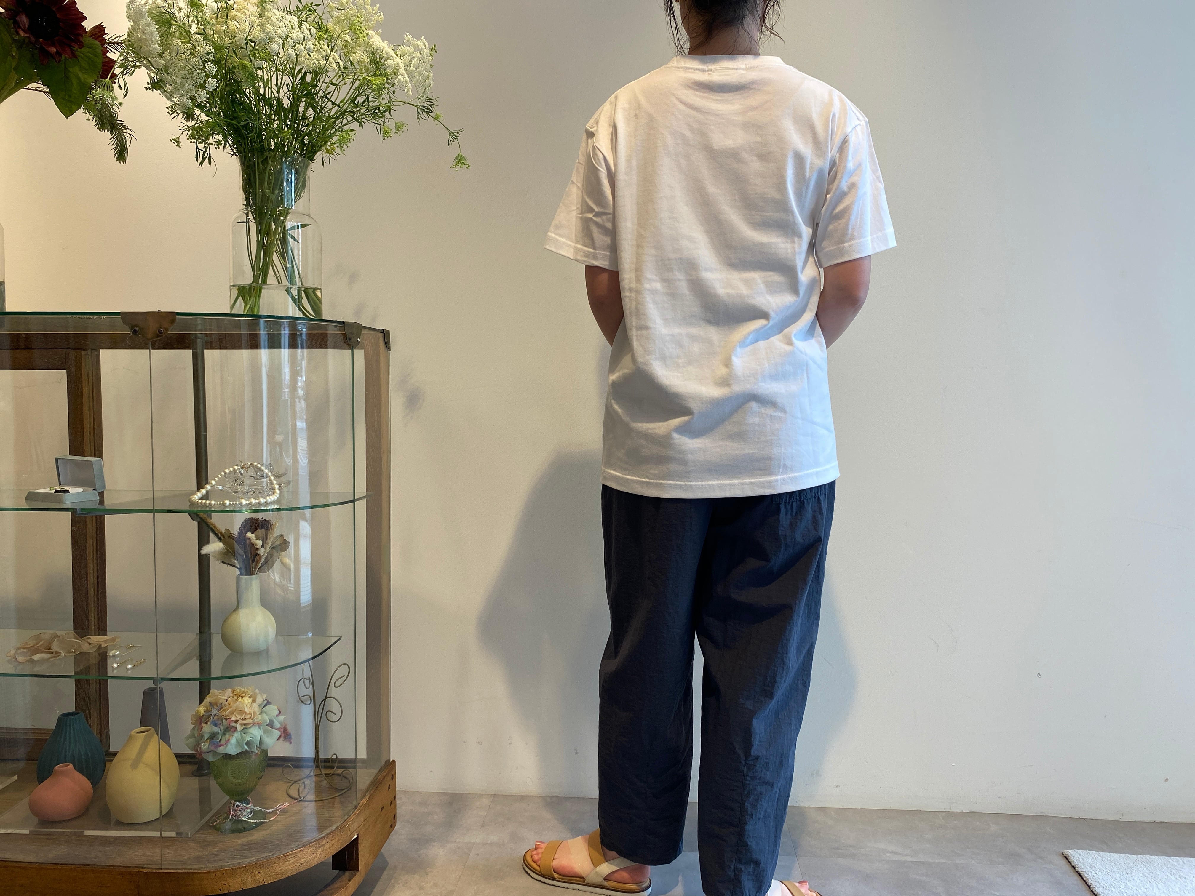 セミコーマ糸を使い、光沢感のある肌触りなめらかな生地を使用。アメリカナイズされた身幅広めのボックスシルエット。