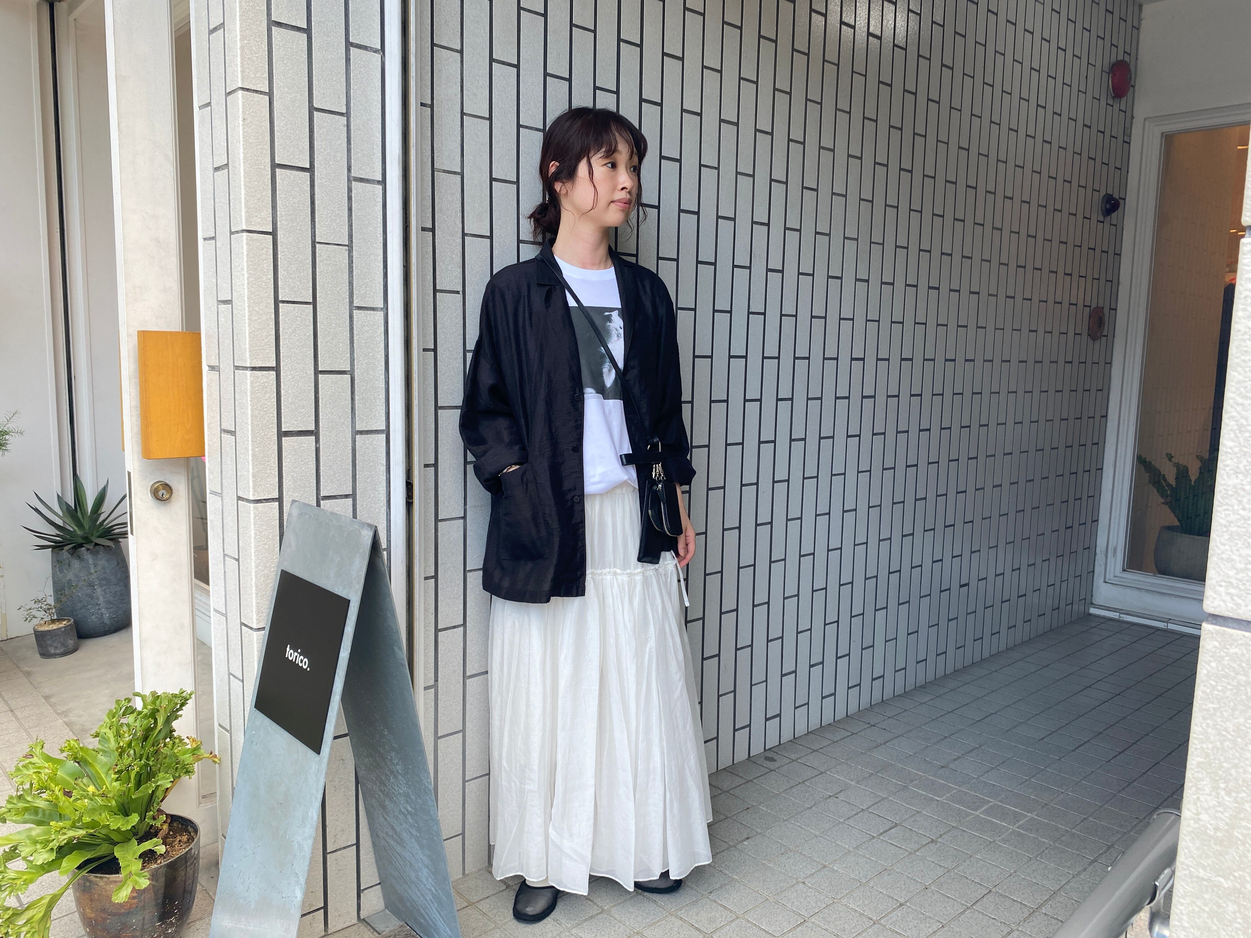 セミコーマ糸を使い、光沢感のある肌触りなめらかな生地を使用。アメリカナイズされた身幅広めのボックスシルエット。