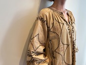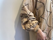 インドの職人が手がけたアリ刺繍はチェーンステッチのようにつながり、糸の光沢を存分に活かします。